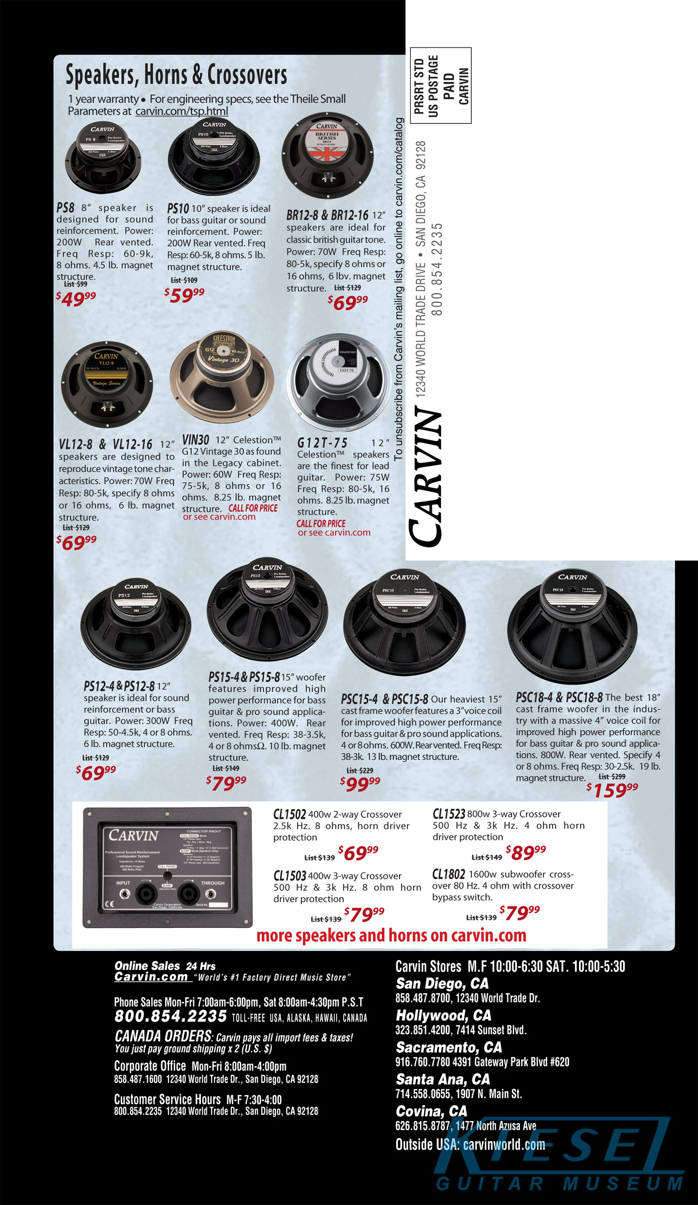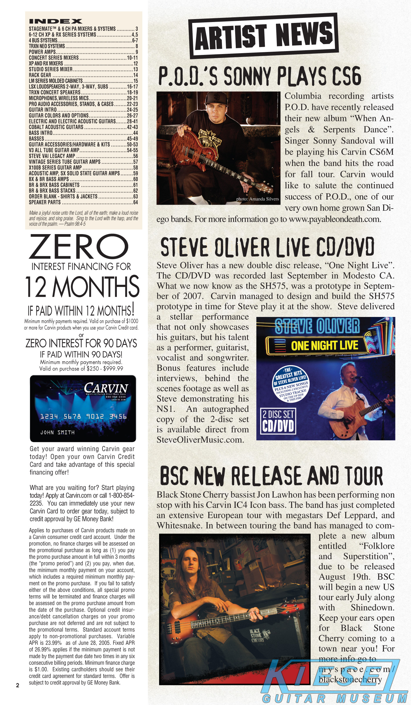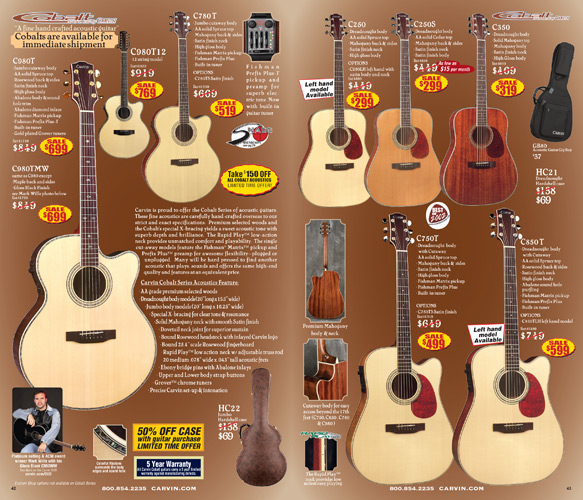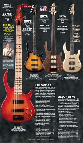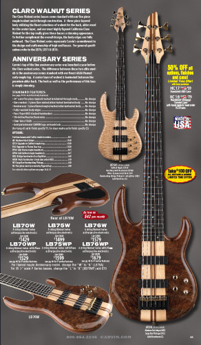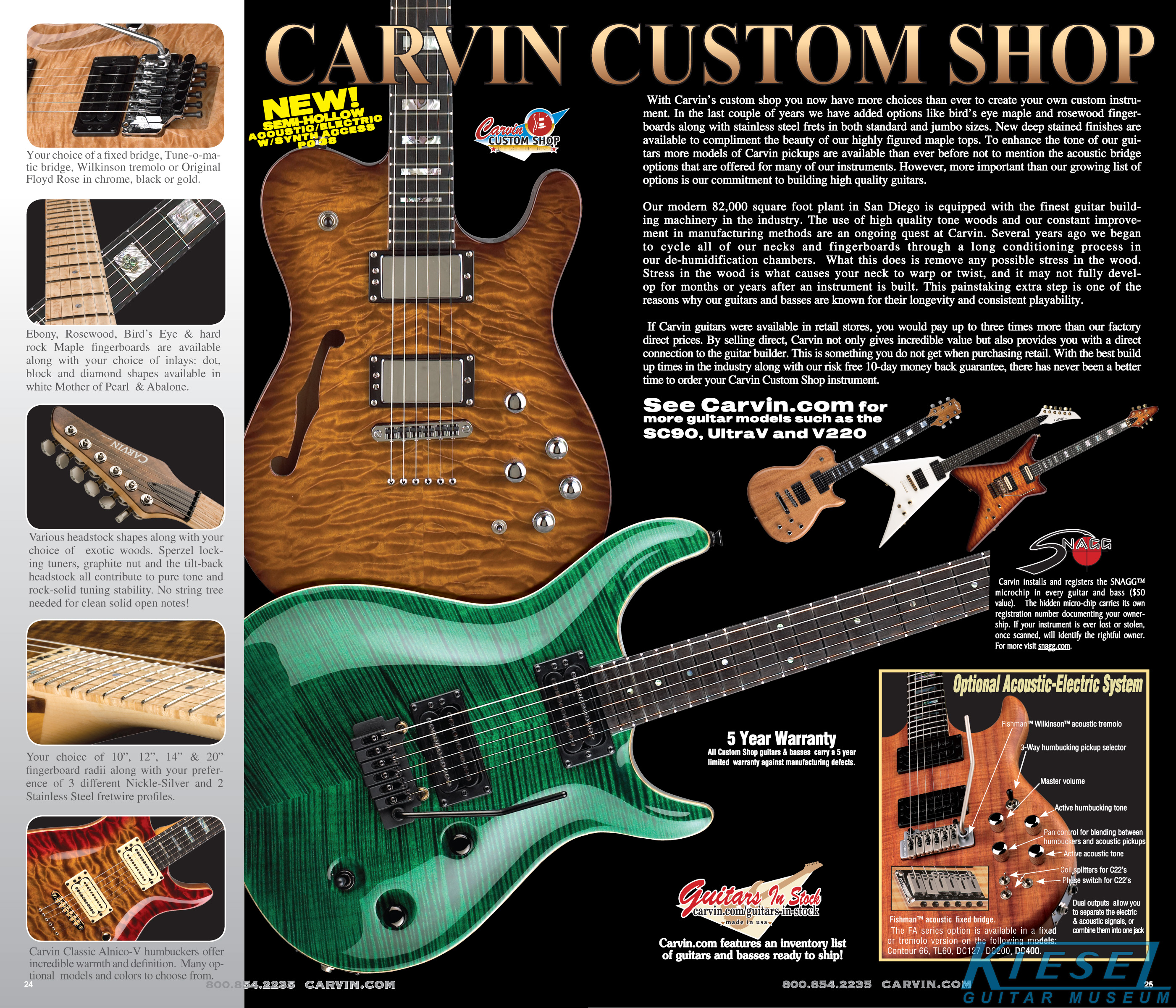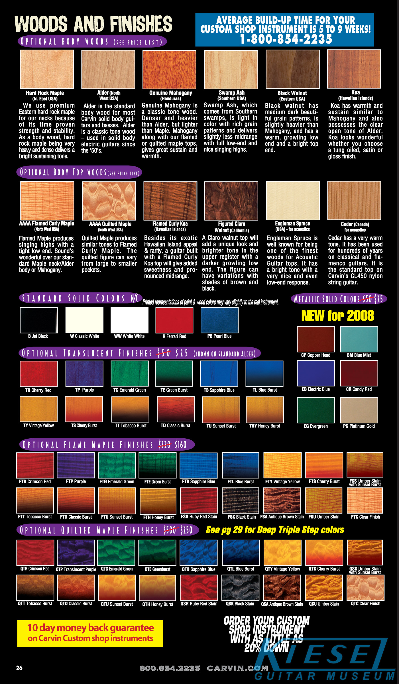 The SC90 and TL60 continued to be somewhat popular, but were being eclipsed by all of Carvin's new offerings. Despite their waning populatity, these models would be around for many more years. There were no significant changes to either model for the 2008 model year. The SC90 would only apprea in two catalogs, and the TL60 would move onto the new SH60 page mid-year.