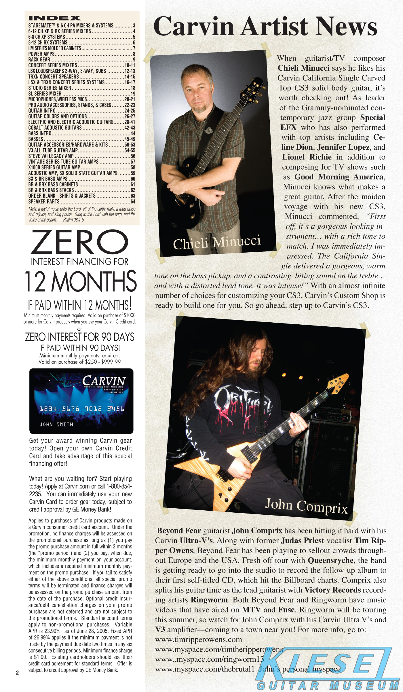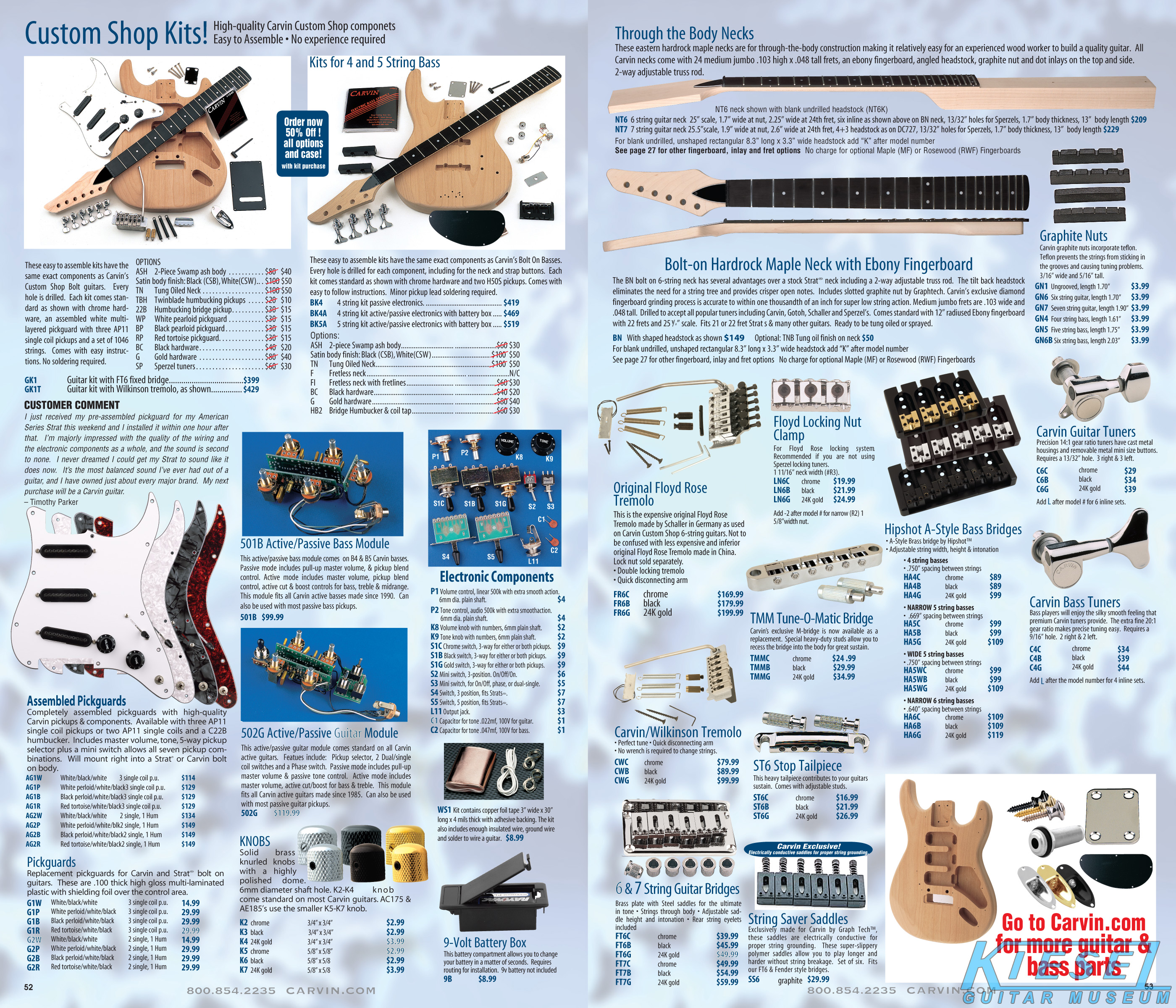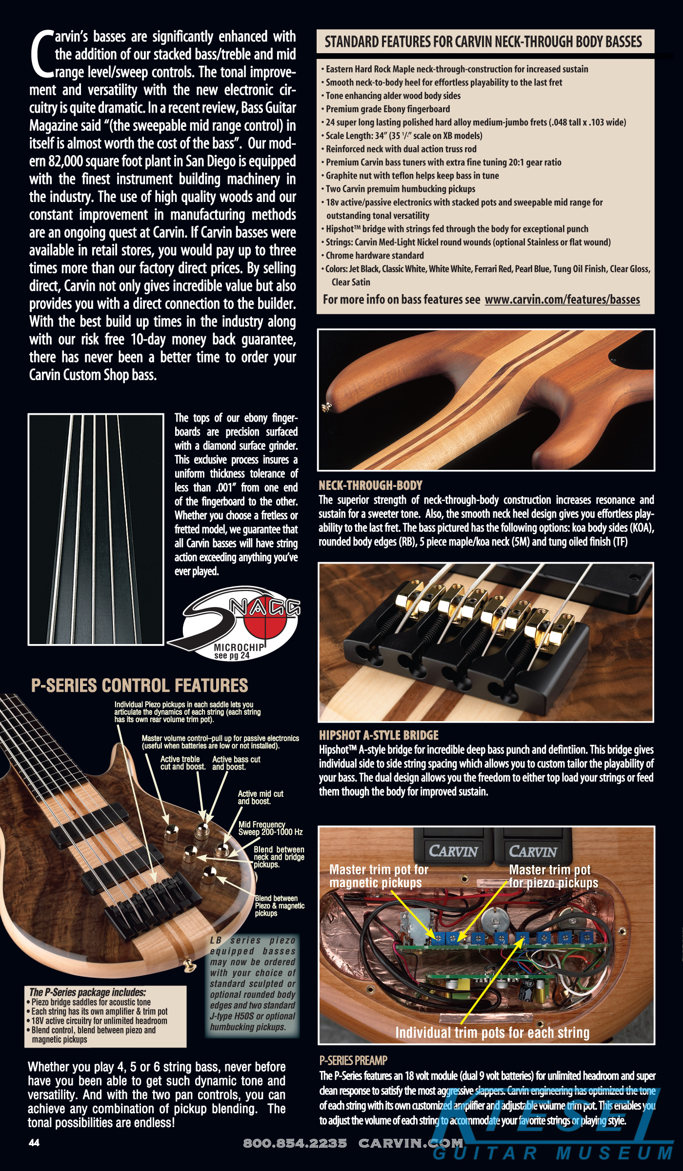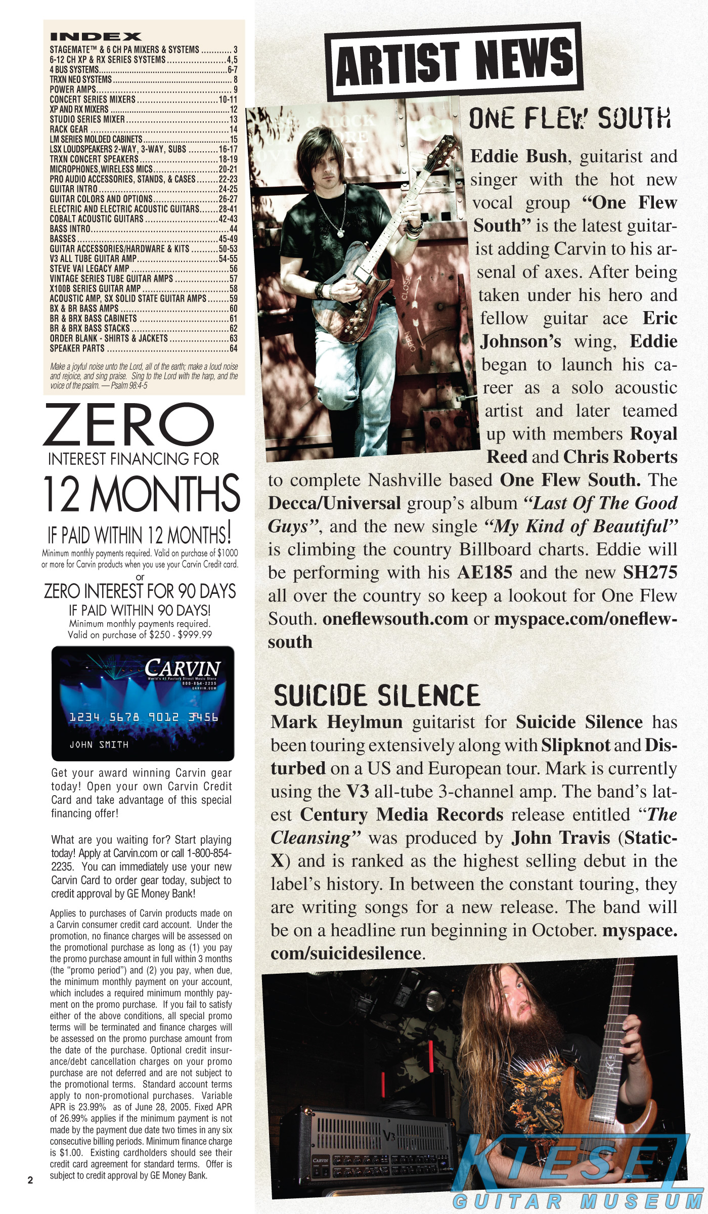 The SC90 and TL60 continued to be somewhat popular, but were being eclipsed by all of Carvin's new offerings. Despite their waning populatity, these models would be around for many more years. There were no significant changes to either model for the 2008 model year. The SC90 would only apprea in two catalogs, and the TL60 would move onto the new SH60 page mid-year.