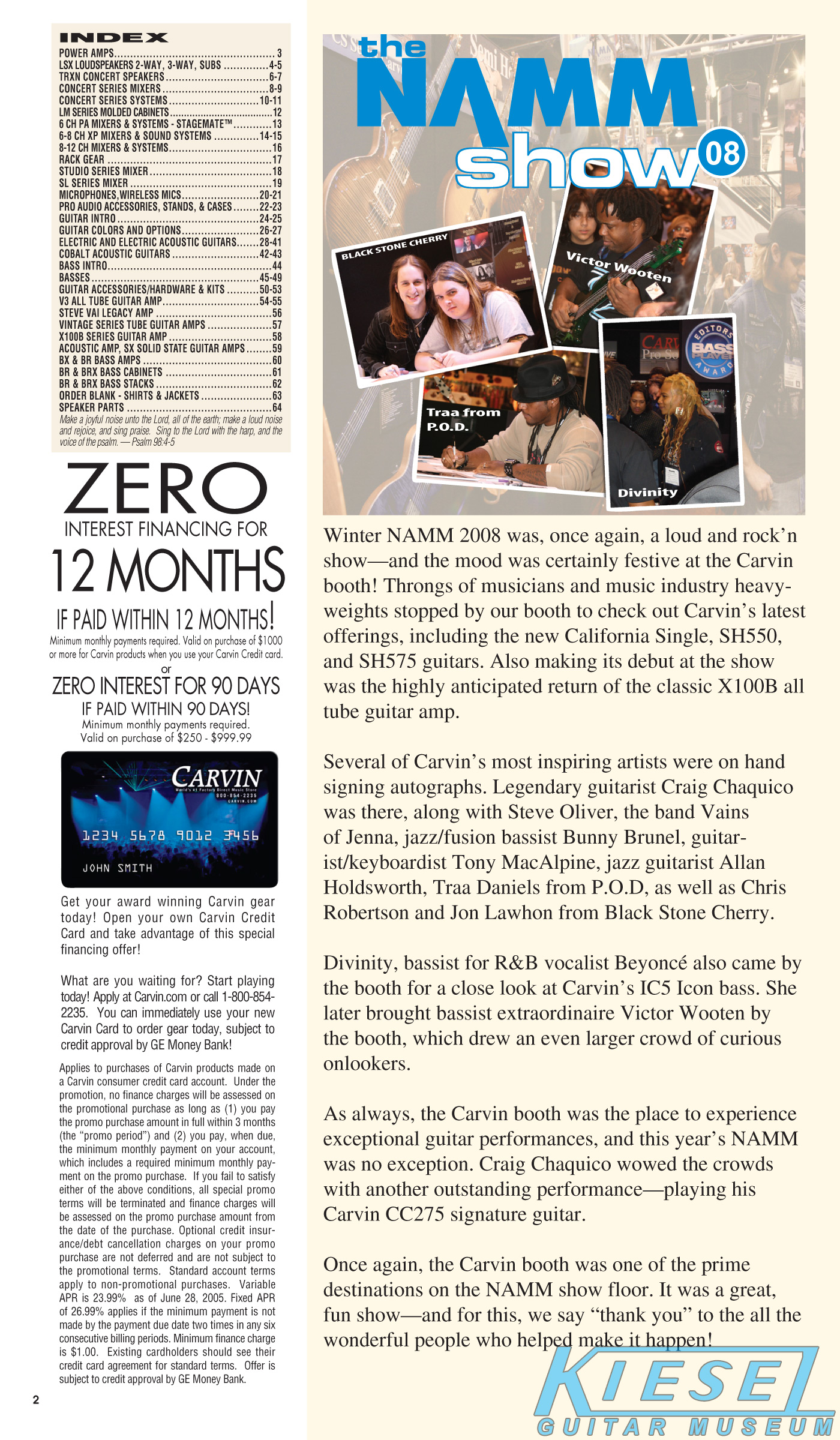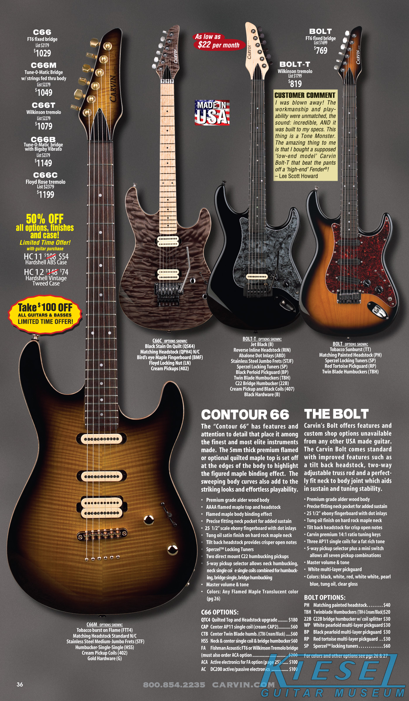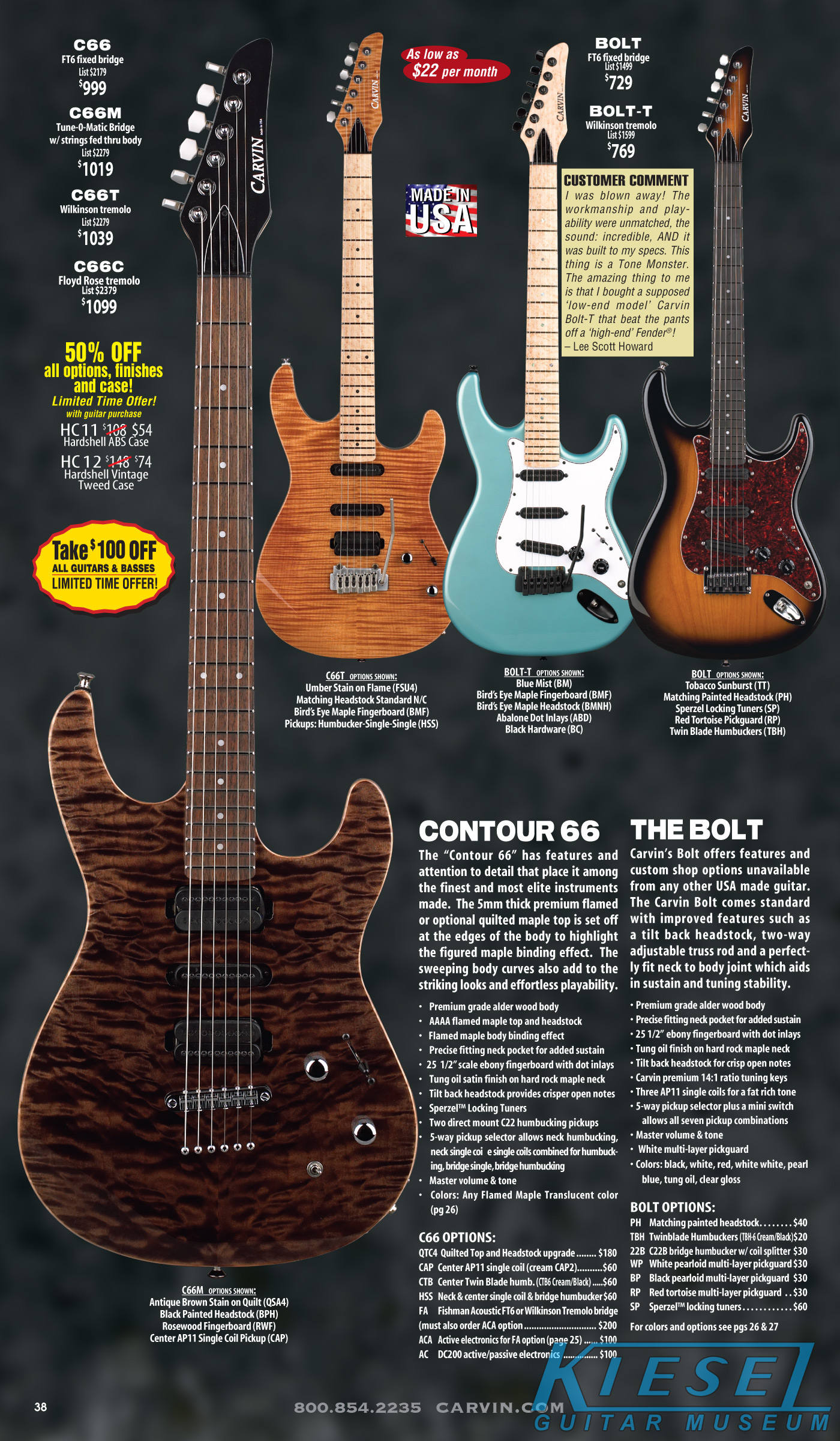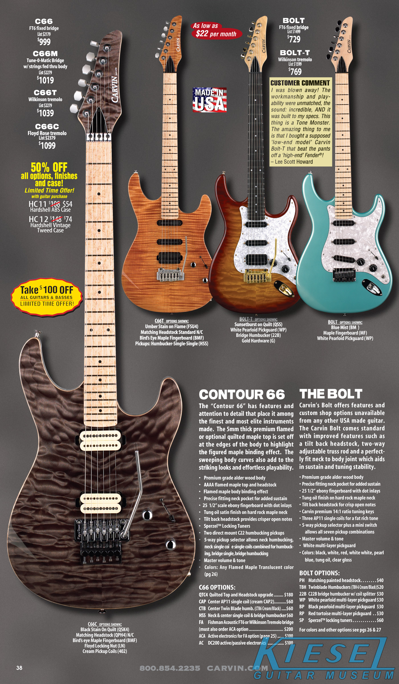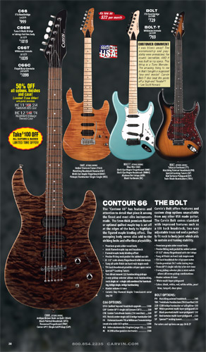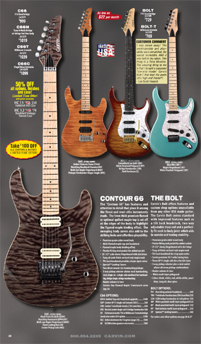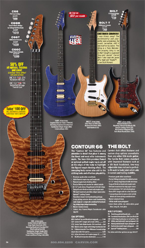 Carvin's bolt-on neck guitars, the Bolt, BoltPlus and C66 were unchanged, although due to space limitations, the BoltPlus was not shown in any of the 2008 catalogs.