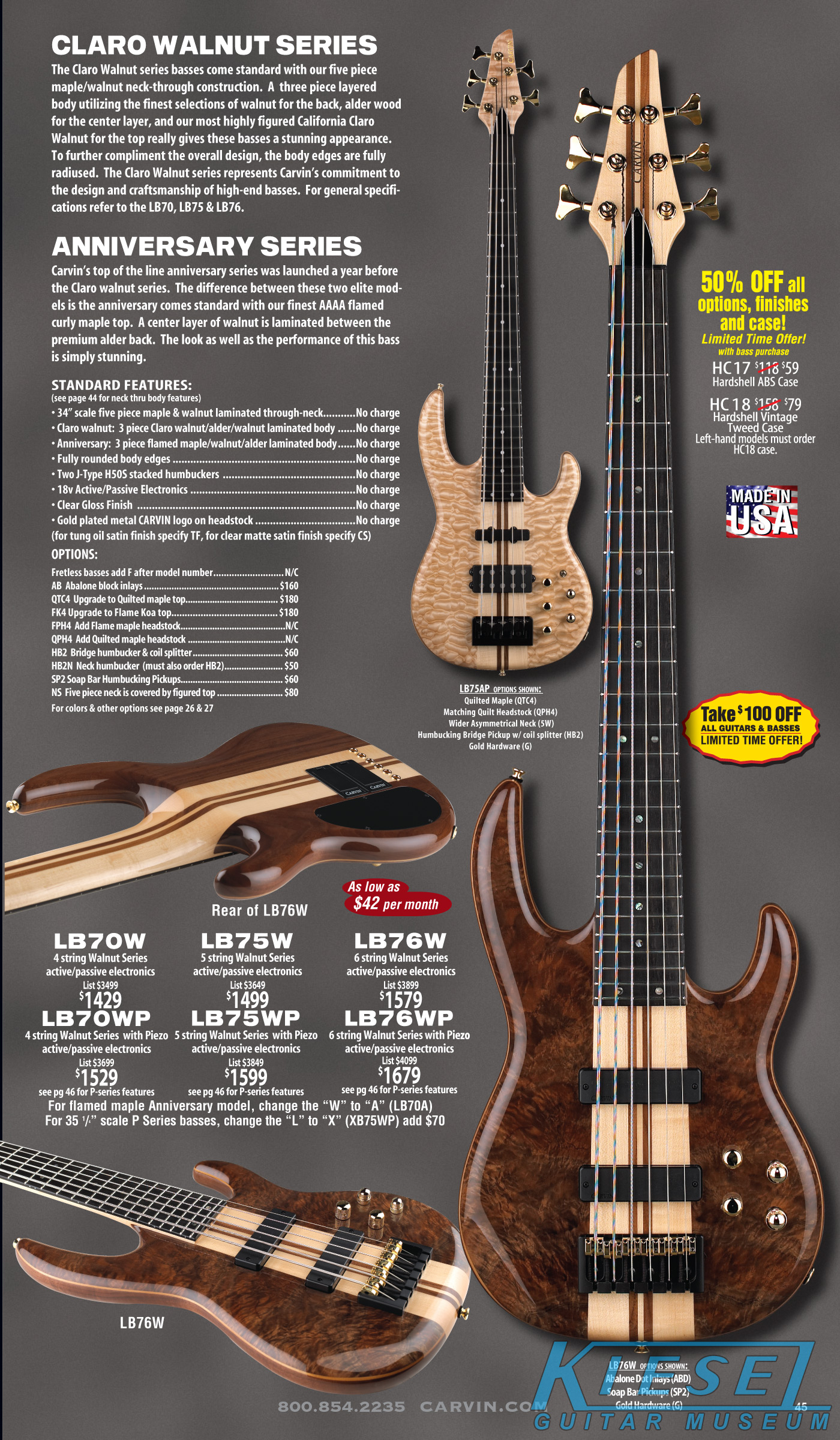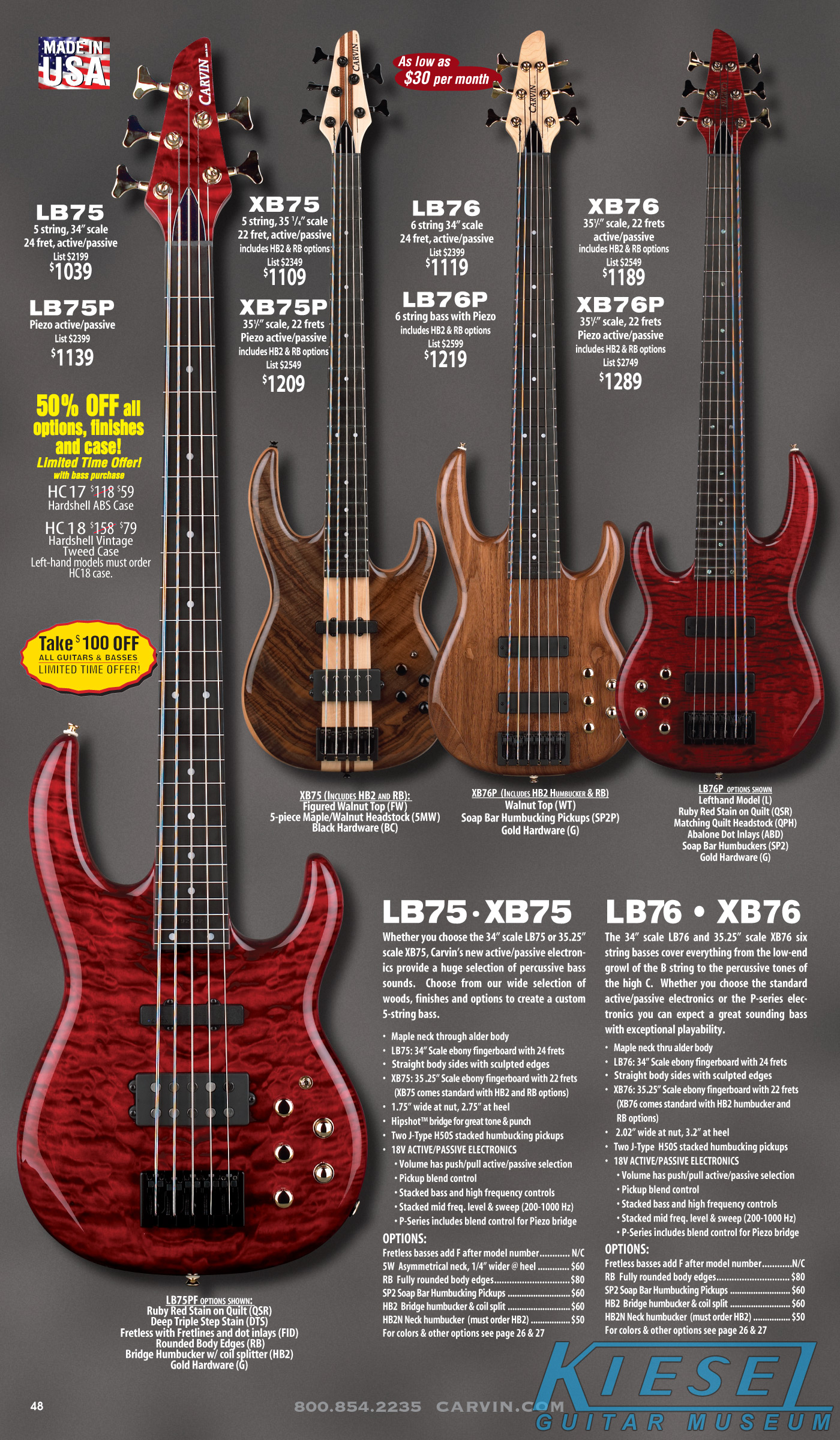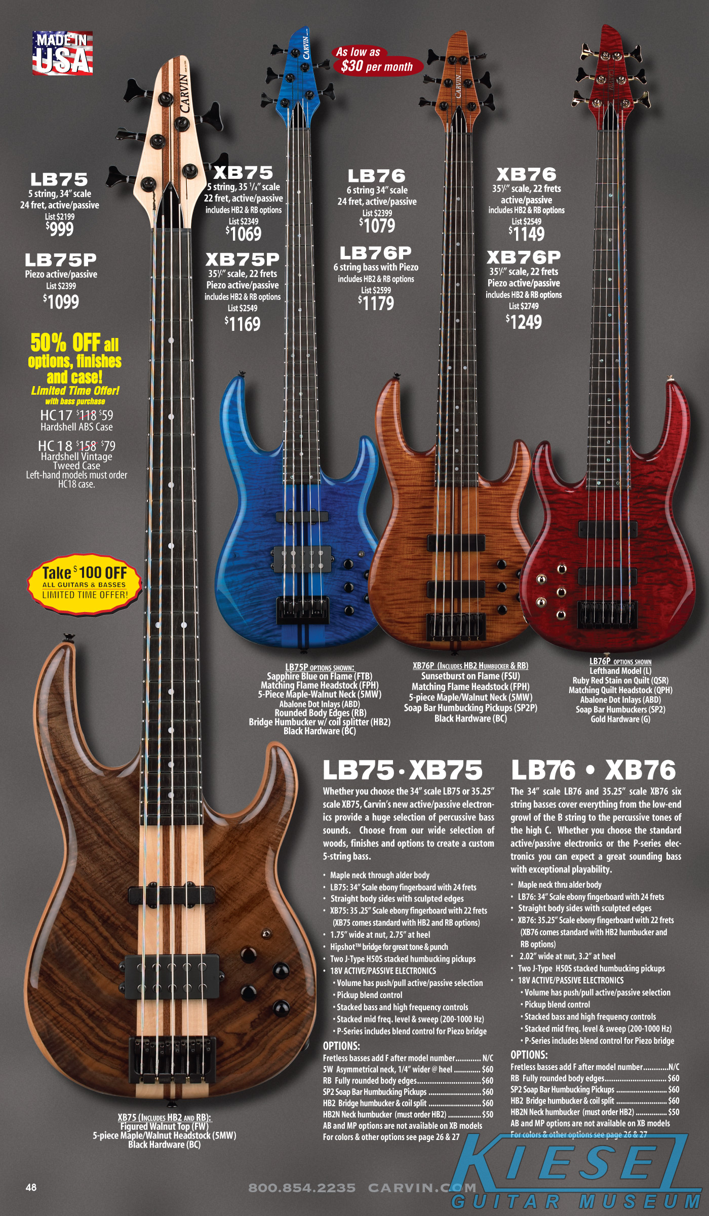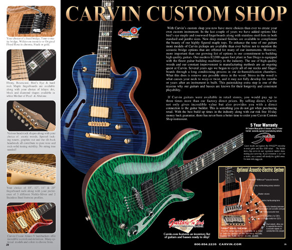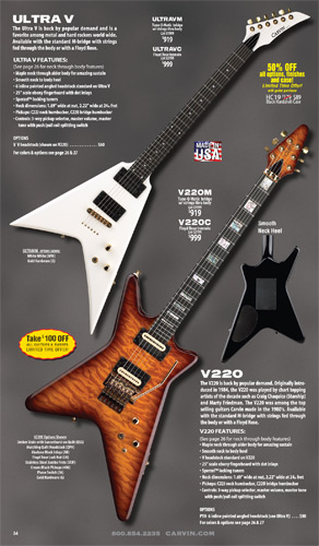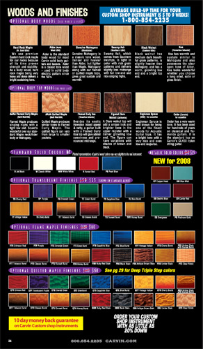 Either model could also be ordered with a flamed maple body and/or flamed maple neck, which was an option that would eventually proliferate to other models in Carvin's lineup.