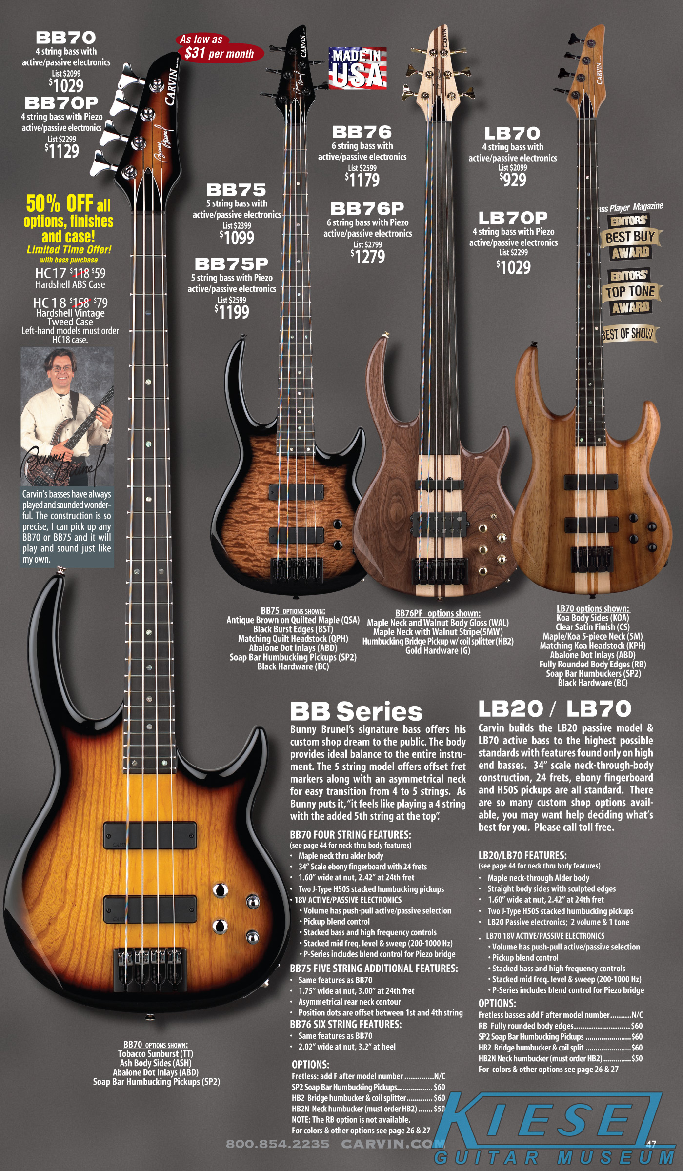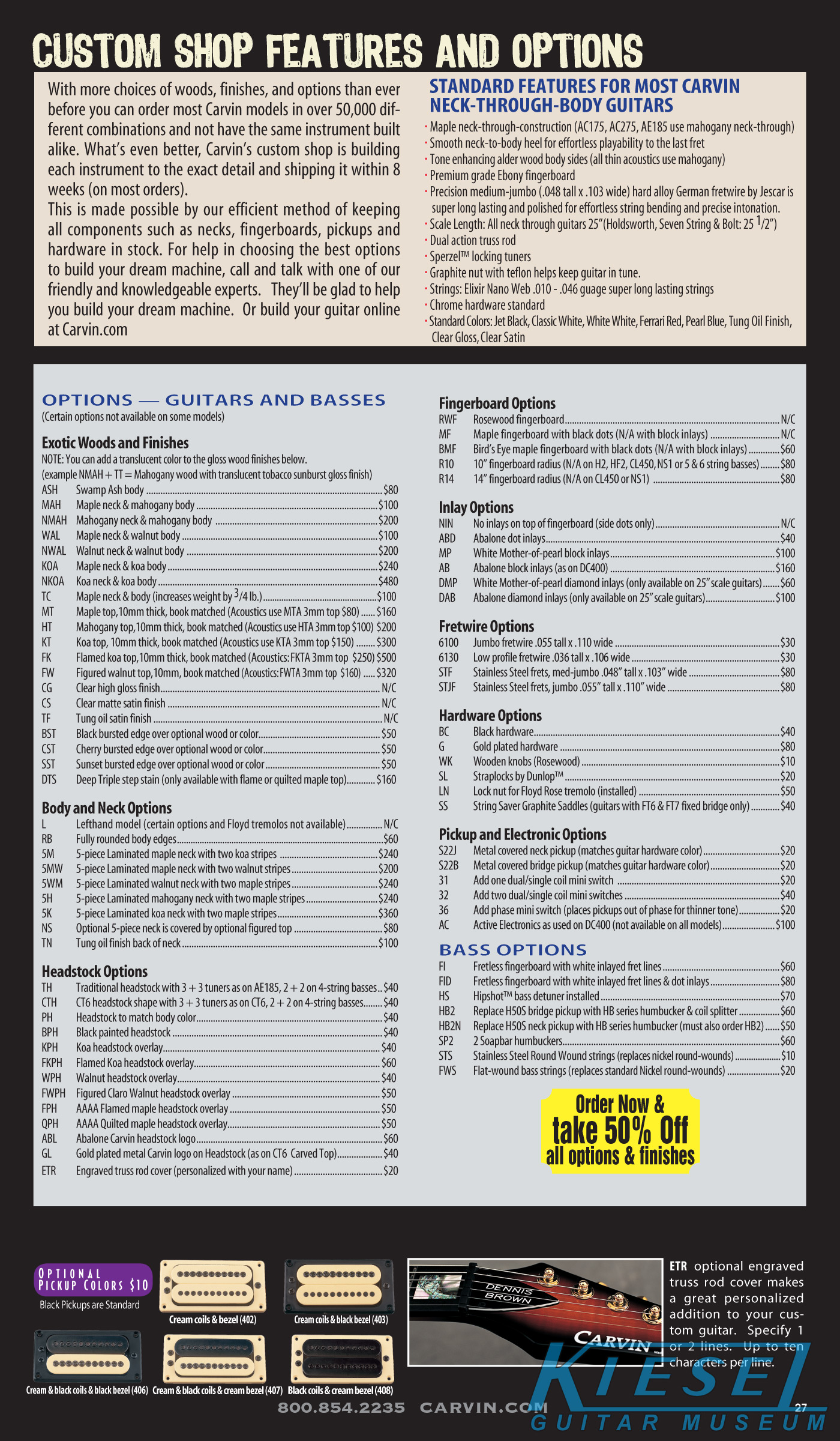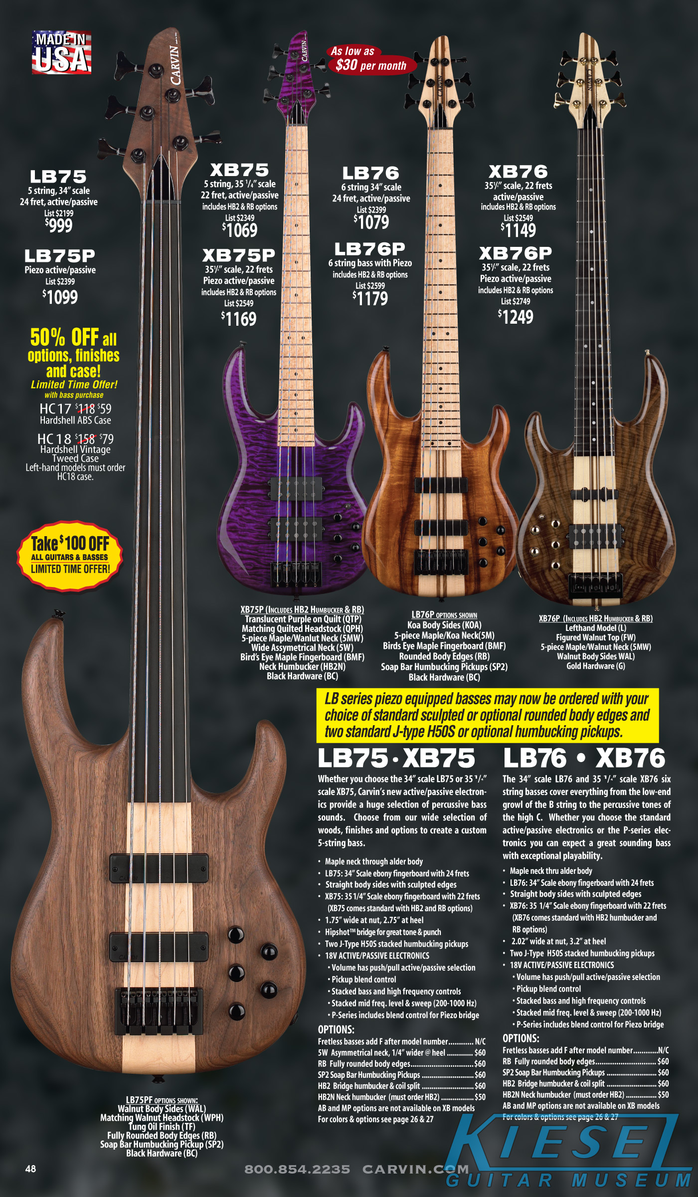 Either model could also be ordered with a flamed maple body and/or flamed maple neck, which was an option that would eventually proliferate to other models in Carvin's lineup.