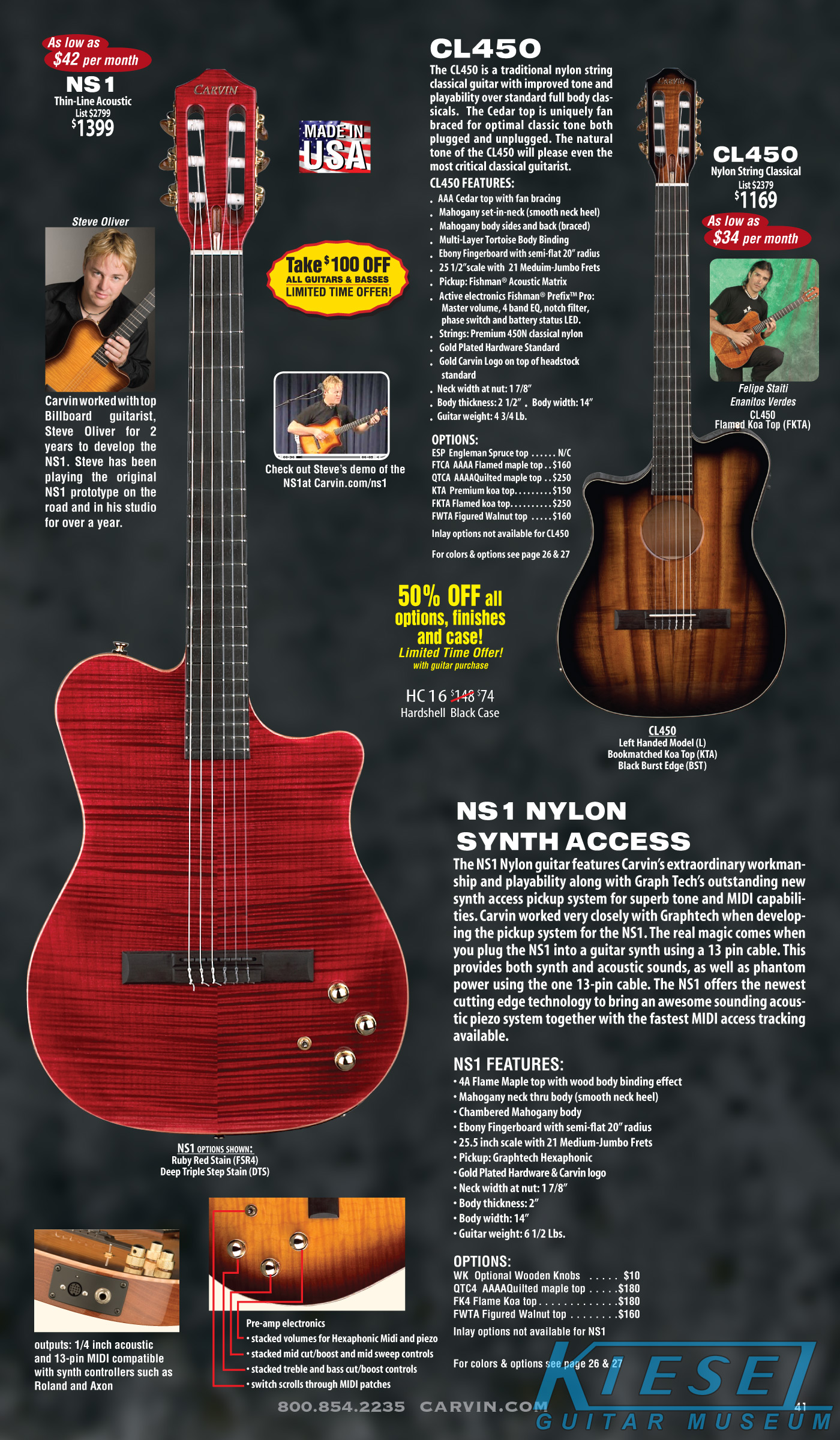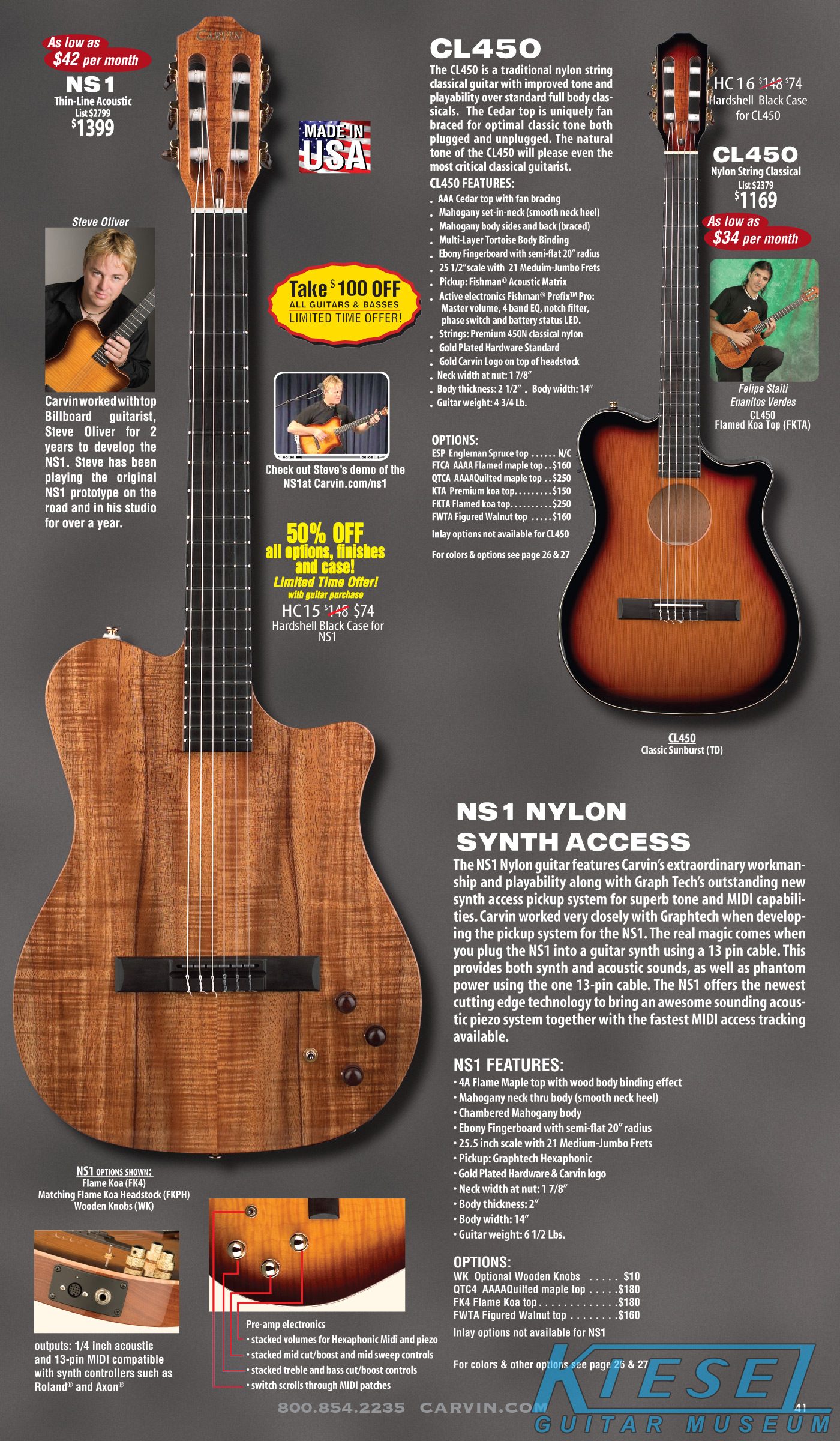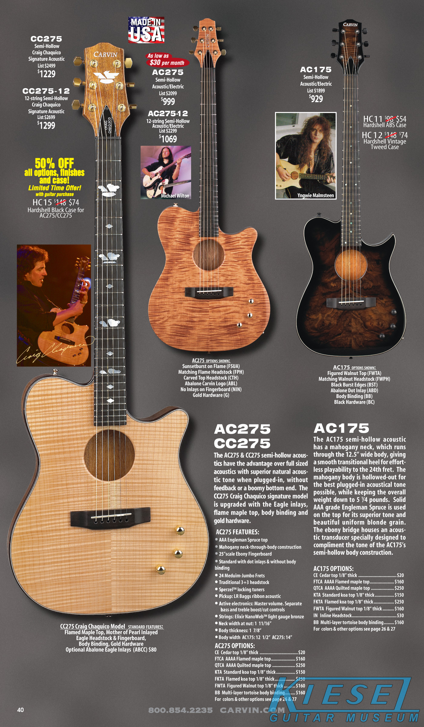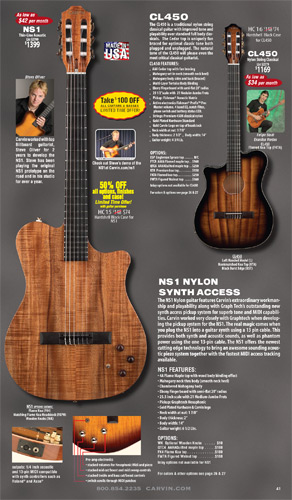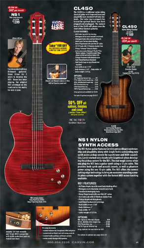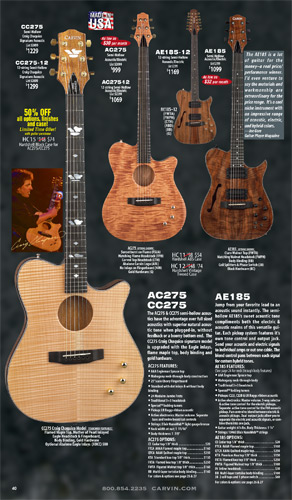 Carvin's other acoustic-electric models, the AC175, AC275 and Craig Chaquico Signature CC275 were all unchanged. The NS1, in its sophomore year, and the classic CL450 had no significant changes from 2007.