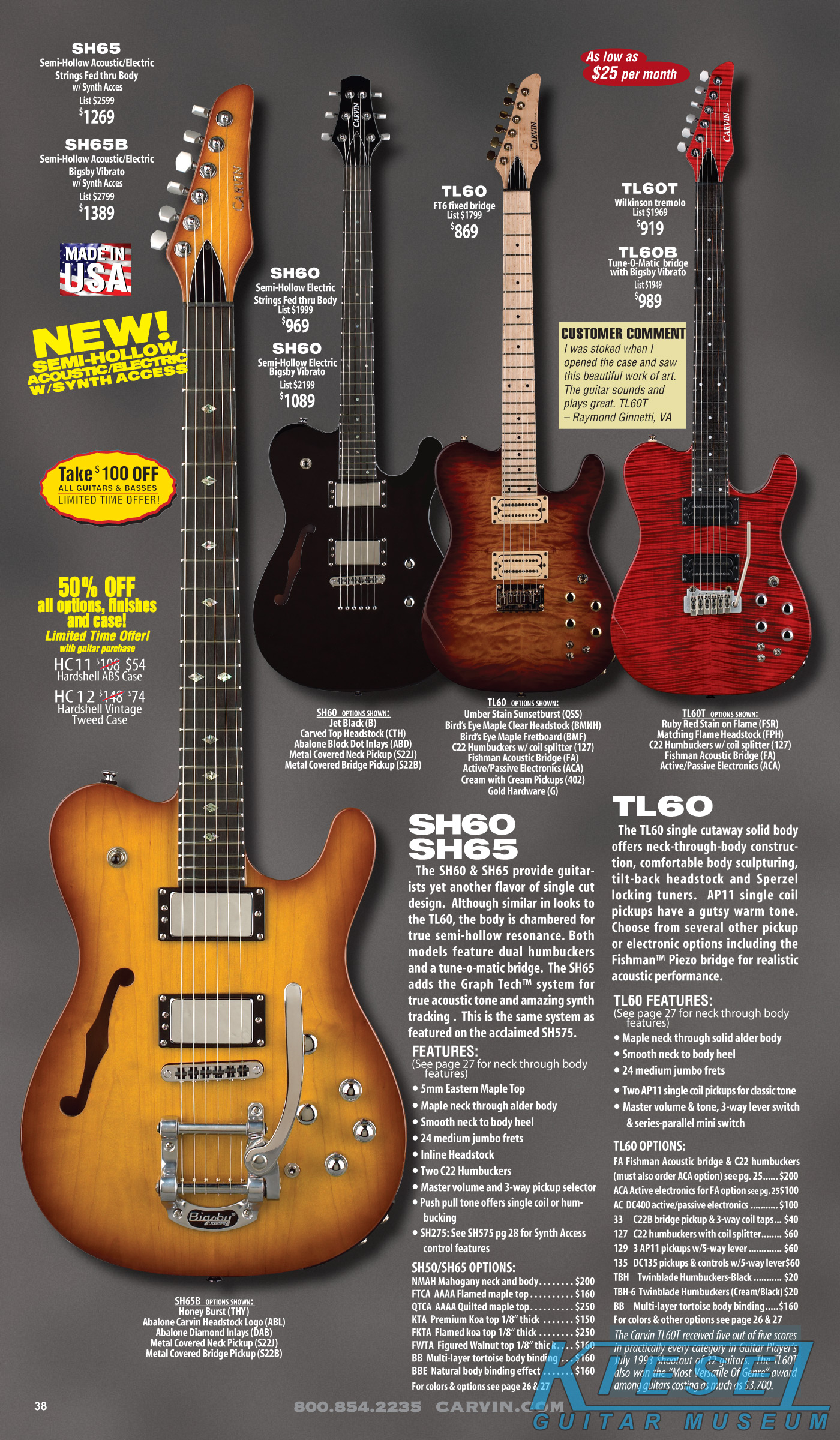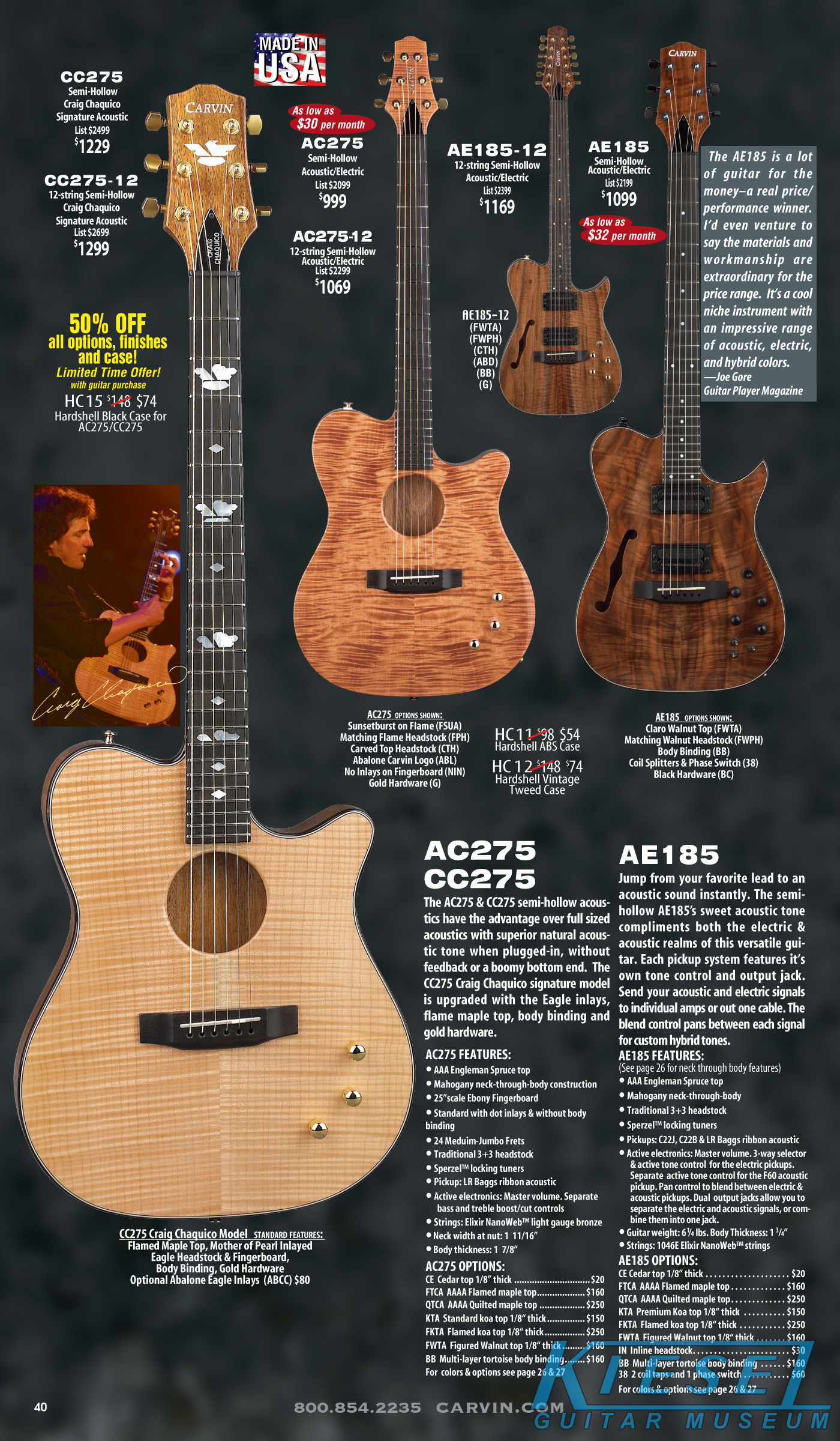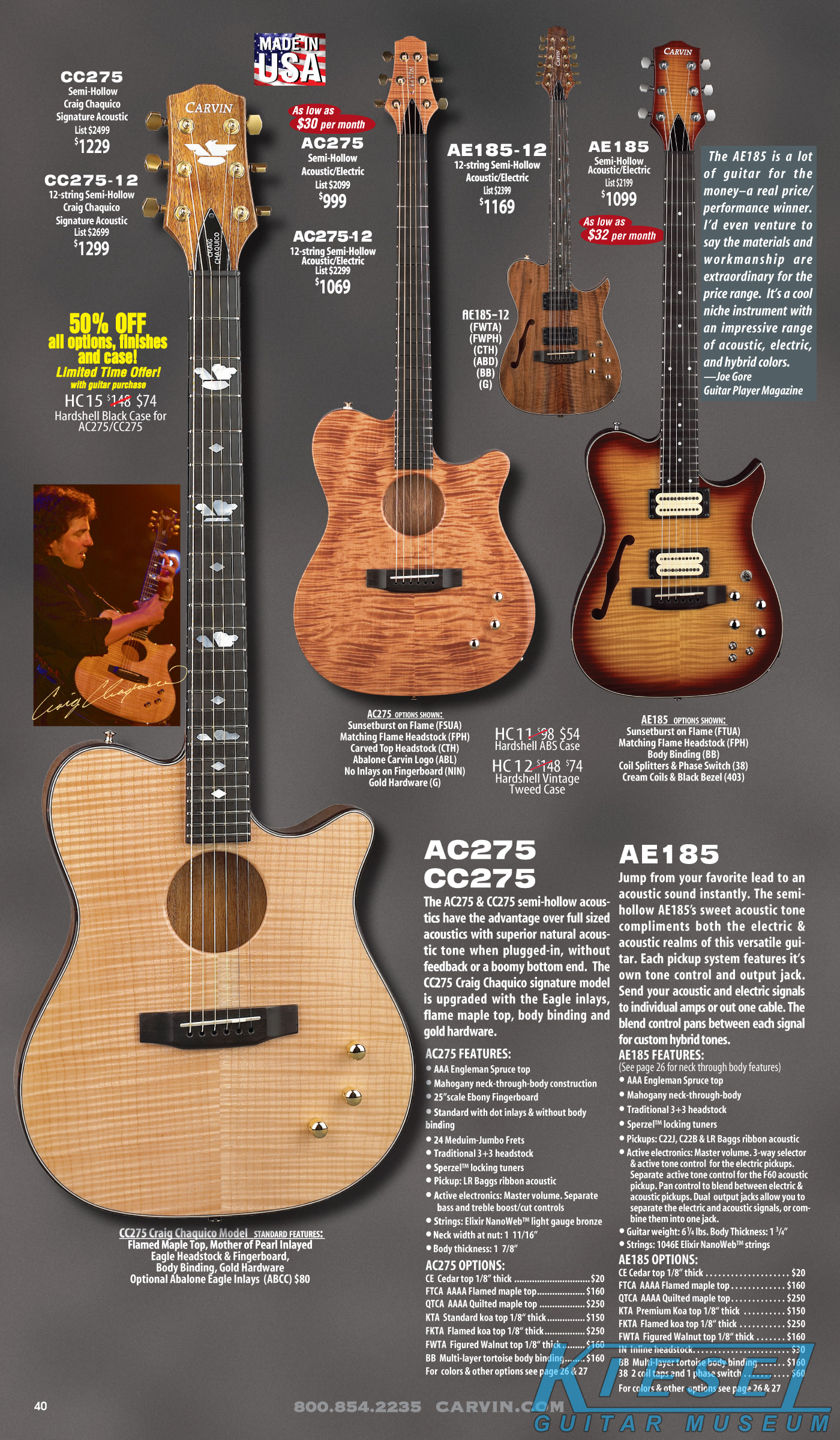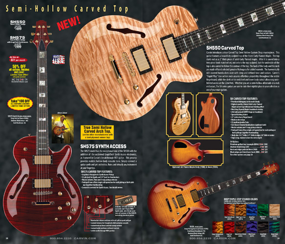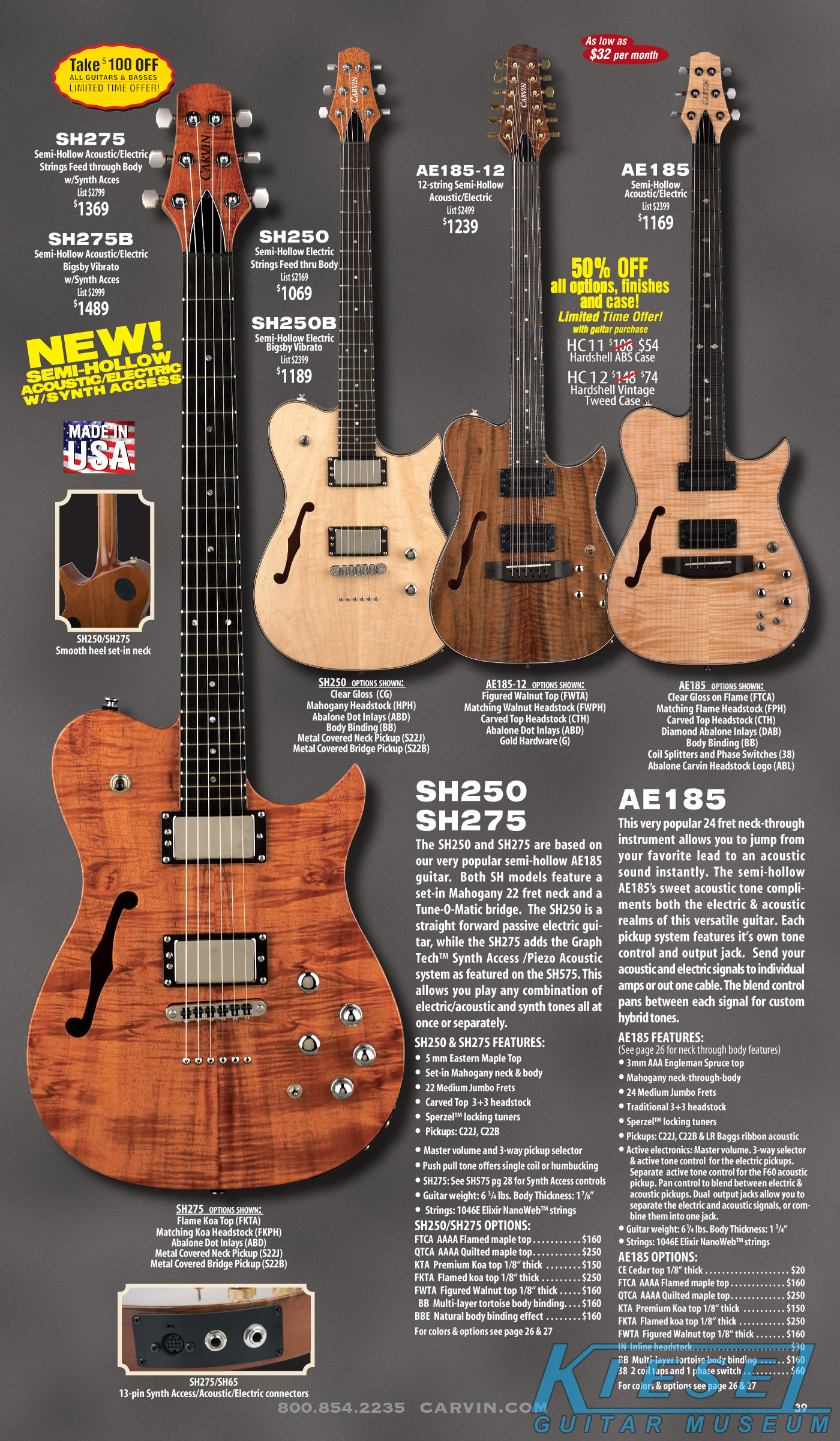In addition to the semi-hollow carved top SH550 and SH575, Carvin offered two other new acoustic-electric models with