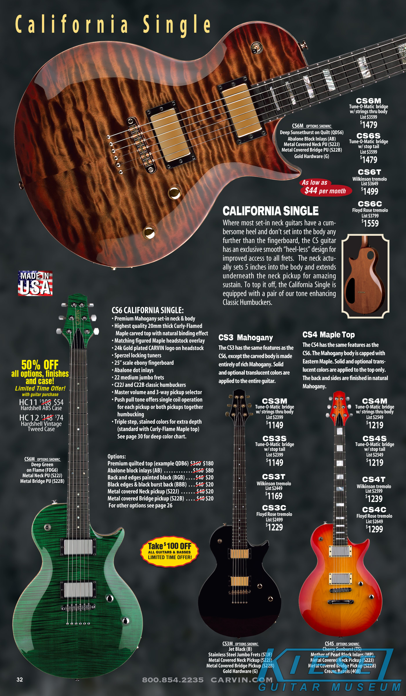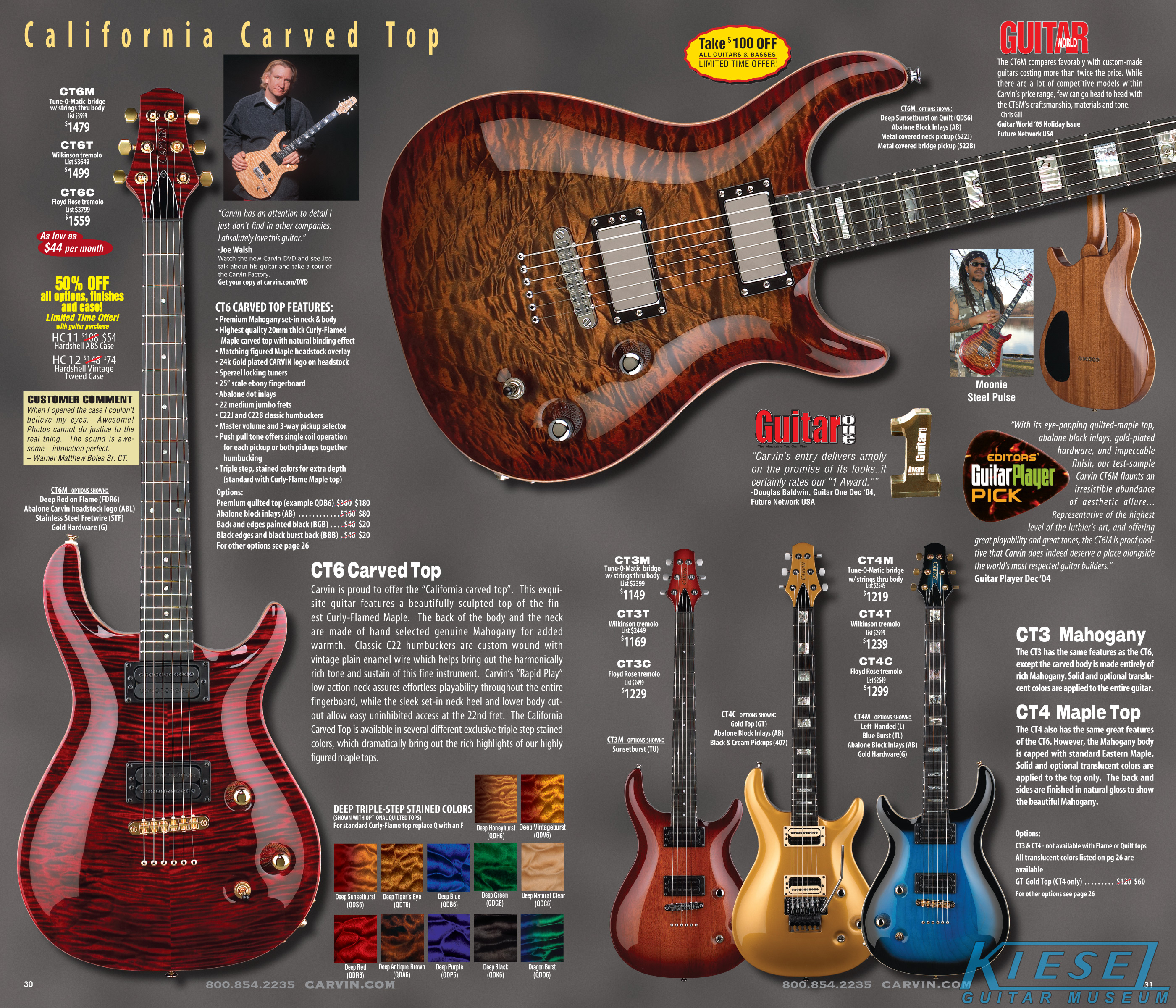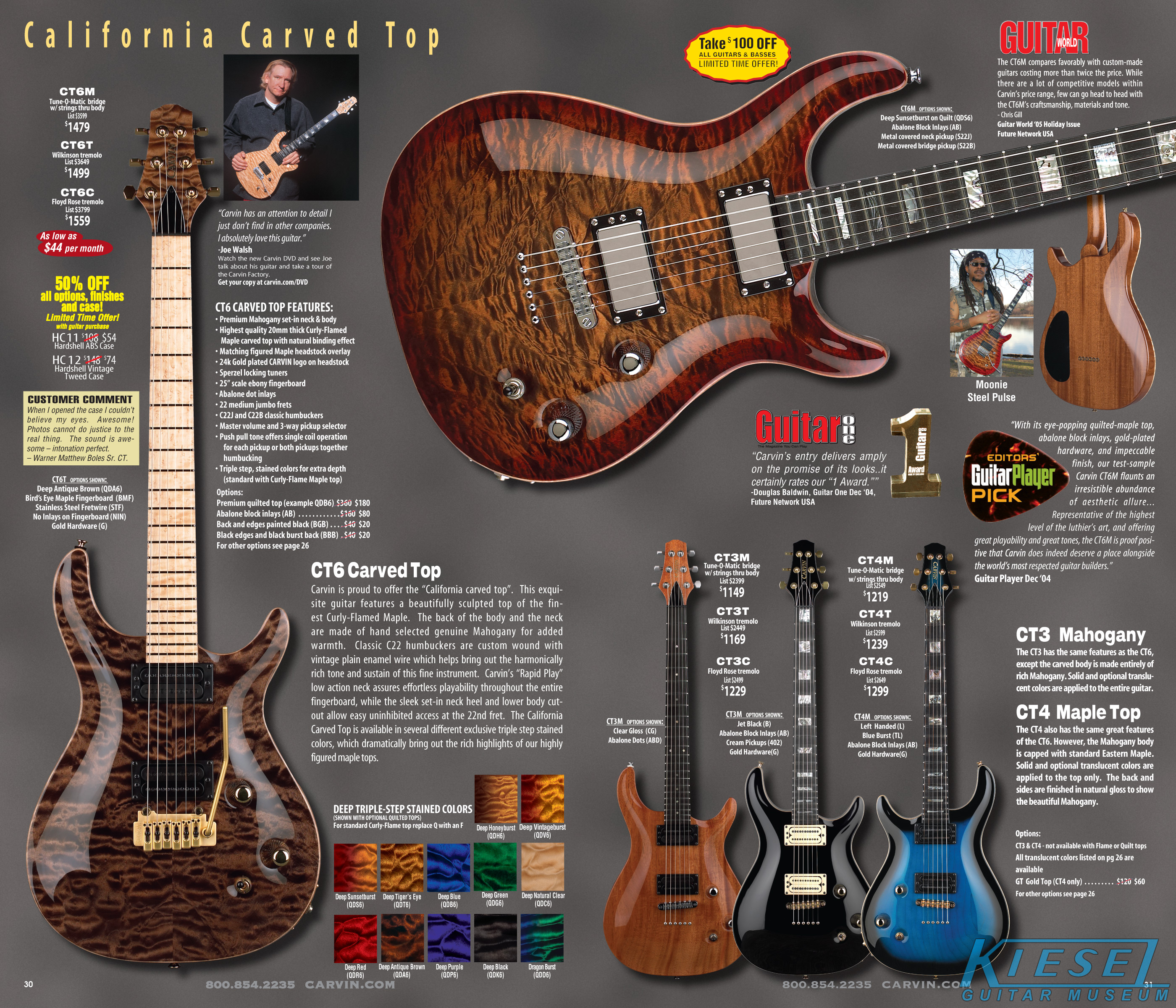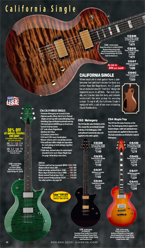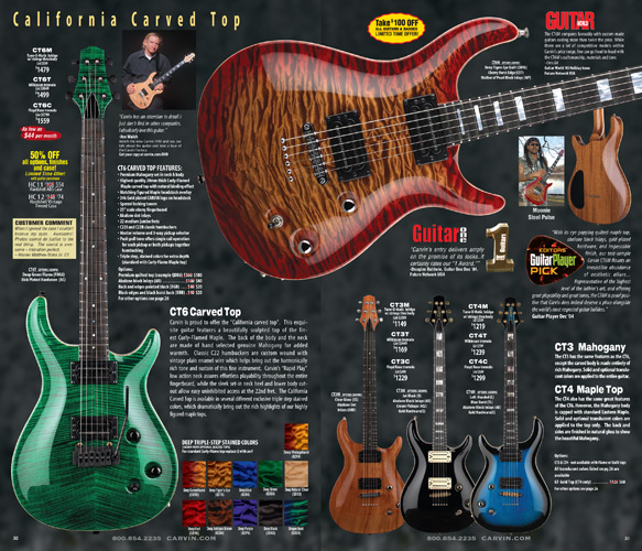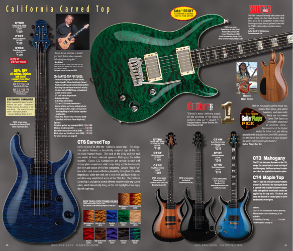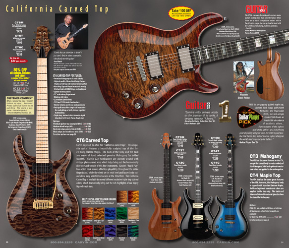 With the introduction of the SH guitars, Carvin's other carved top instruments, the California Carved Top CT and CS Series, were unchanged for 2008. This series was in its 3rd year of availability, and had quickly become among Carvin's most popular models.