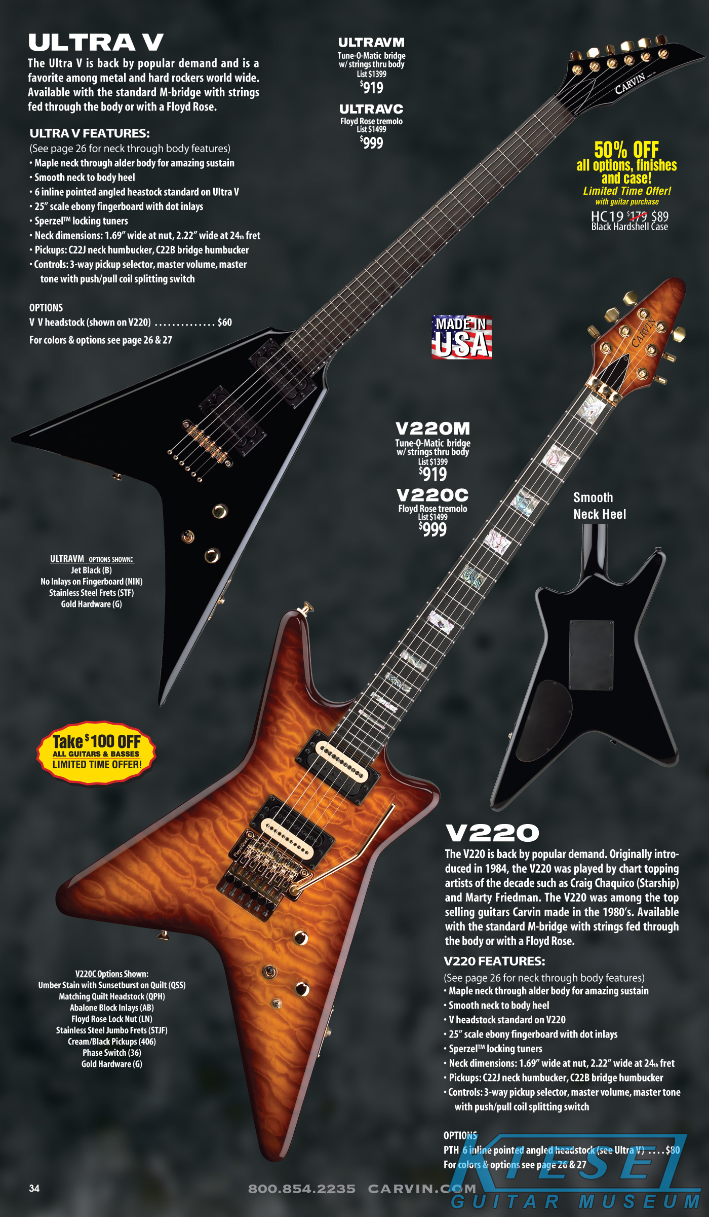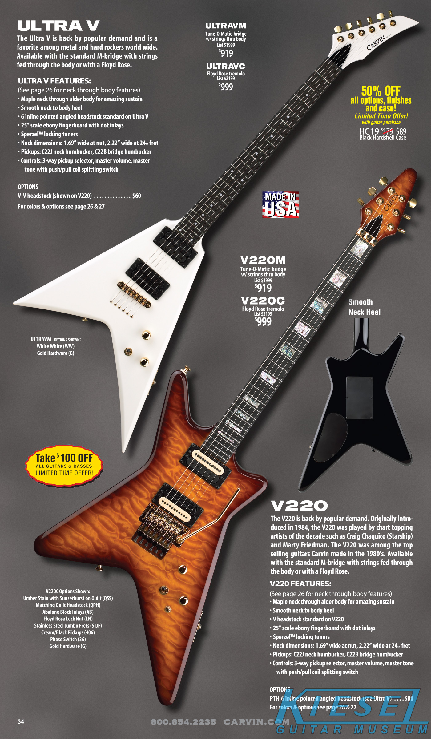 The V220 and Ultra V reissue guitars picked up momentum in their sophomore year, but there were no significant changes to either models, and they were only shown in two issues. At customers' requests, the option to have the output jack moved to the inside of the body (option VJ) was added.