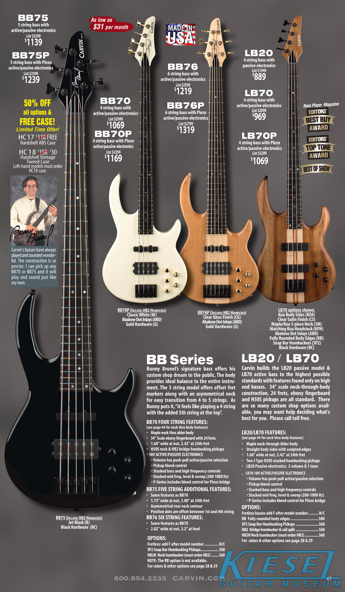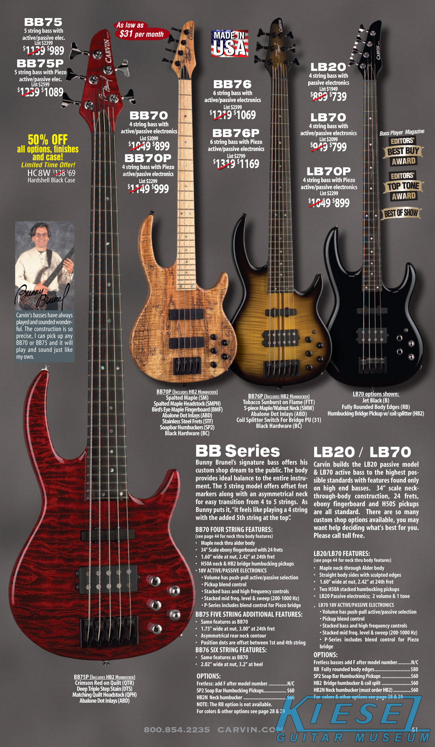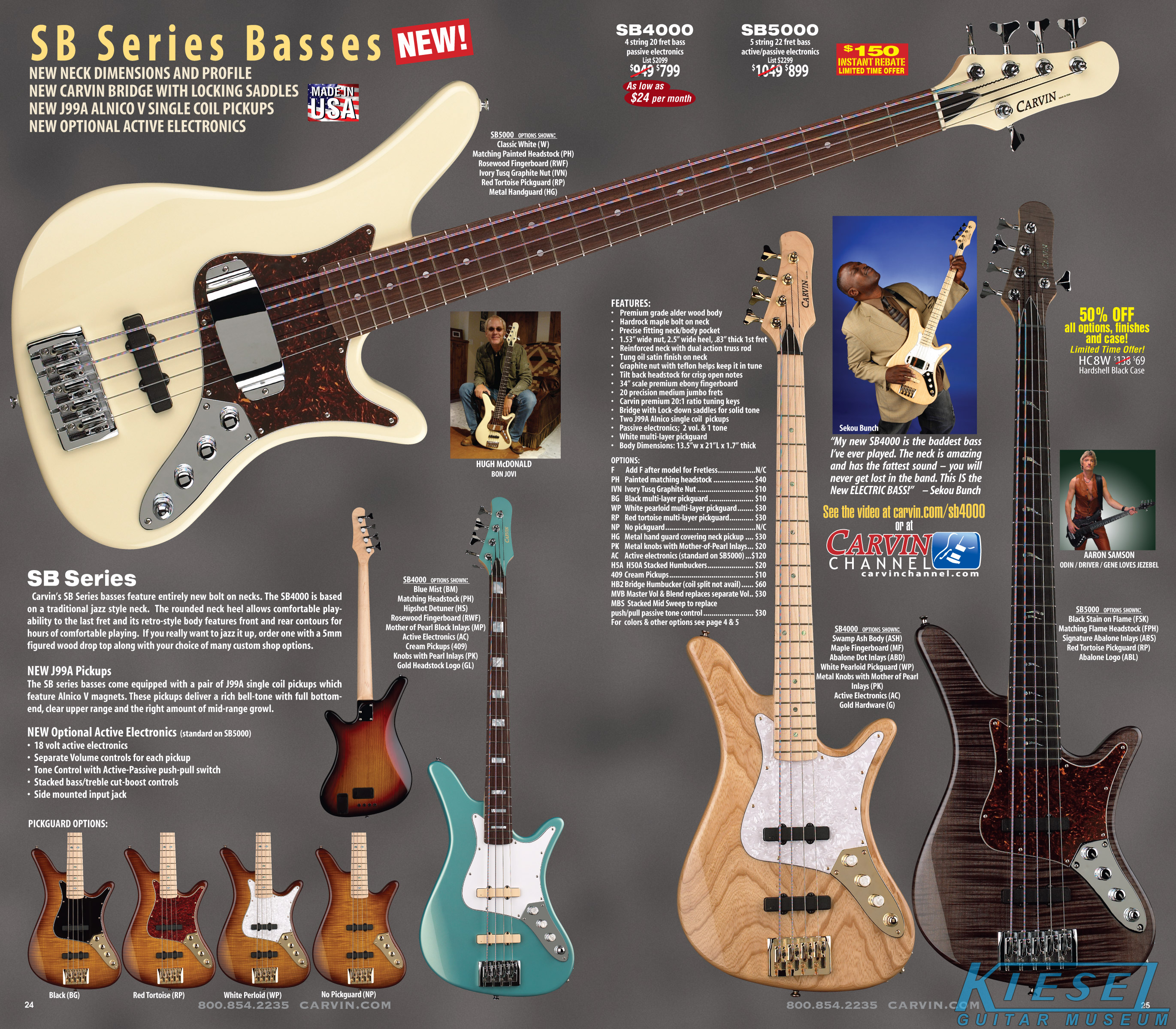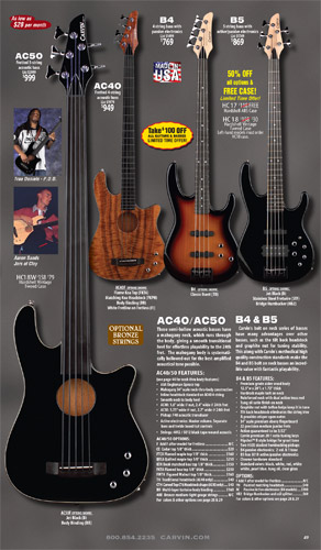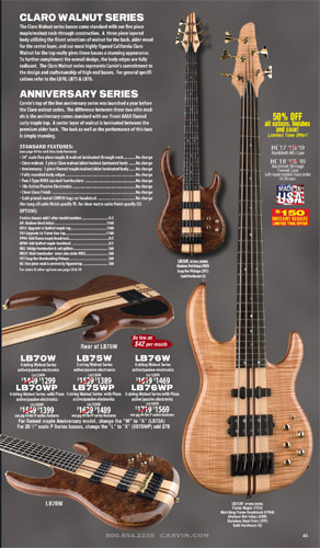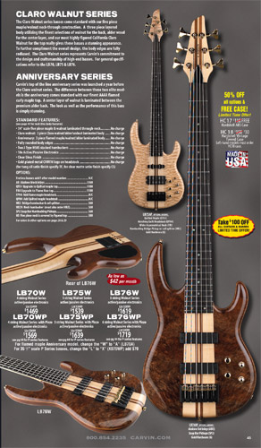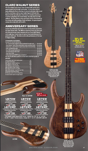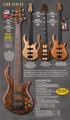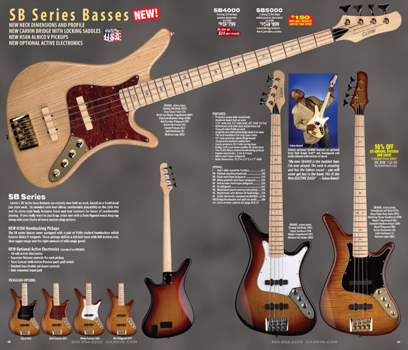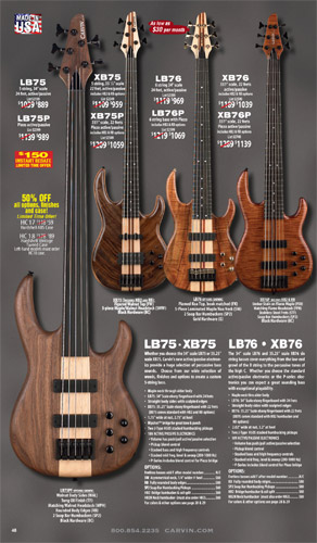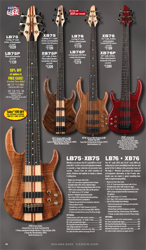 All other Carvin basses - the LB Series, XB Series, Icon Series, Bunny Brunel Series and AC Series - were unchanged for 2009, but all (except the AC models) were equipped with the new electronics and could be ordered with the new J99A or H50A pickups.