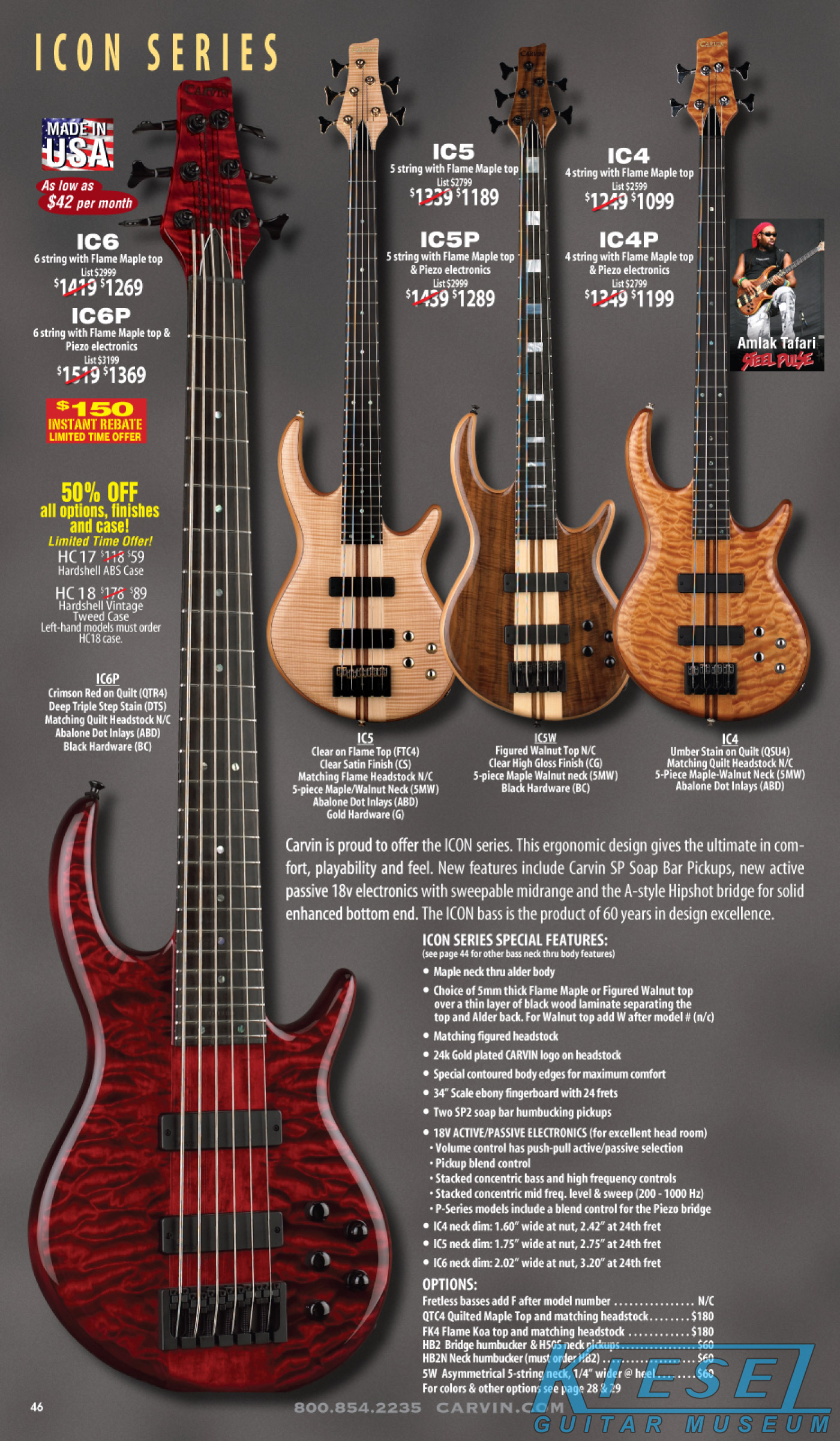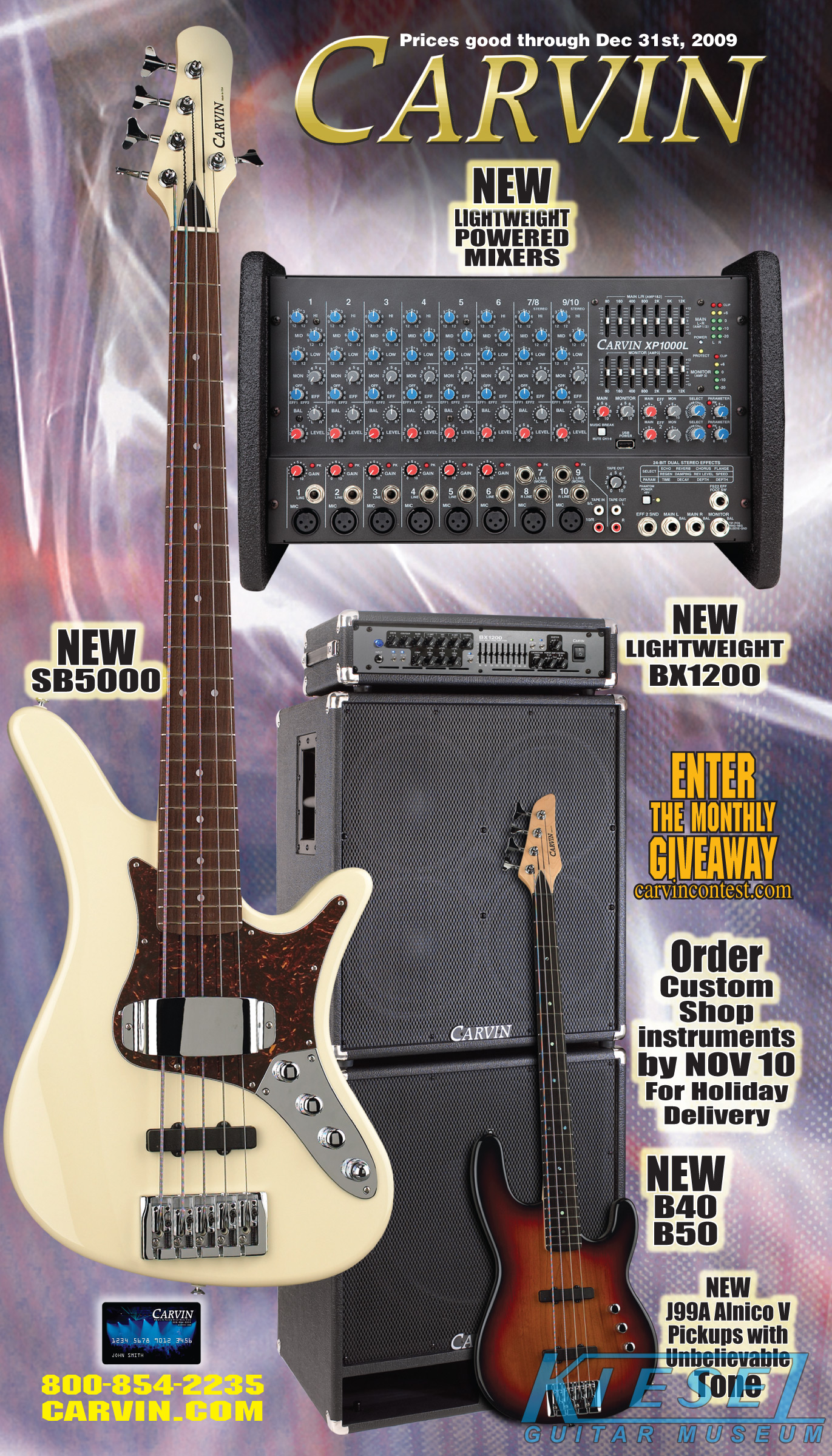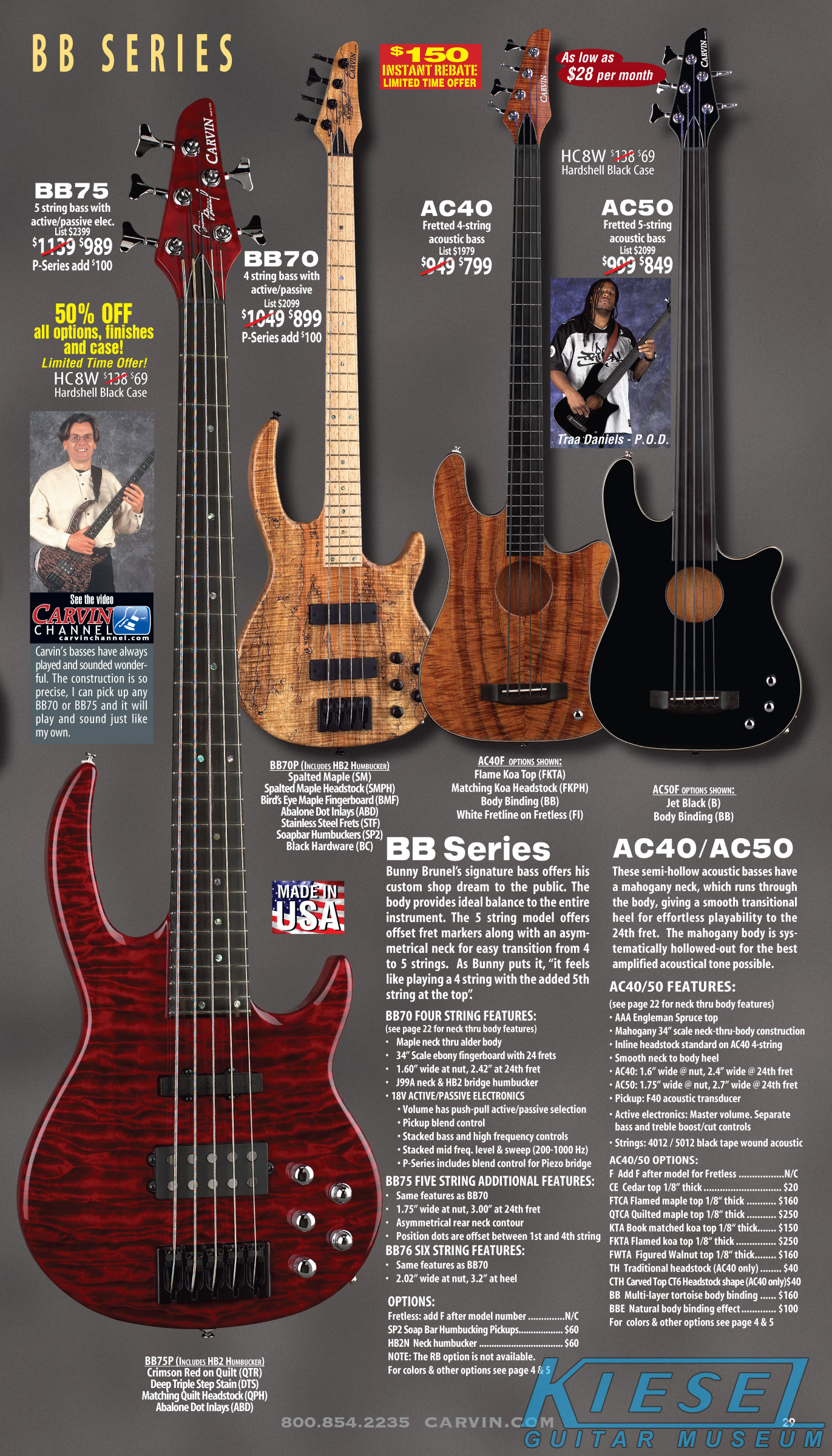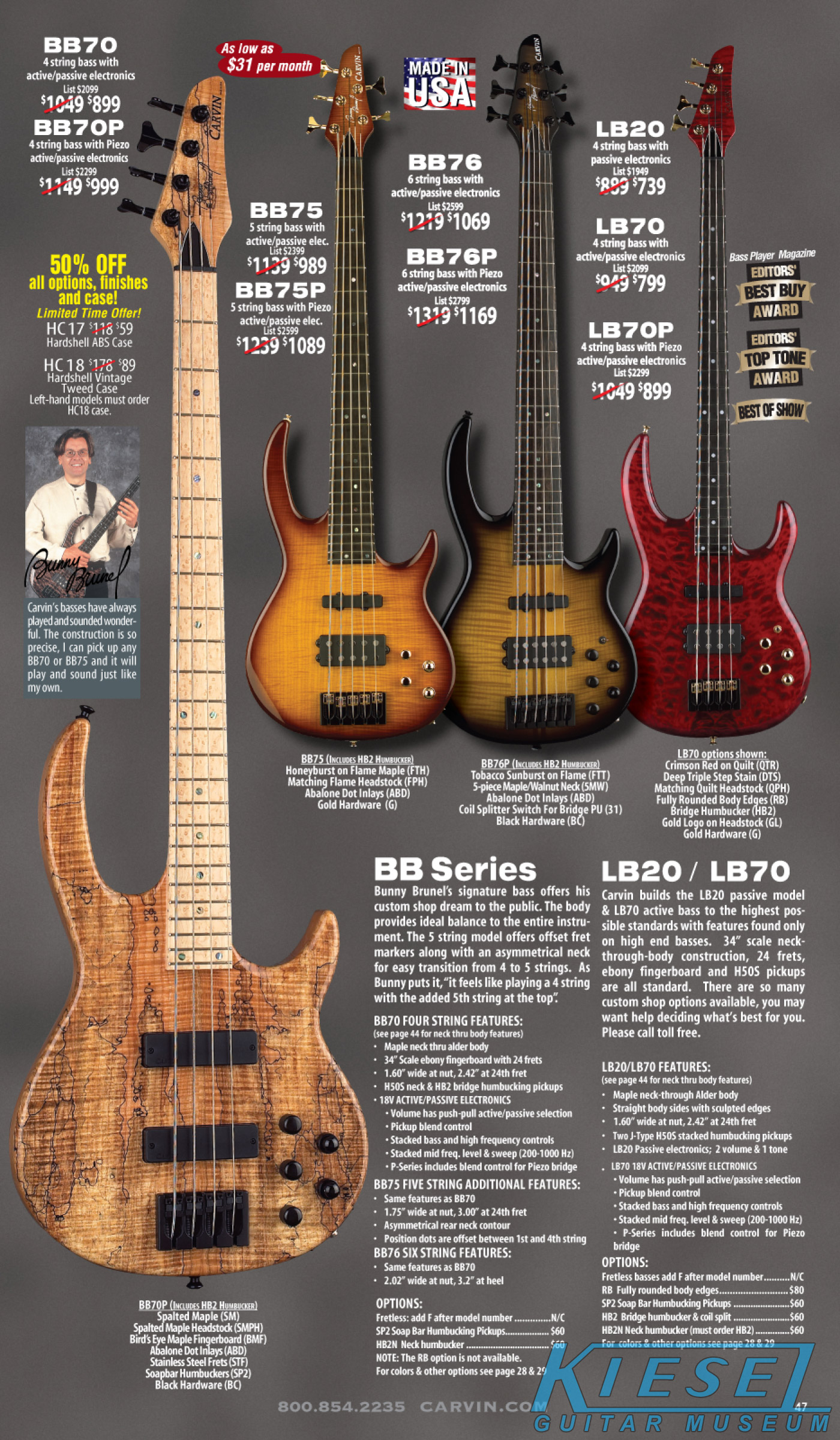 All other Carvin basses - the LB Series, XB Series, Icon Series, Bunny Brunel Series and AC Series - were unchanged for 2009, but all (except the AC models) were equipped with the new electronics and could be ordered with the new J99A or H50A pickups.