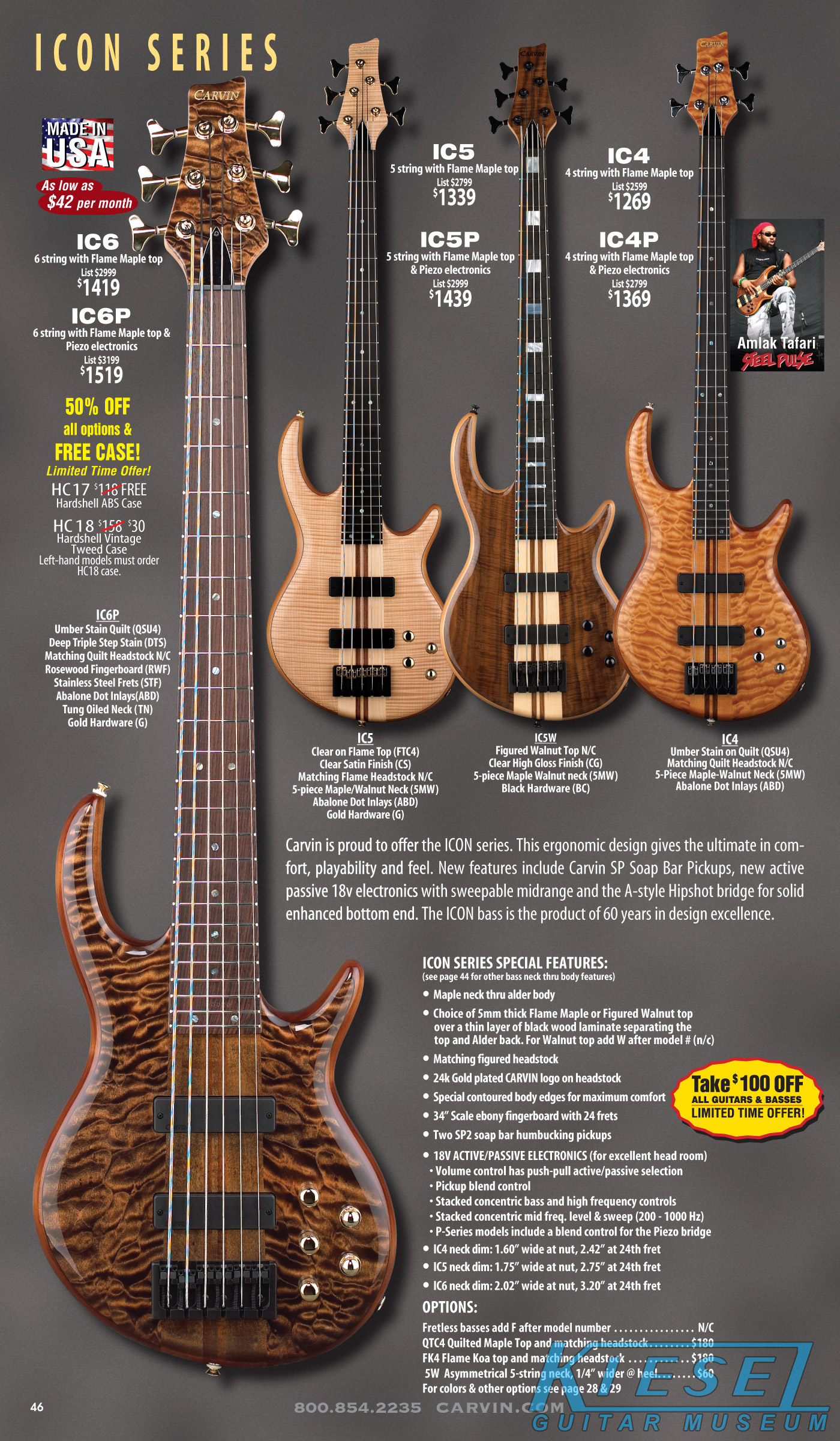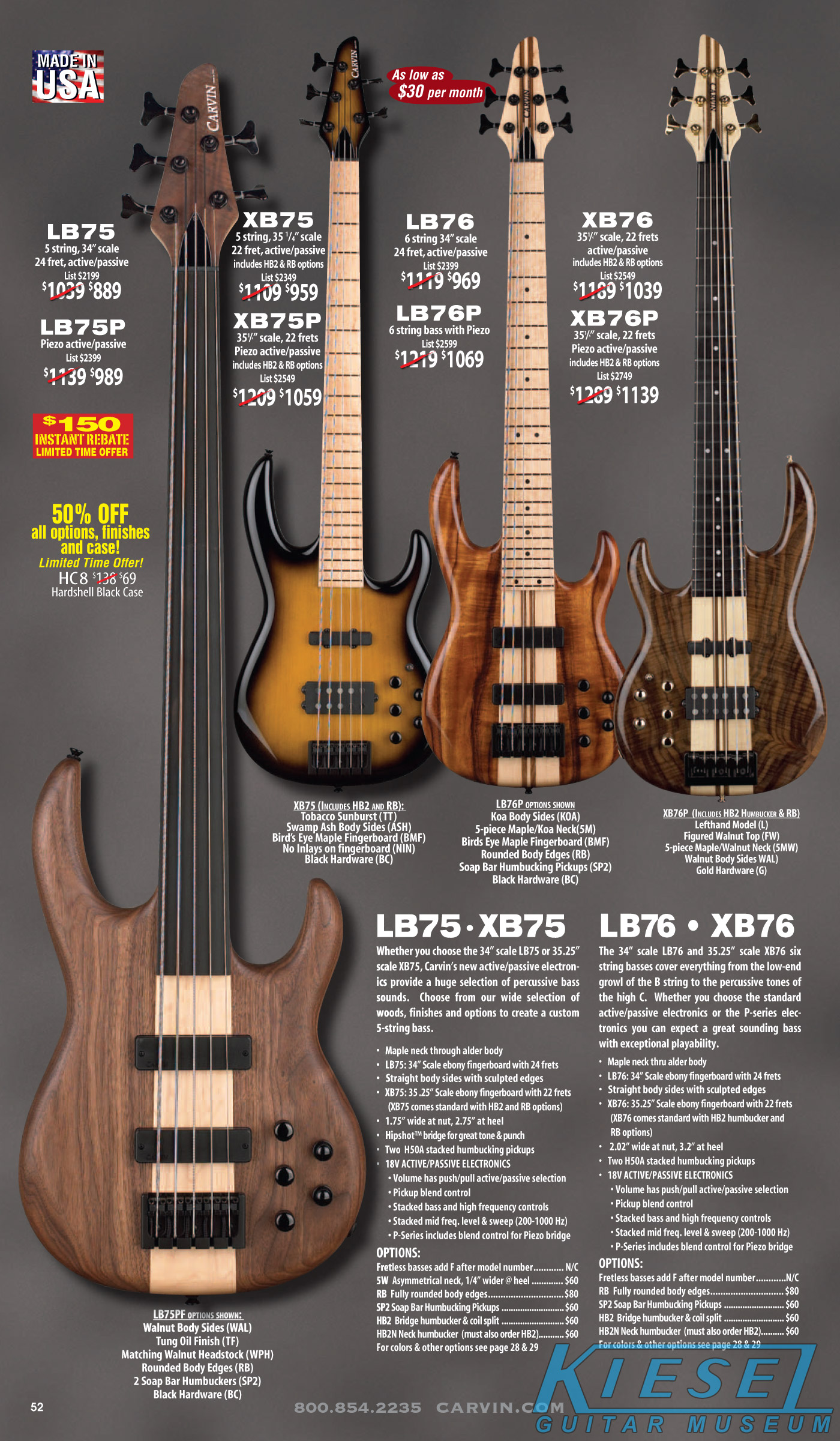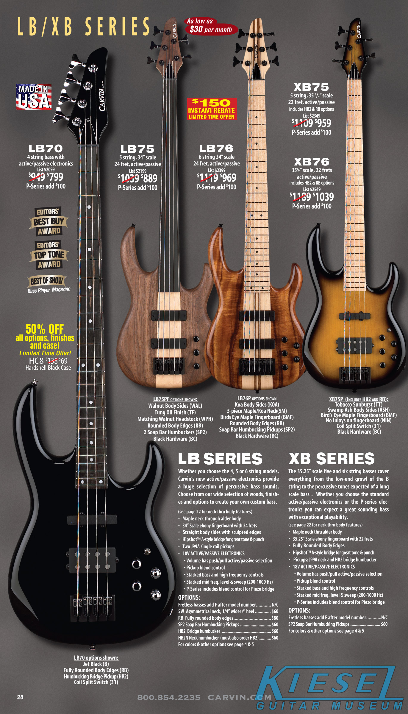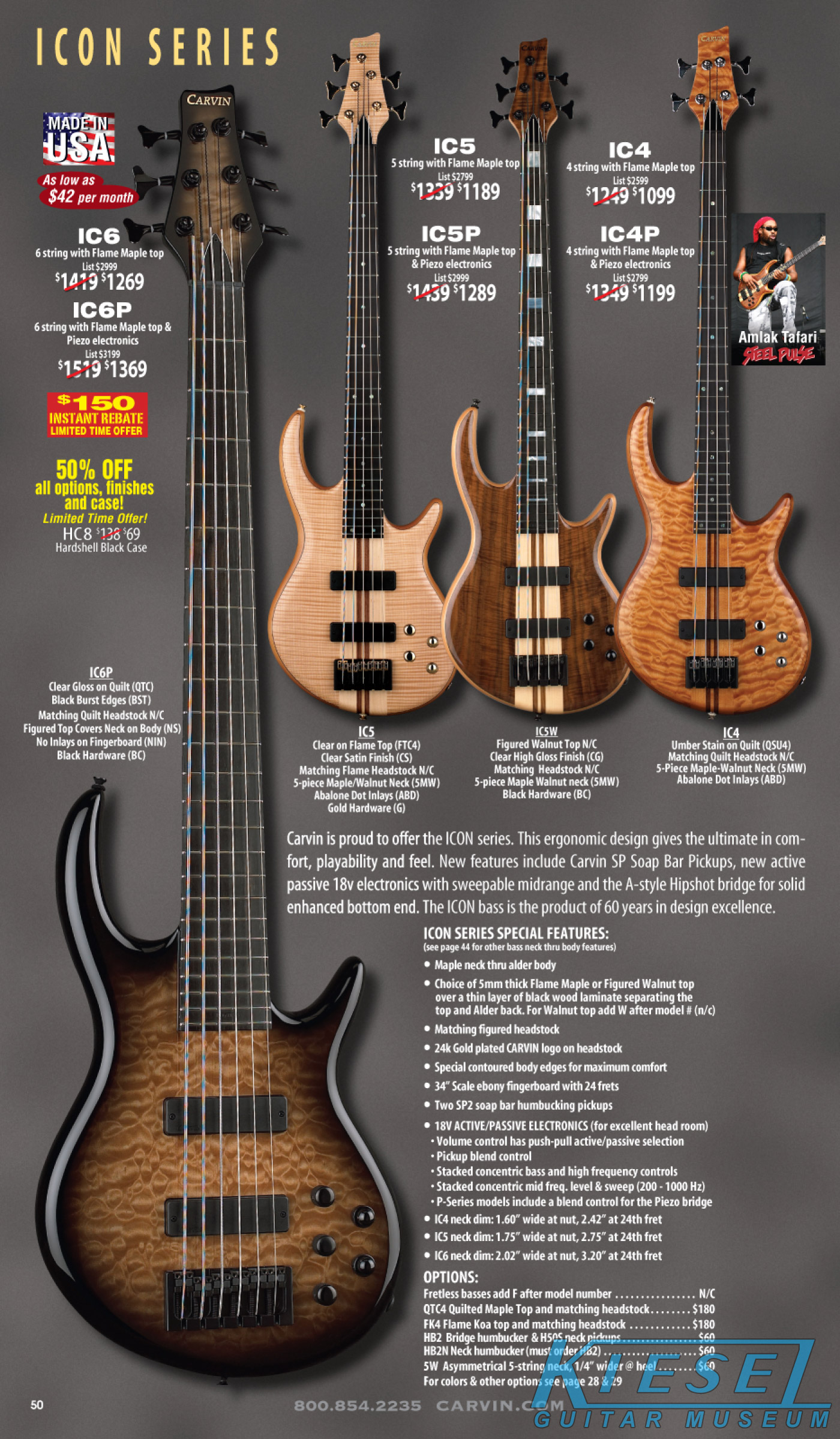 All other Carvin basses - the LB Series, XB Series, Icon Series, Bunny Brunel Series and AC Series - were unchanged for 2009, but all (except the AC models) were equipped with the new electronics and could be ordered with the new J99A or H50A pickups.