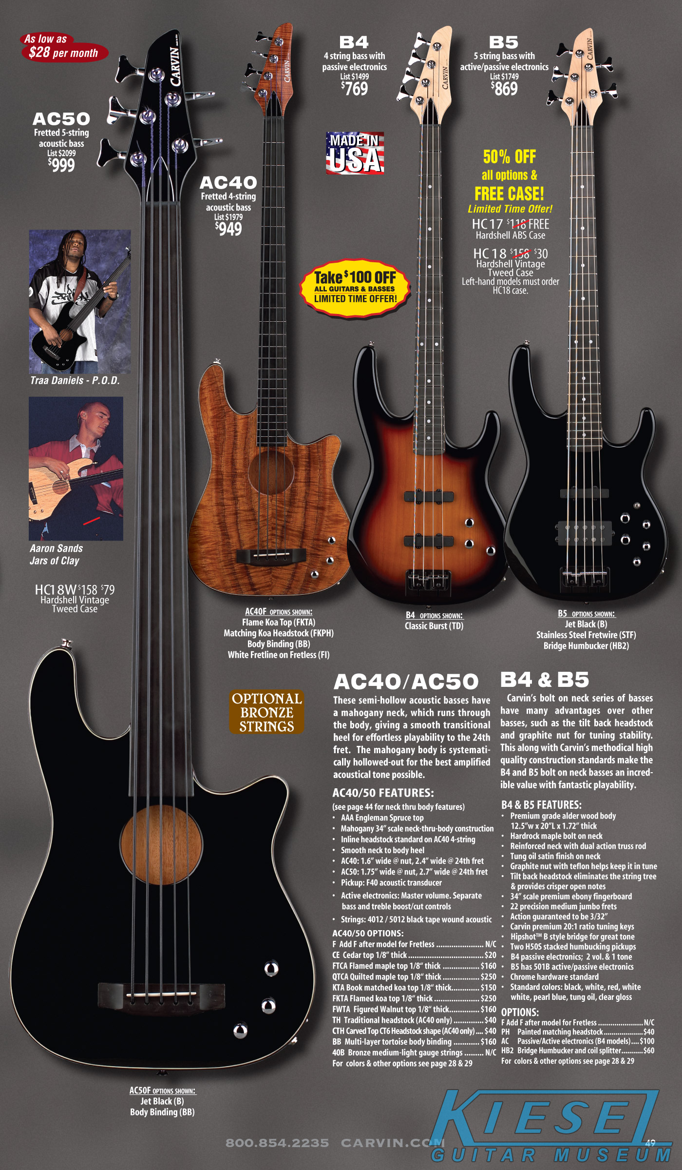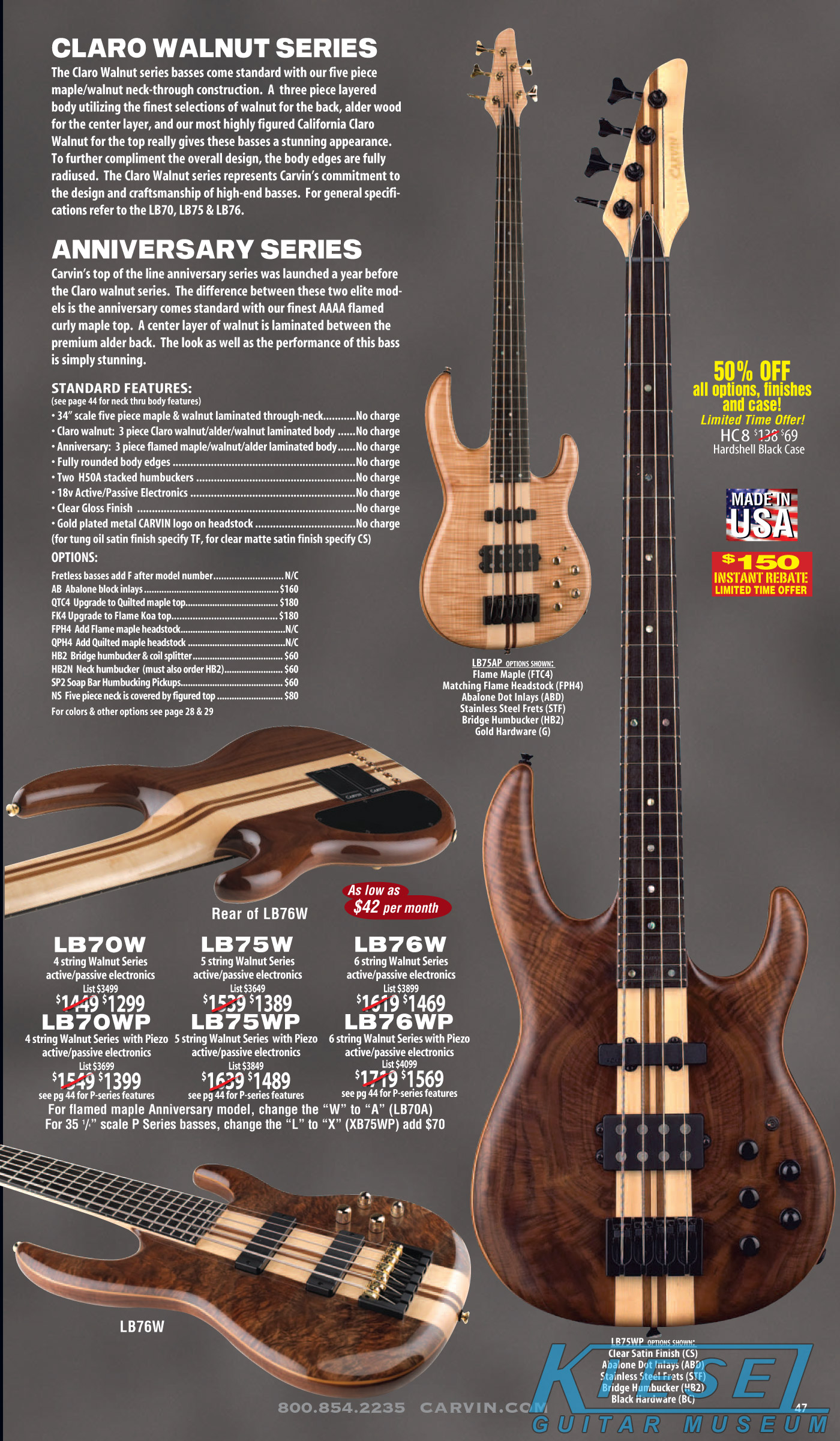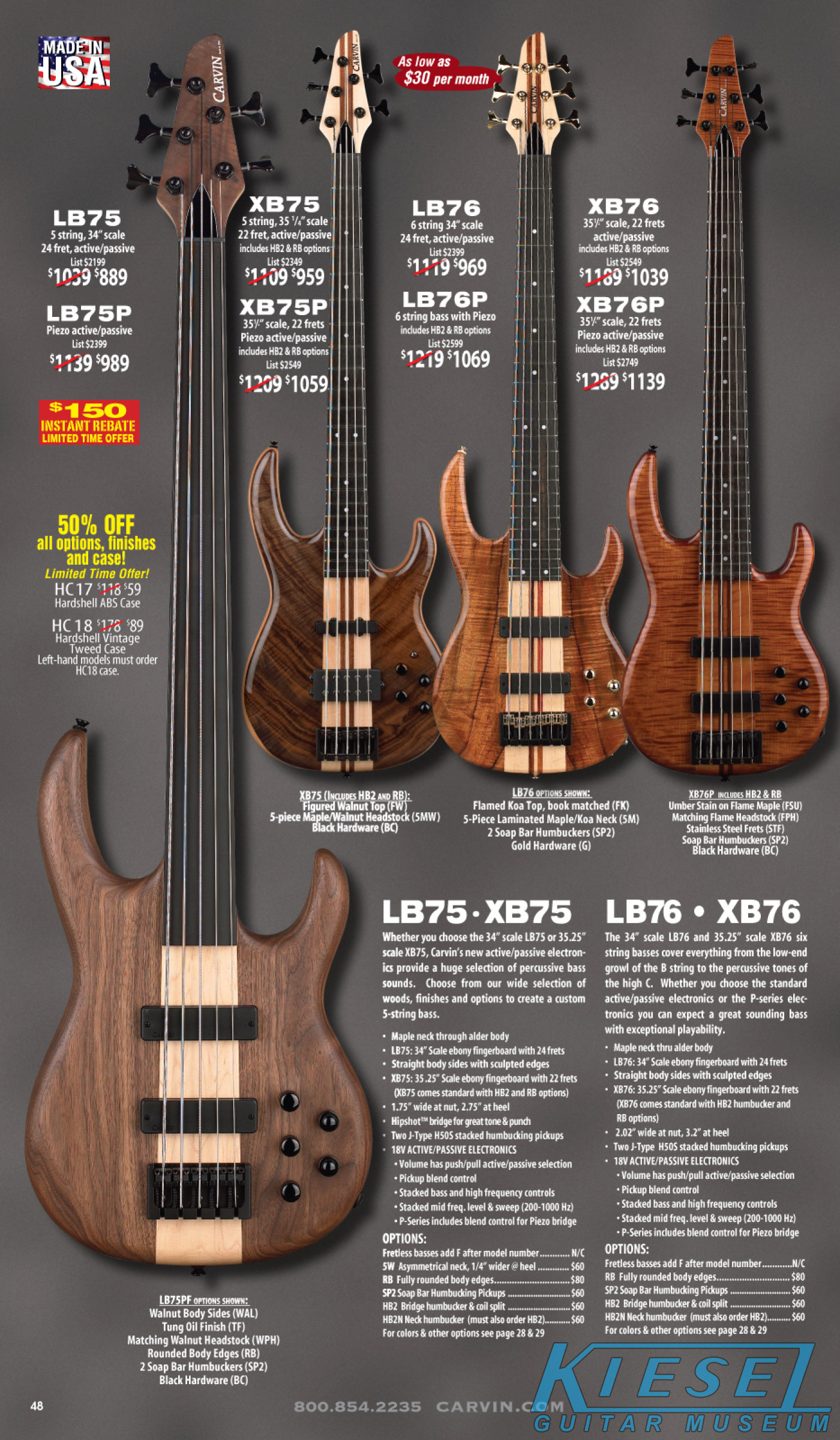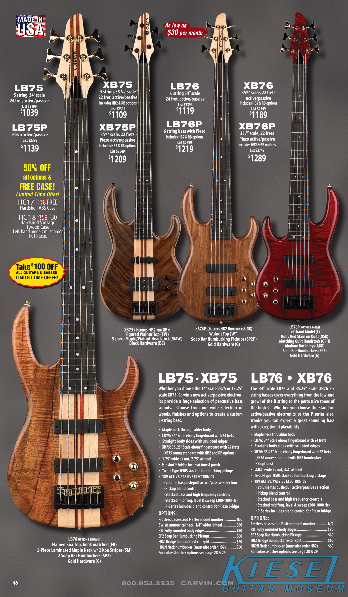 All other Carvin basses - the LB Series, XB Series, Icon Series, Bunny Brunel Series and AC Series - were unchanged for 2009, but all (except the AC models) were equipped with the new electronics and could be ordered with the new J99A or H50A pickups.