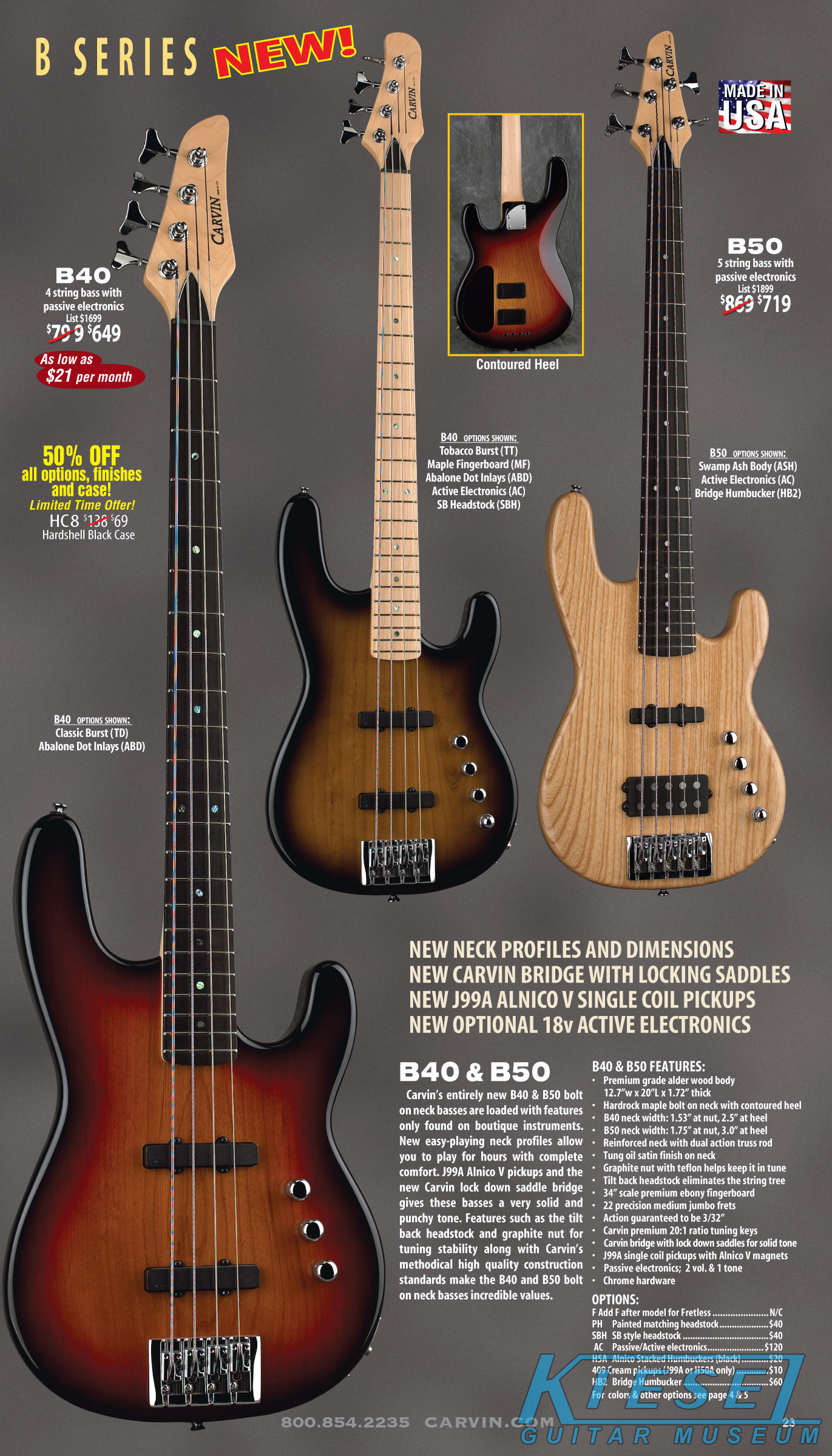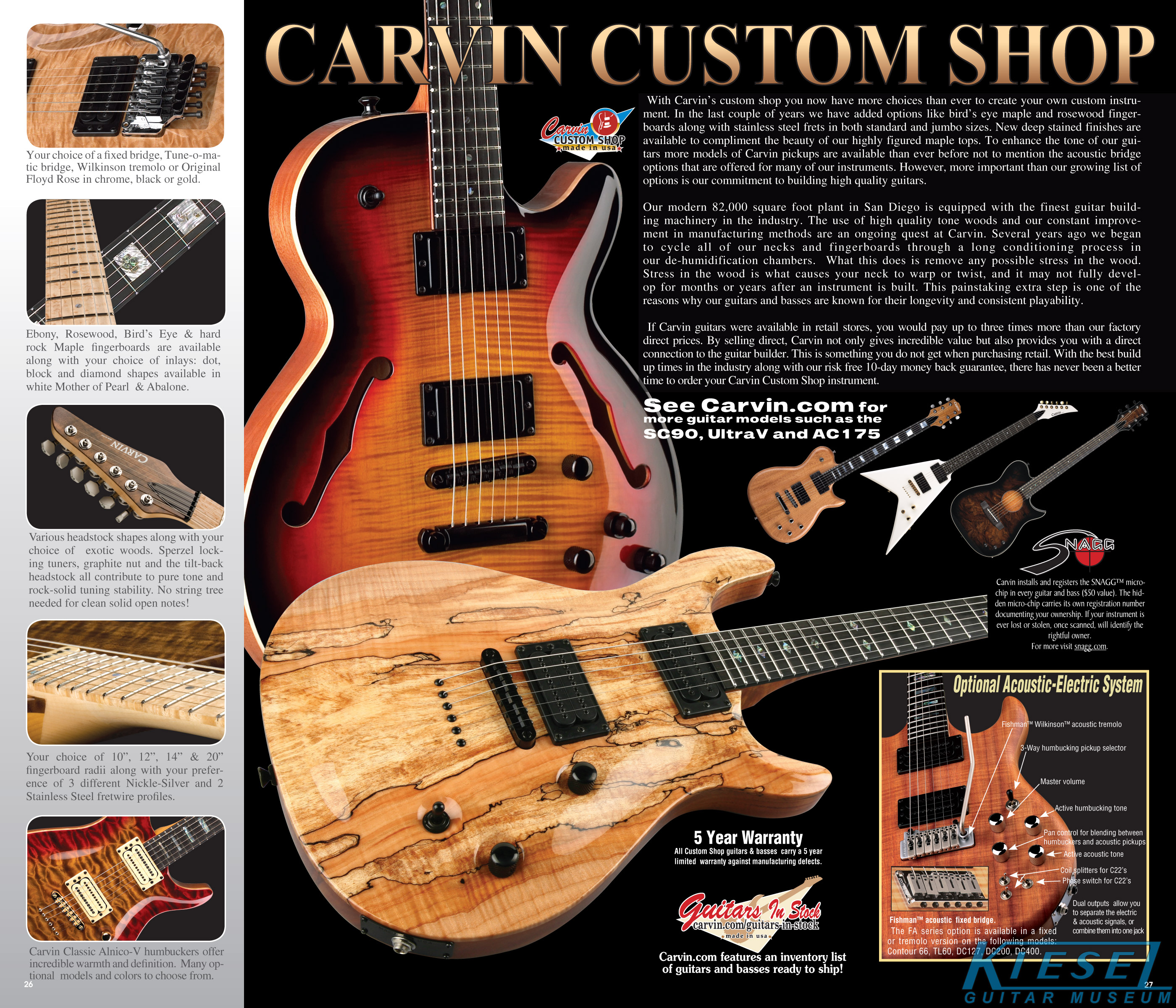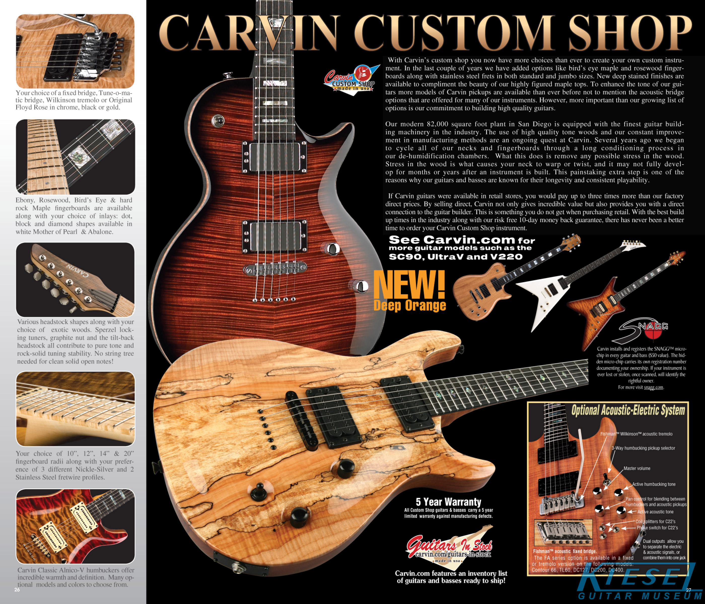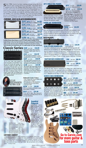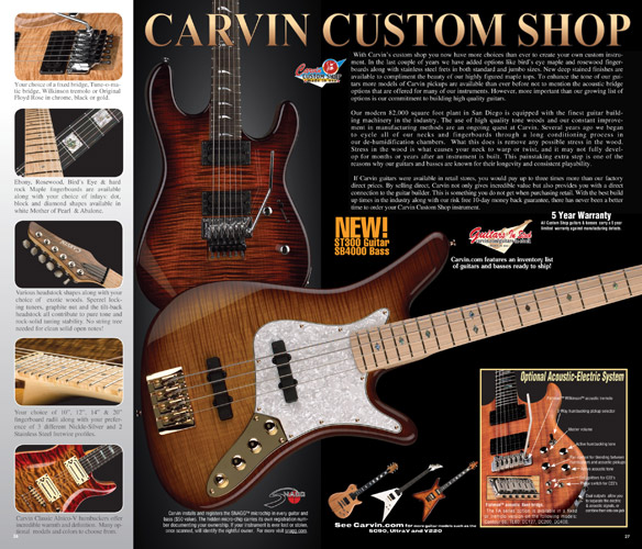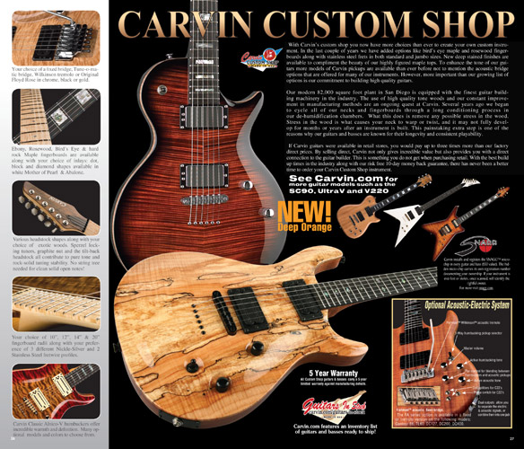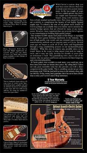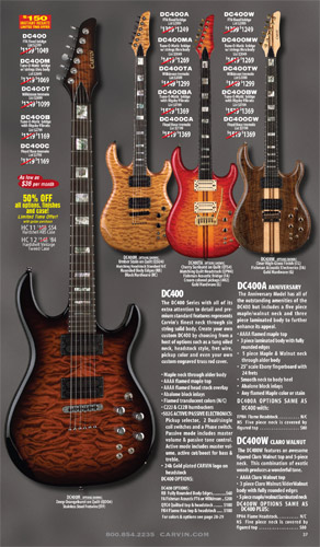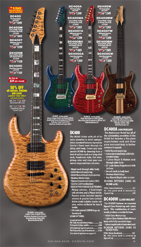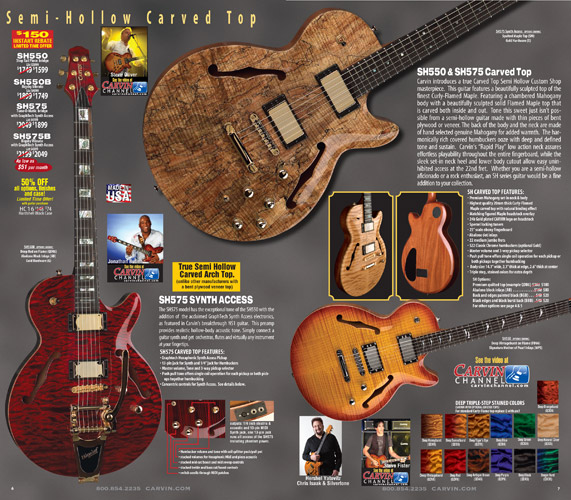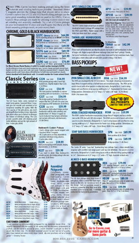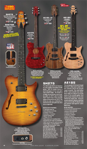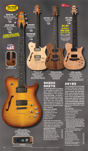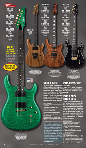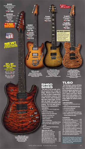 single coil pickups, and a new Carvin bridge with locking string saddles. A new 18V active electronics module was also offered, and both active and passive electronics