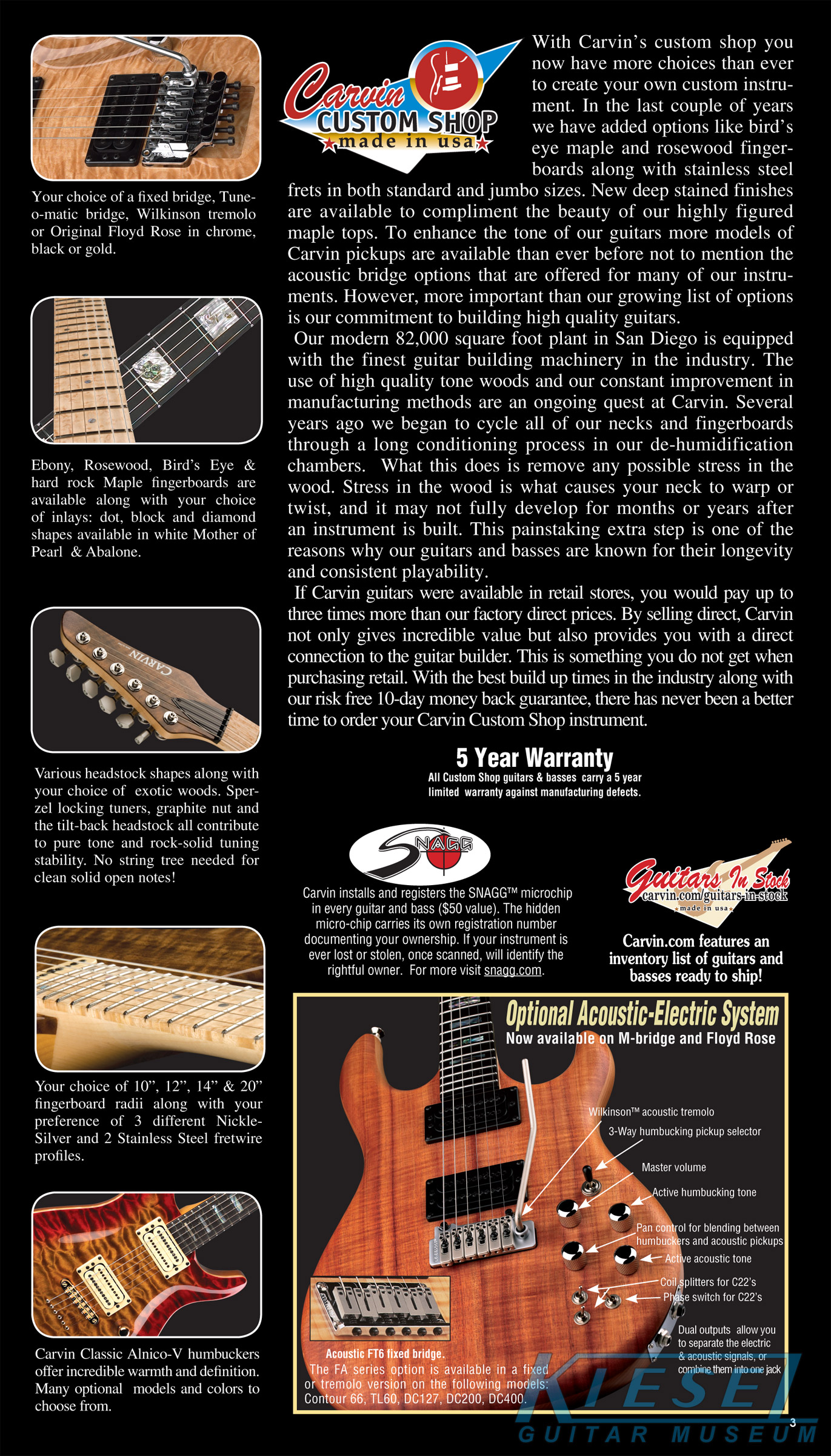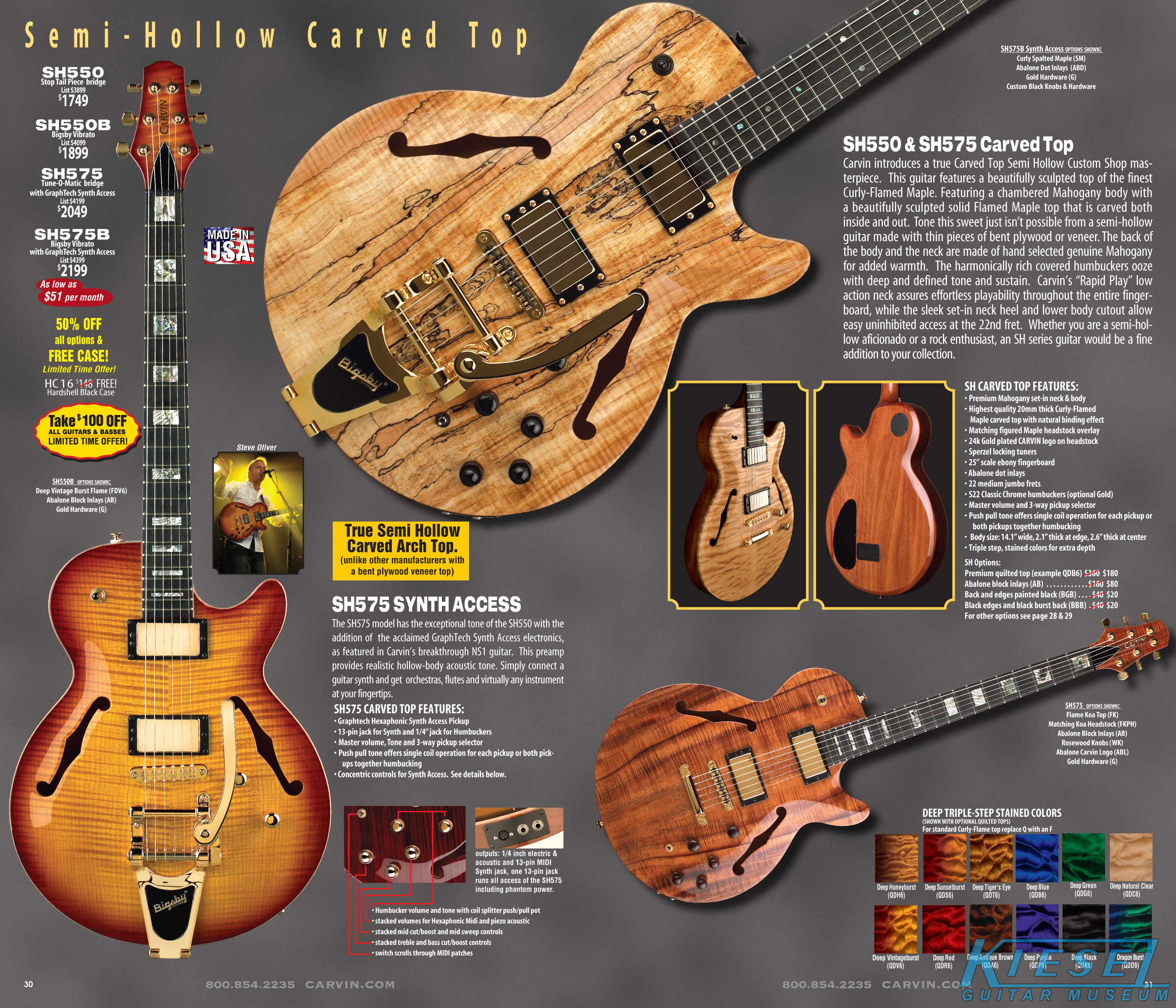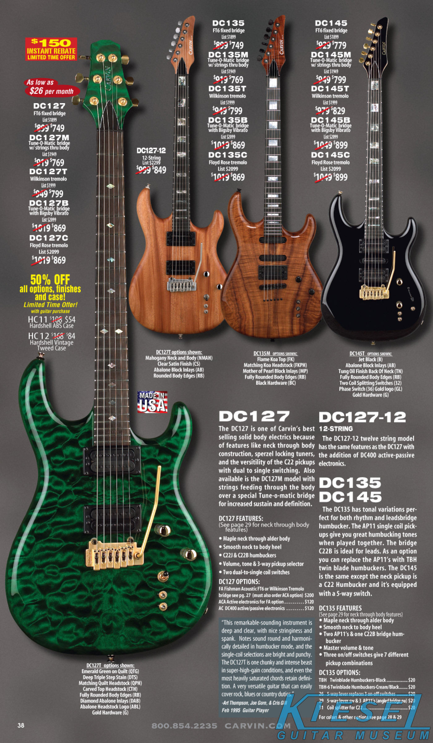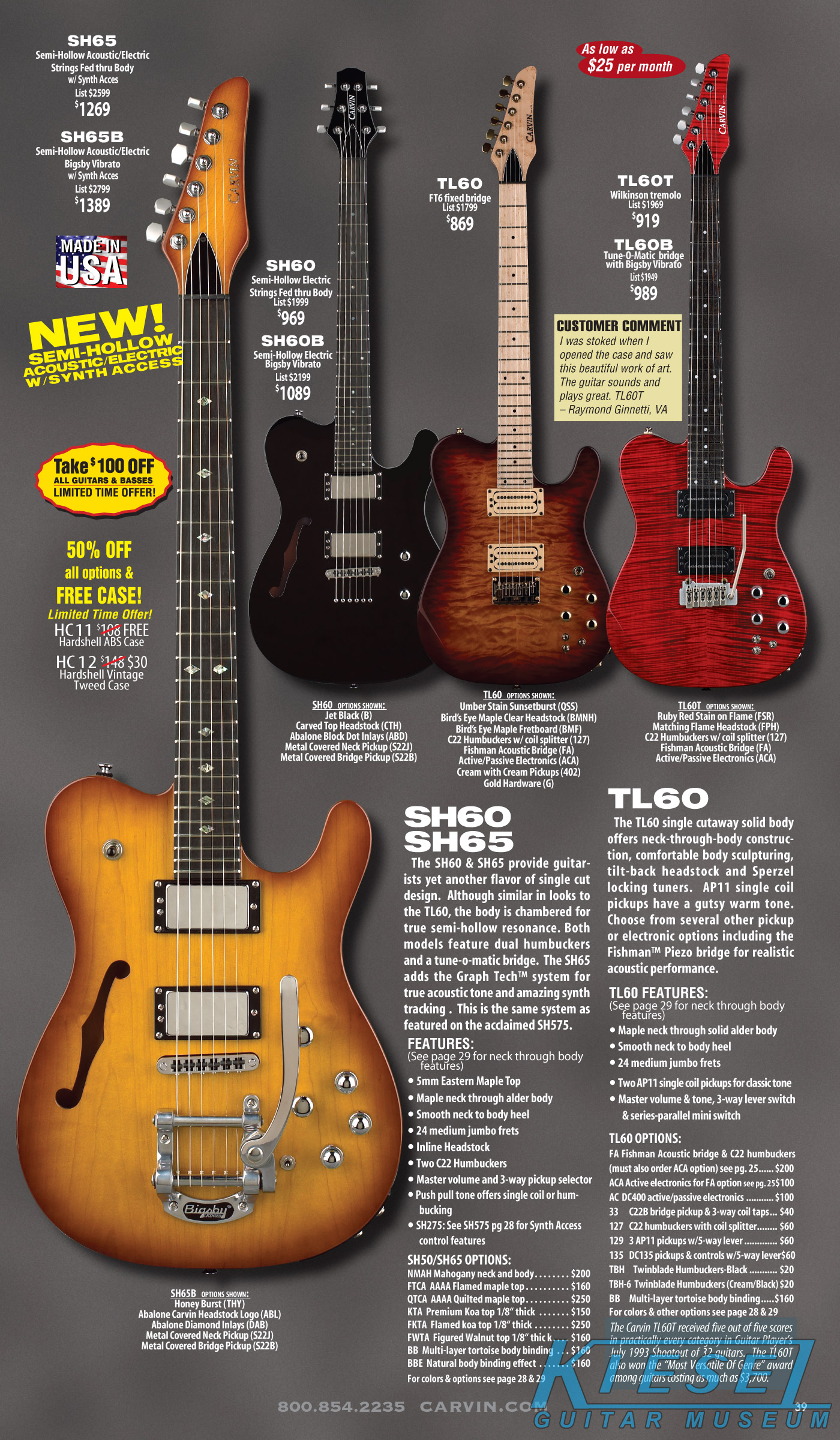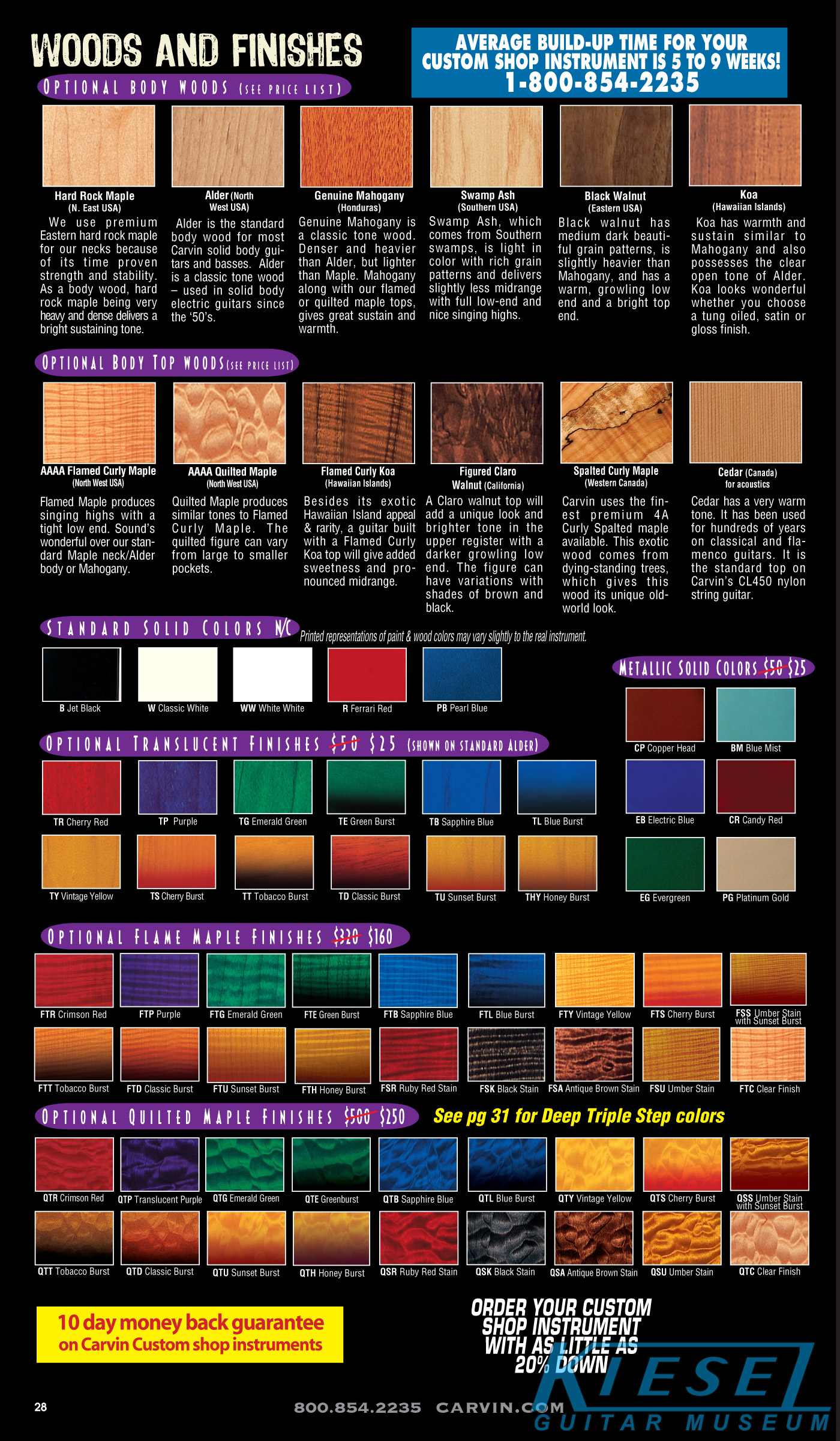 single coil pickups, and a new Carvin bridge with locking string saddles. A new 18V active electronics module was also offered, and both active and passive electronics