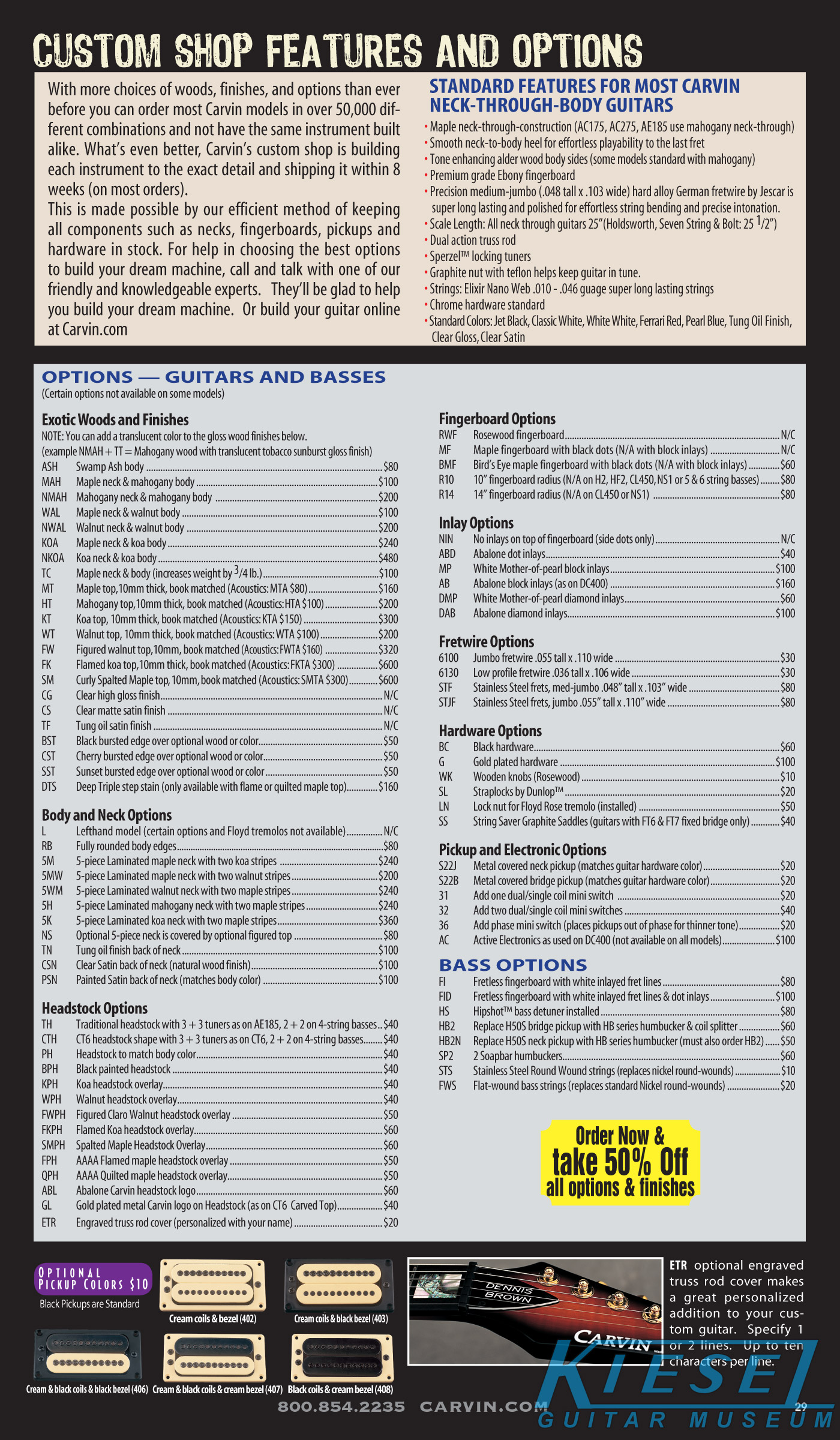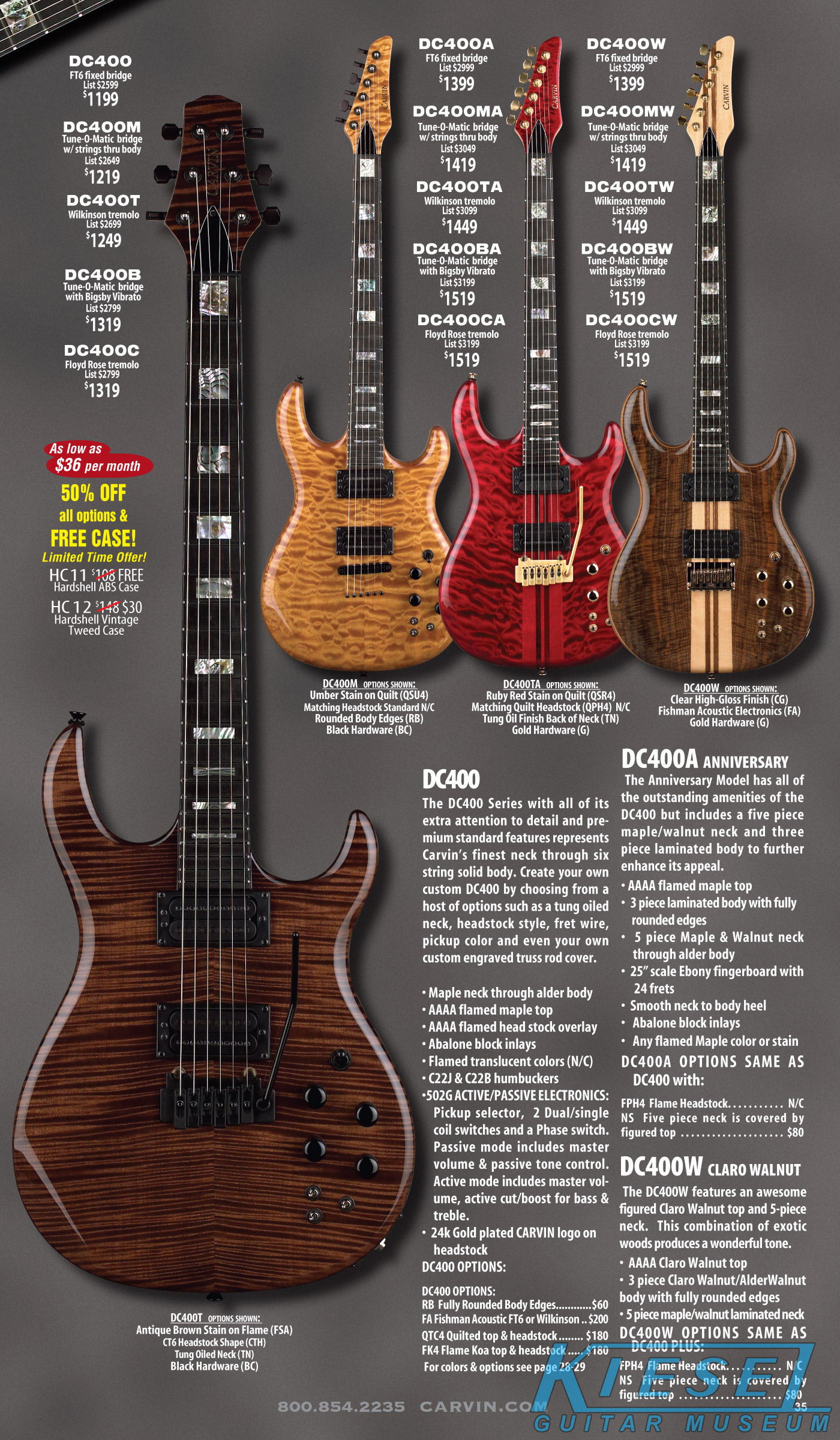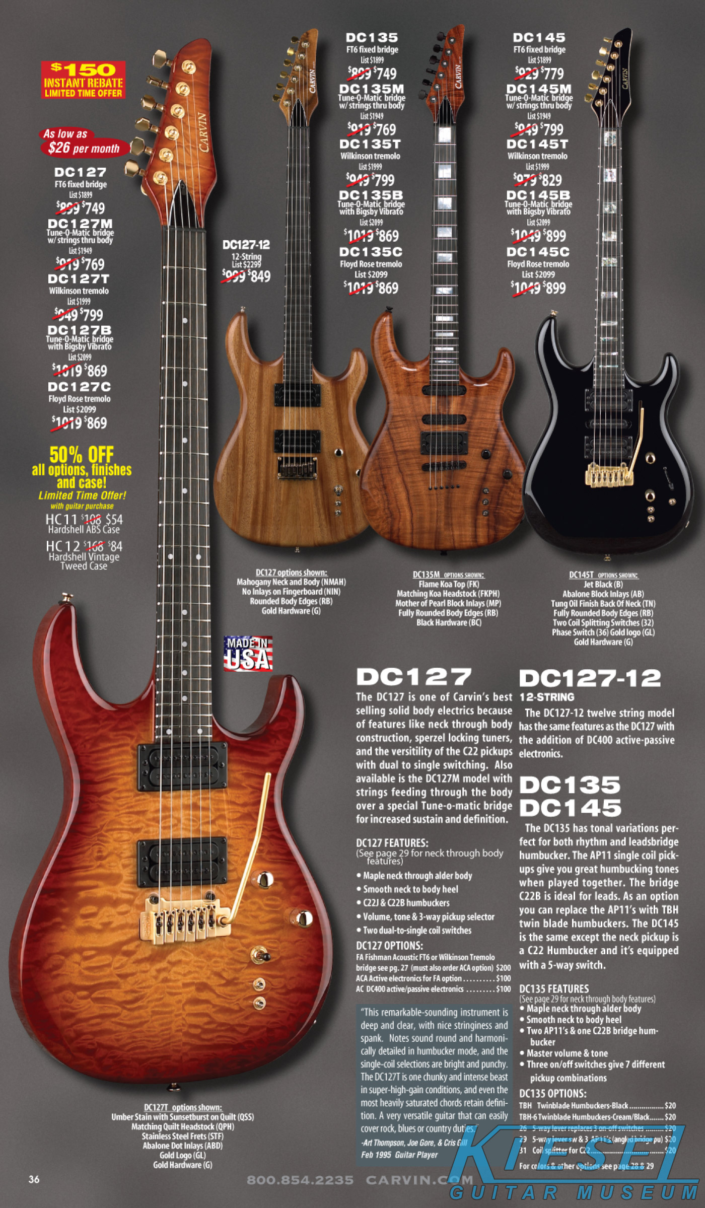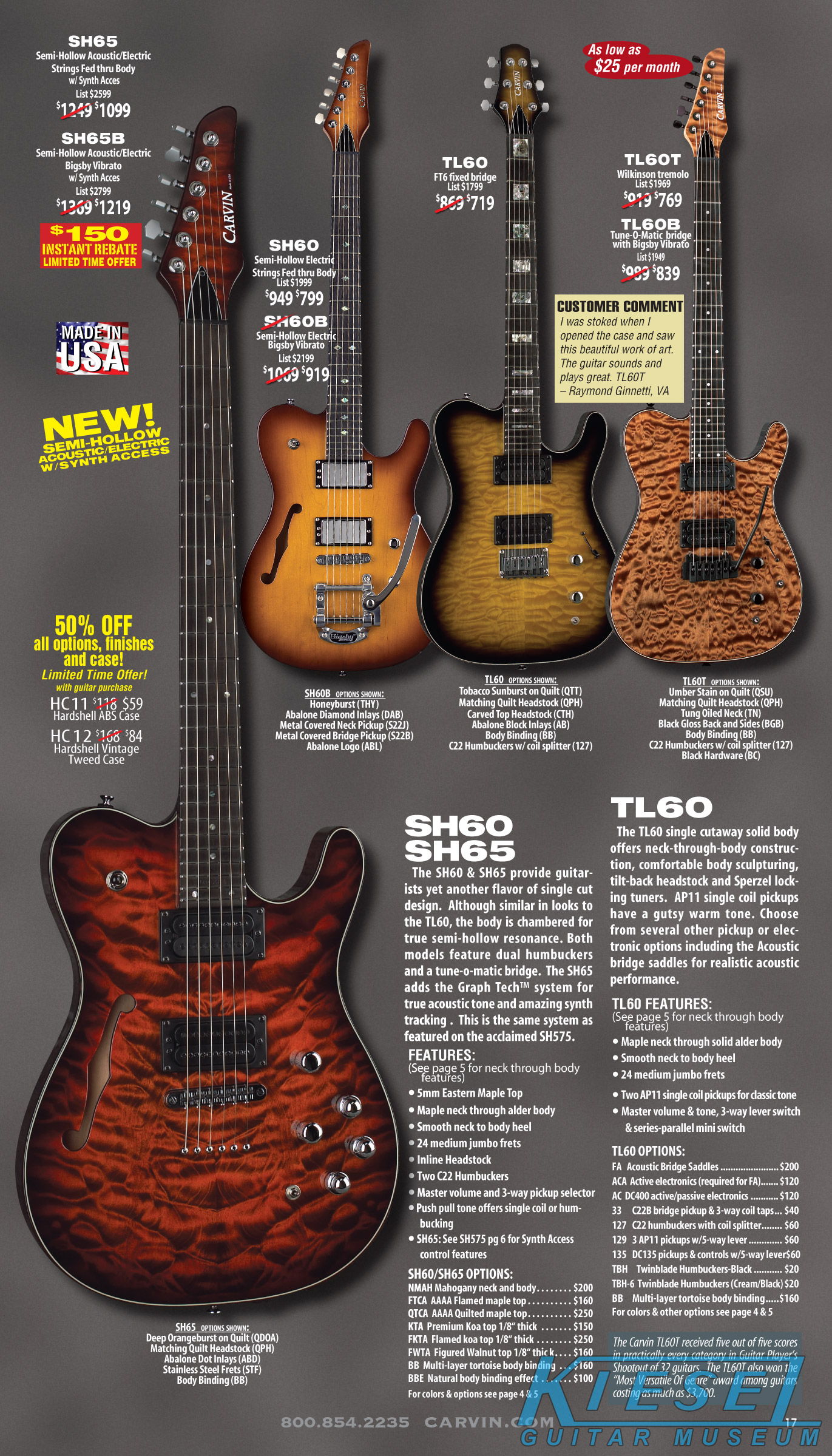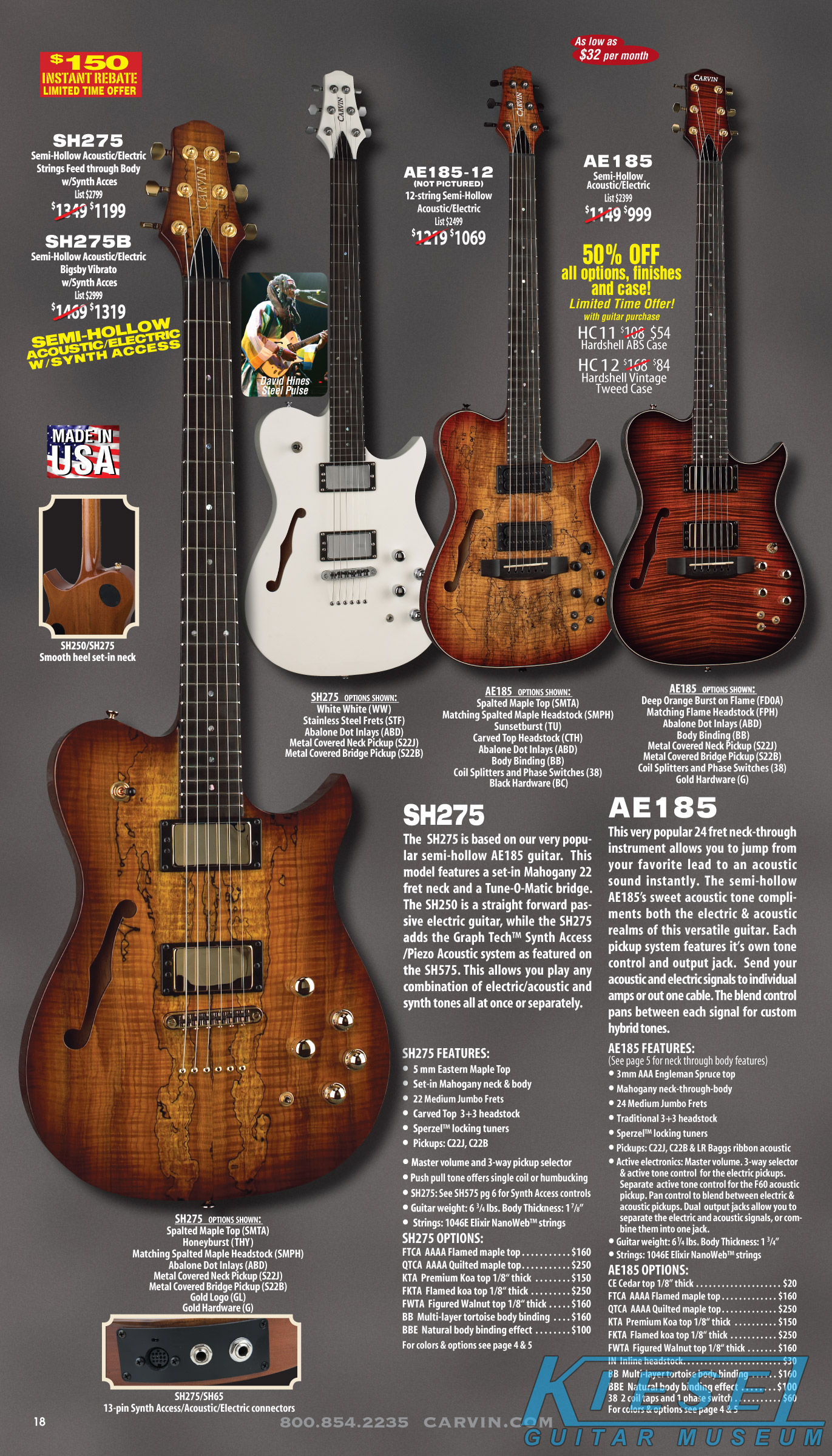 single coil pickups, and a new Carvin bridge with locking string saddles. A new 18V active electronics module was also offered, and both active and passive electronics
