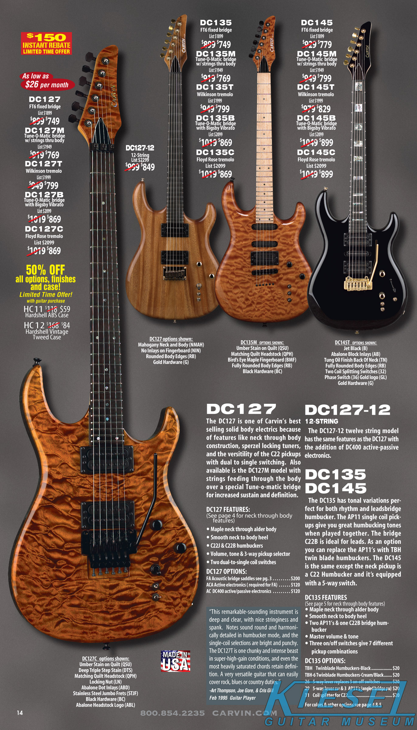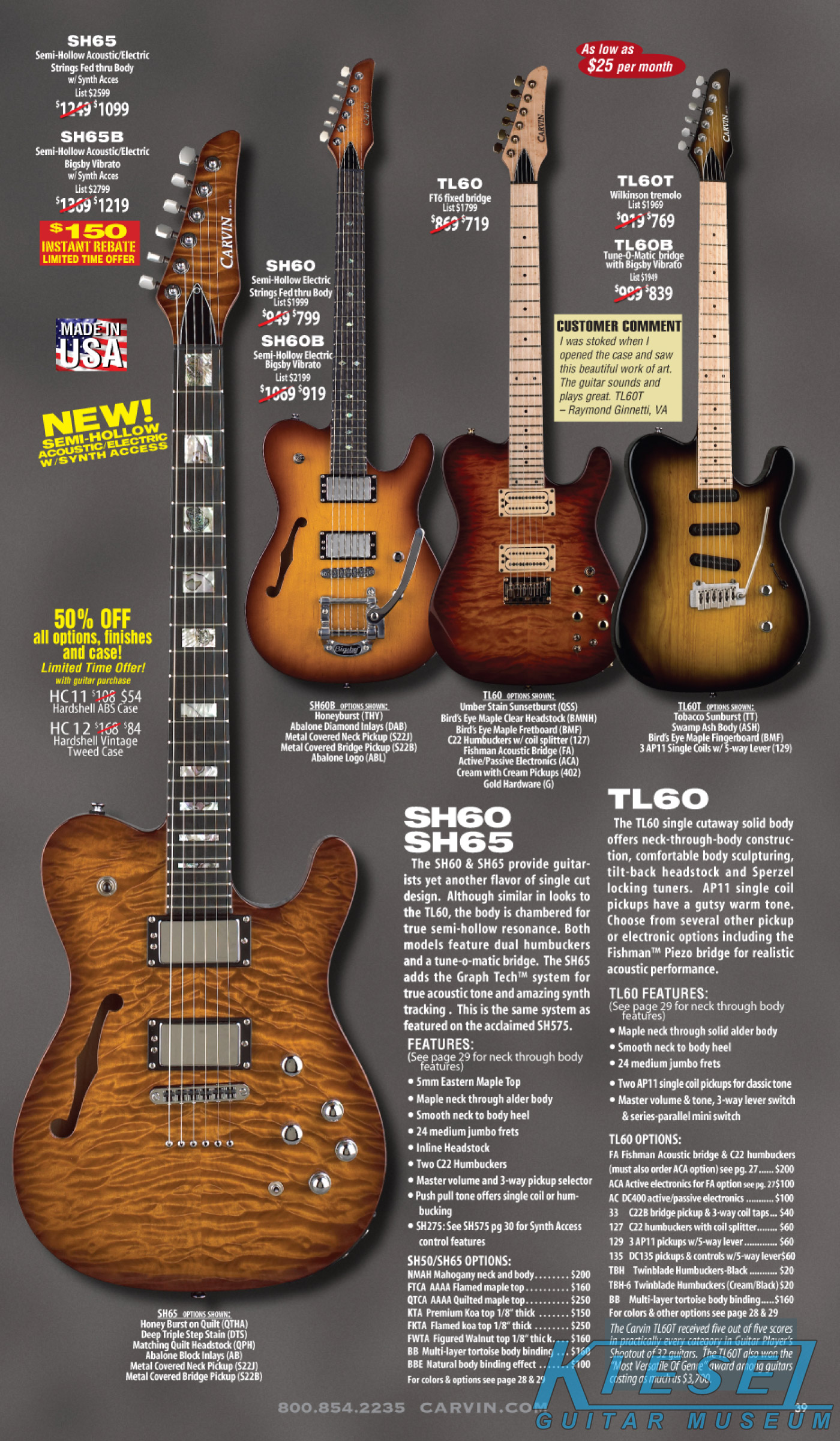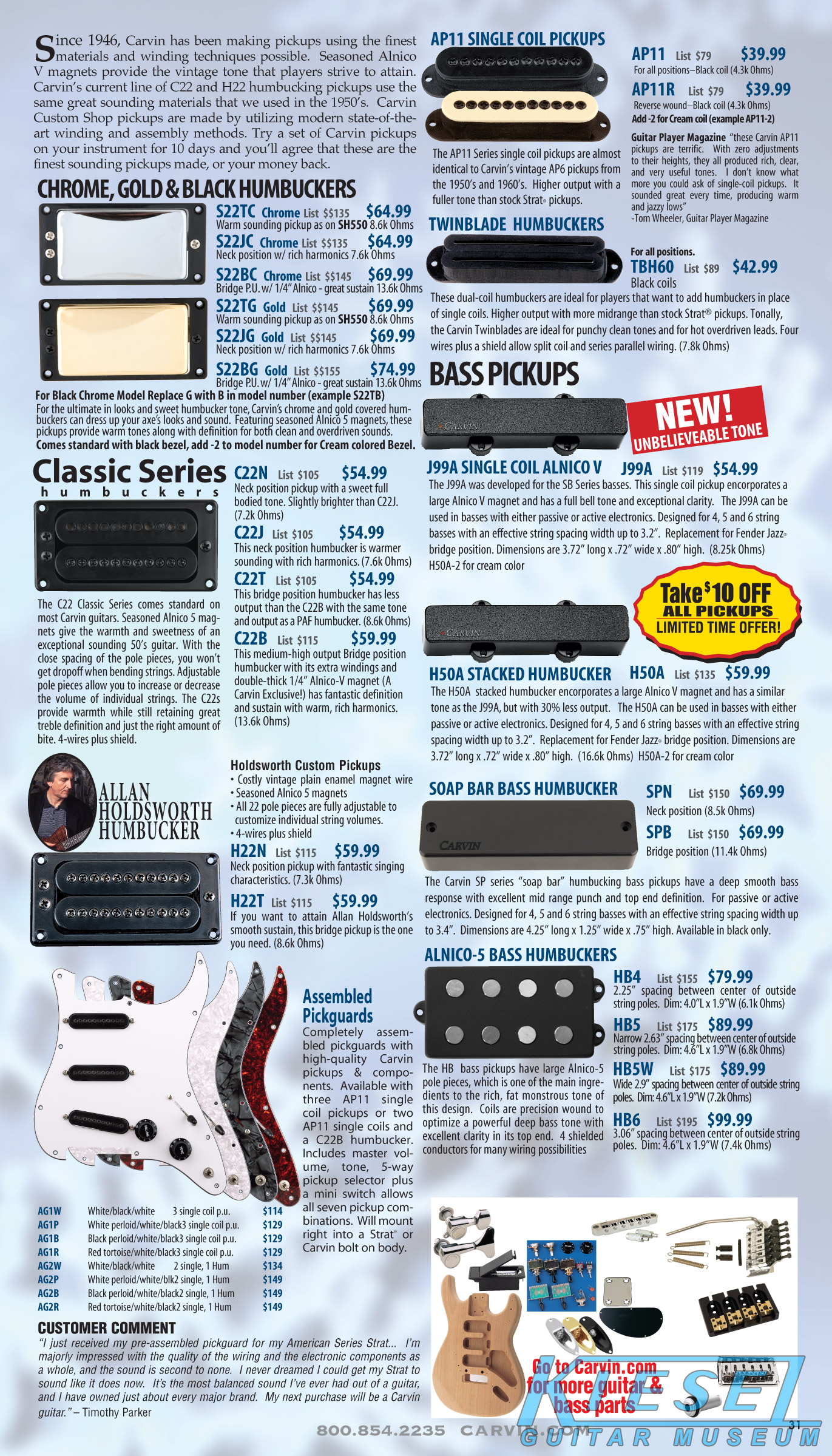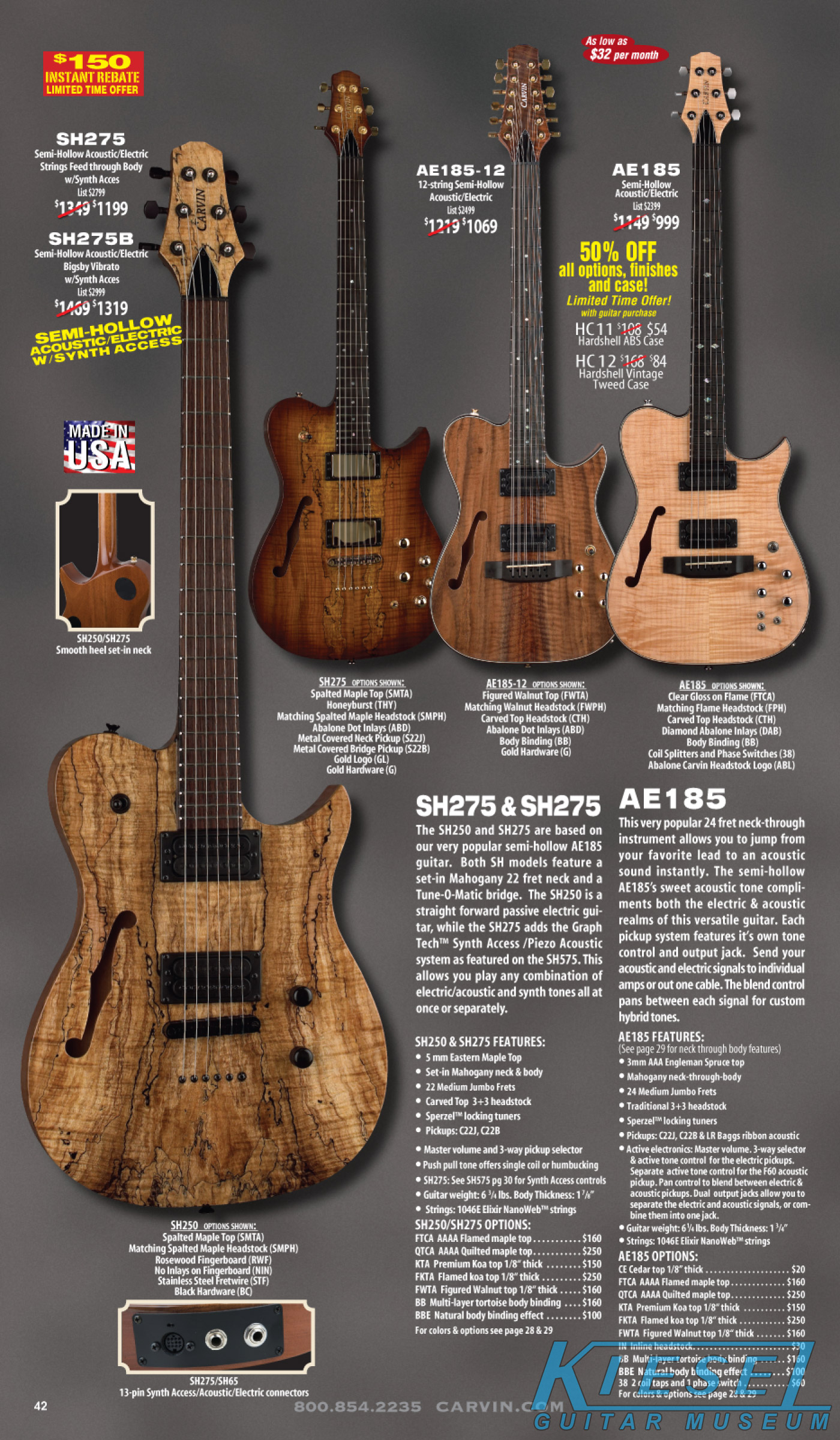 single coil pickups, and a new Carvin bridge with locking string saddles. A new 18V active electronics module was also offered, and both active and passive electronics