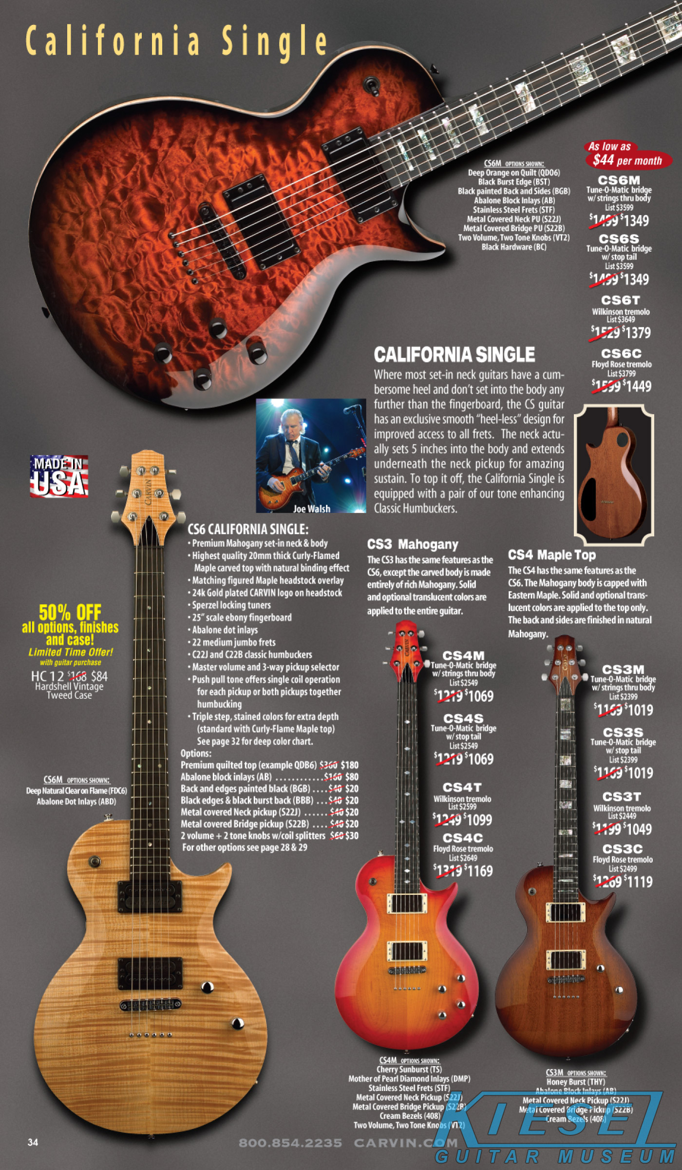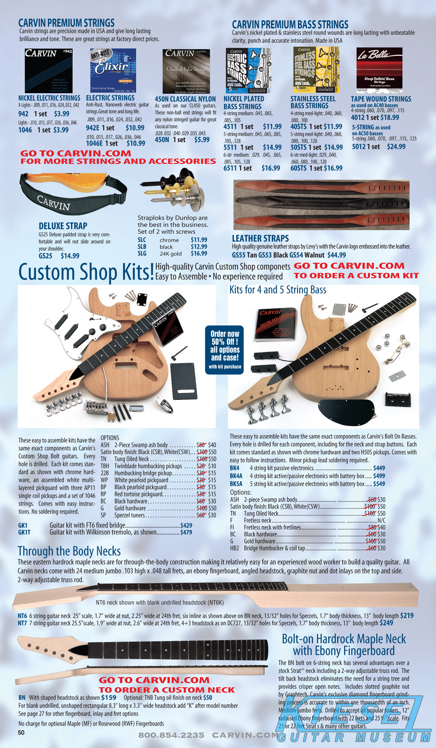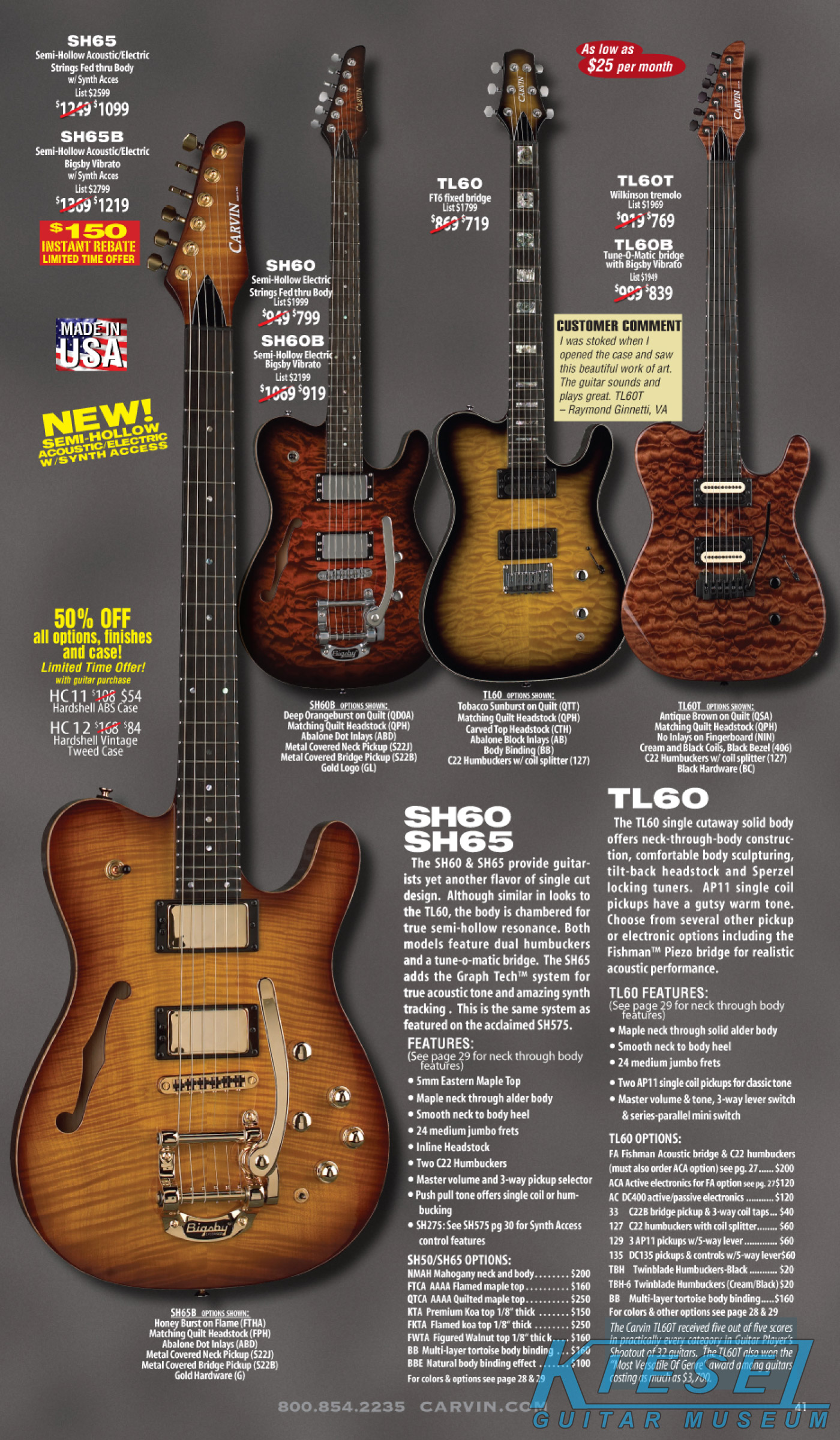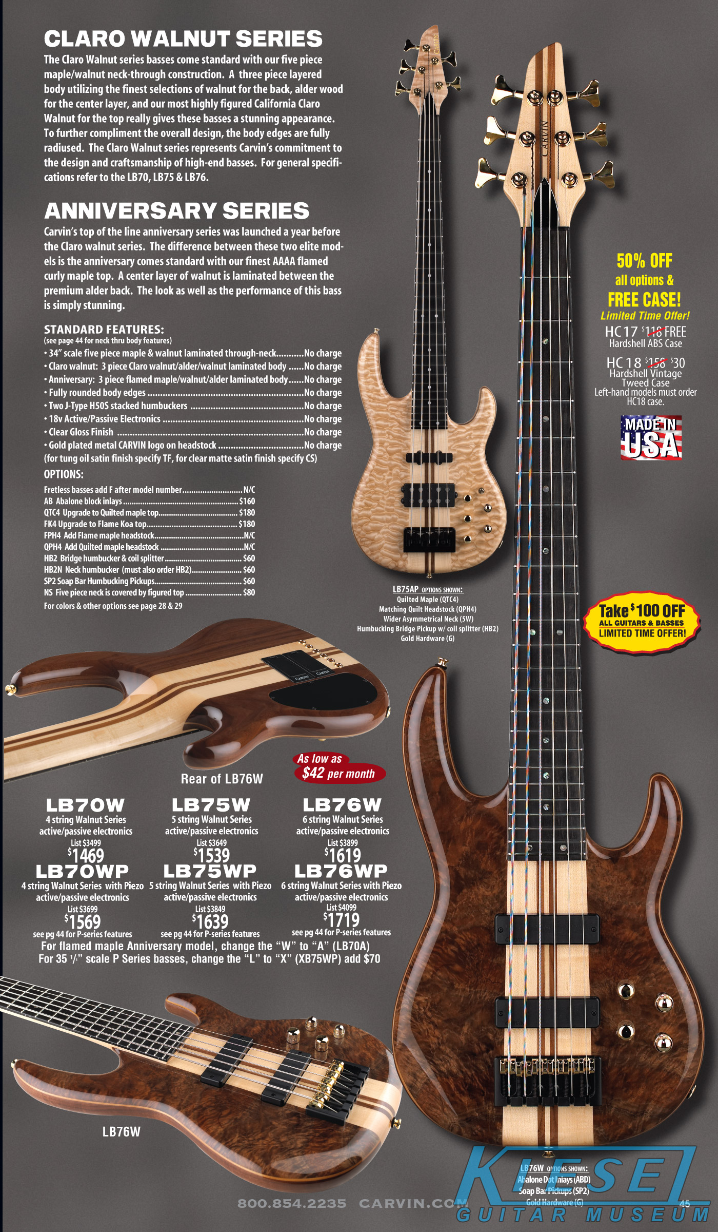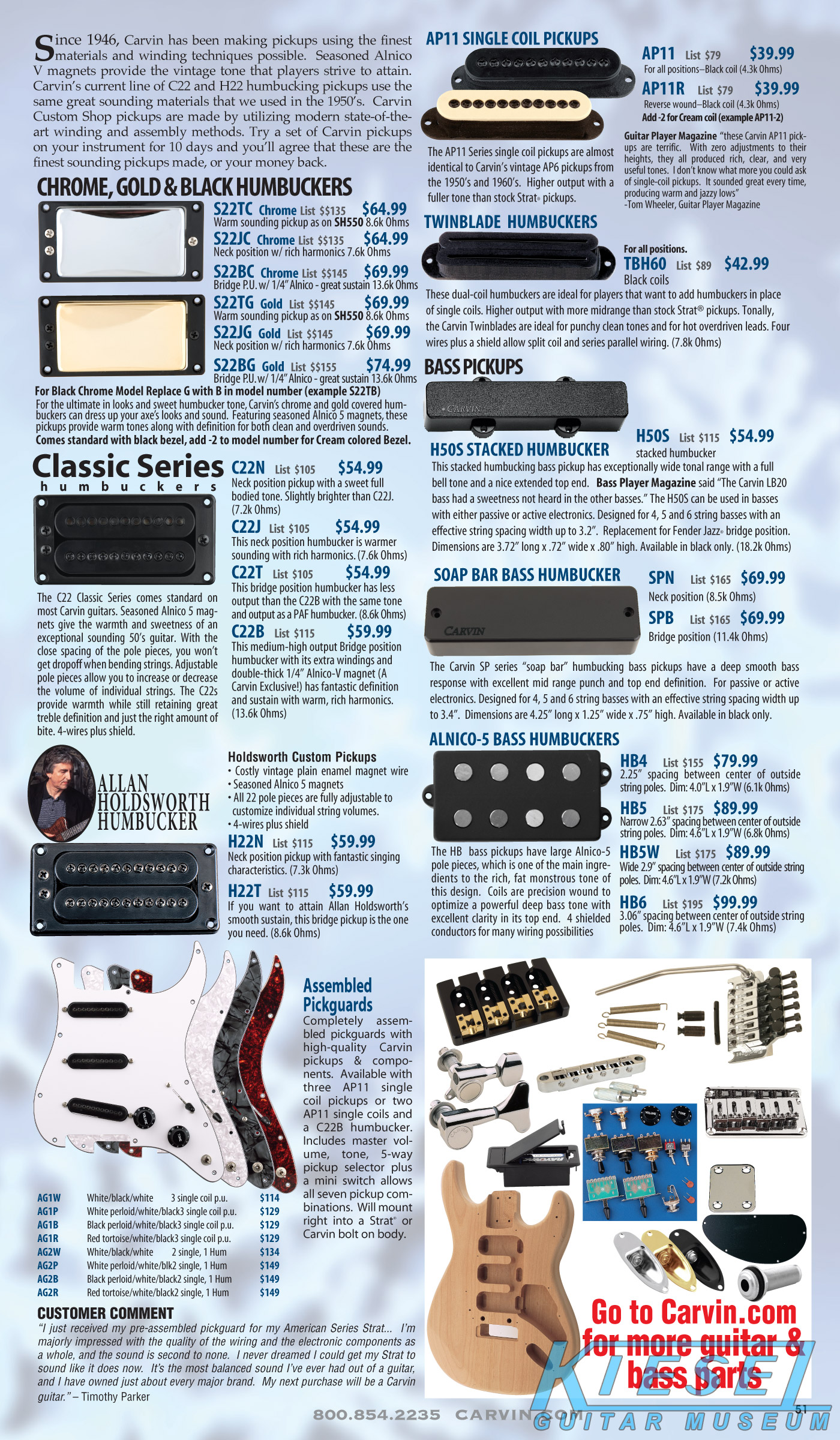 single coil pickups, and a new Carvin bridge with locking string saddles. A new 18V active electronics module was also offered, and both active and passive electronics