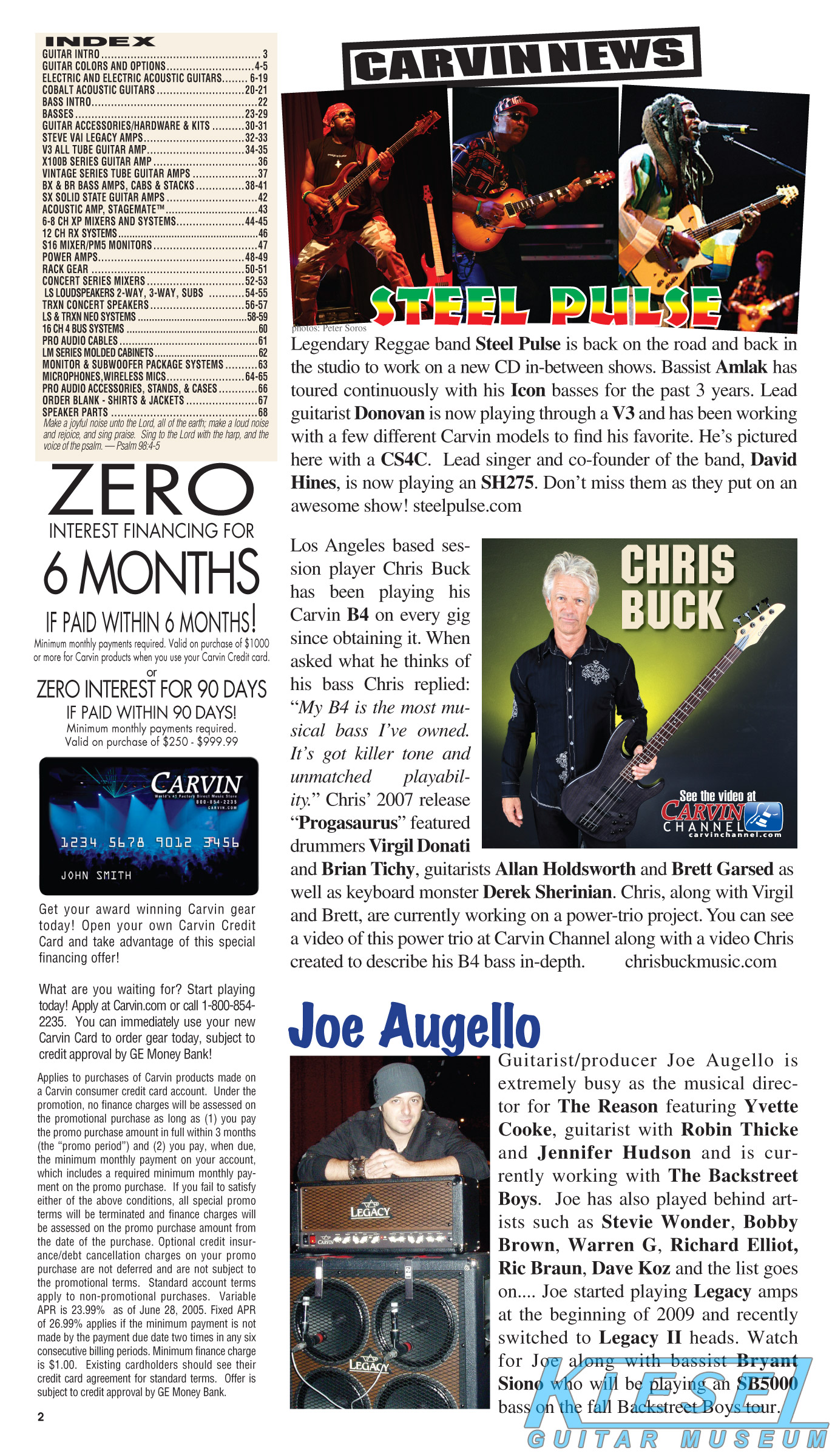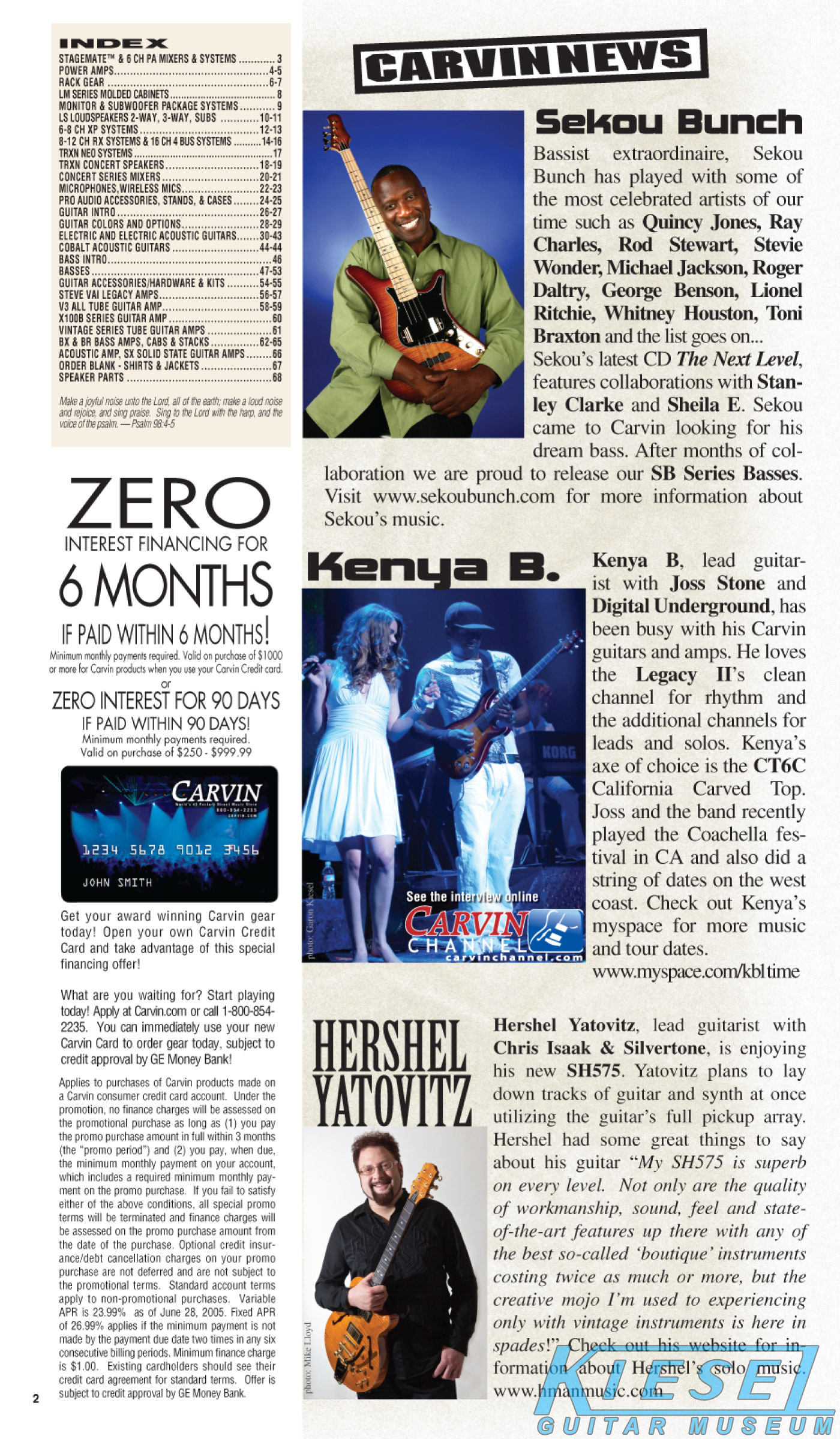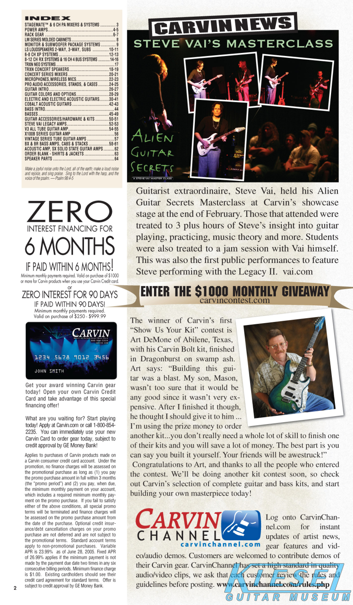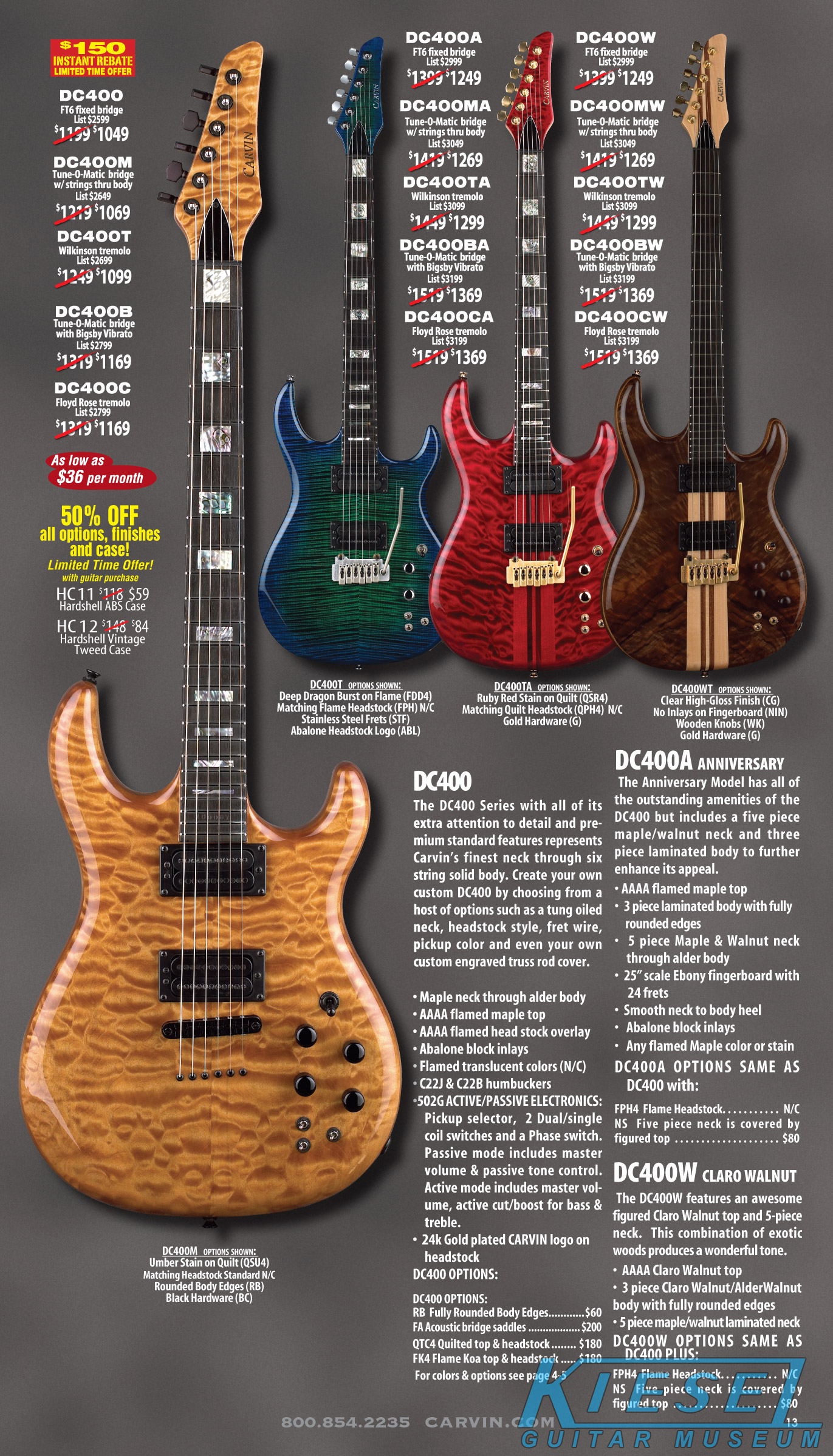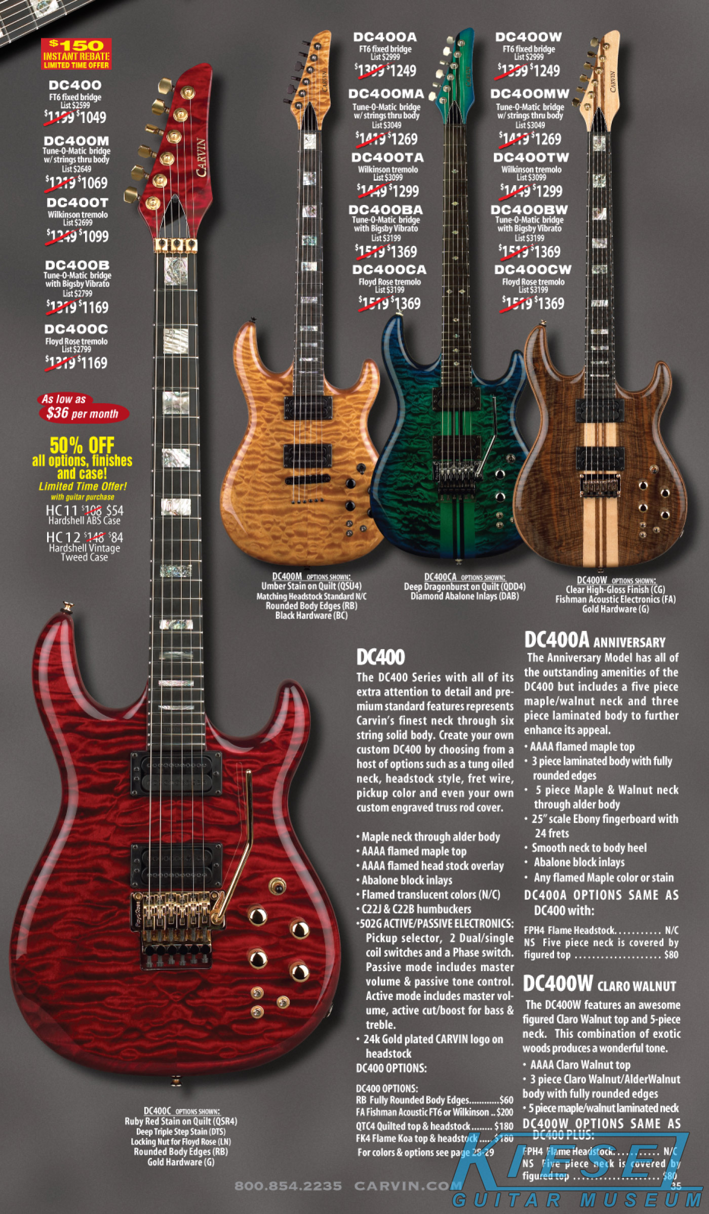 single coil pickups, and a new Carvin bridge with locking string saddles. A new 18V active electronics module was also offered, and both active and passive electronics