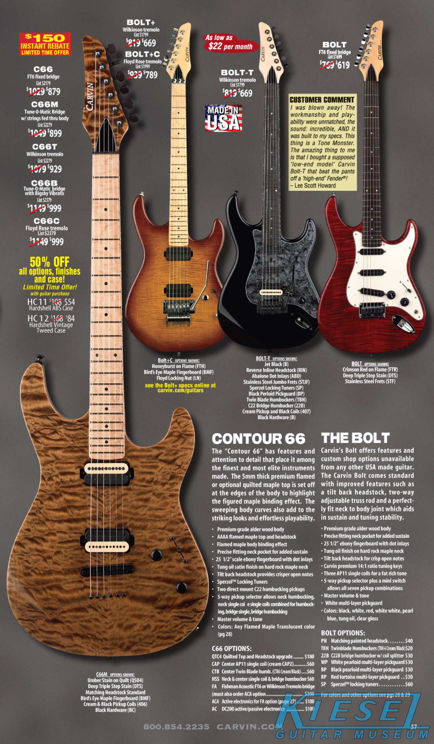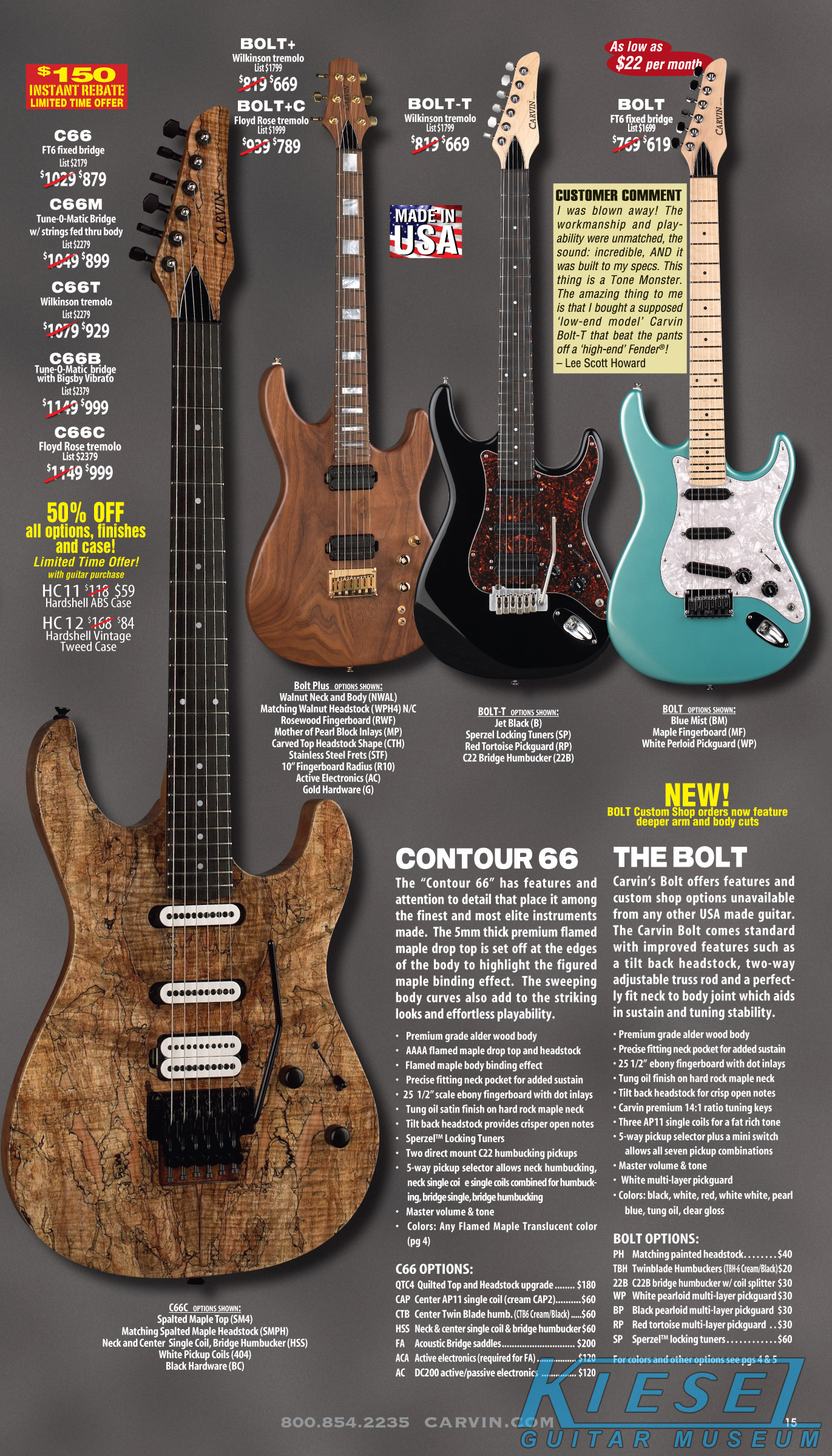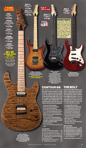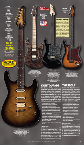 Like 2008, Carvin's bolt-on neck guitars, the Bolt, BoltPlus and C66 were unchanged from the previous year, and like 2008, due to space limitations in the catalog, the BoltPlus was not shown in any of the 2009 catalogs. This would be the case for most catalog years for the BoltPlus.