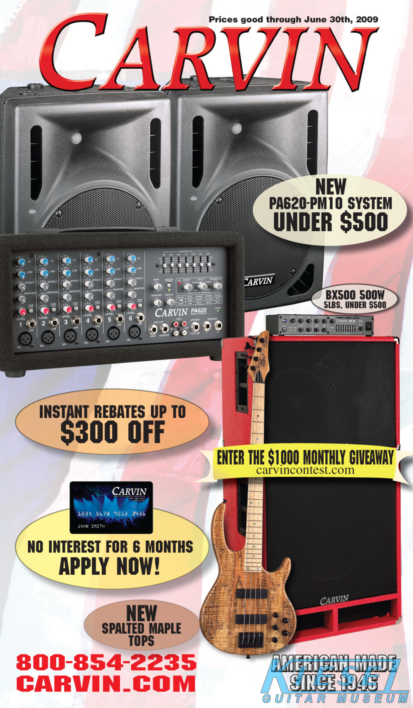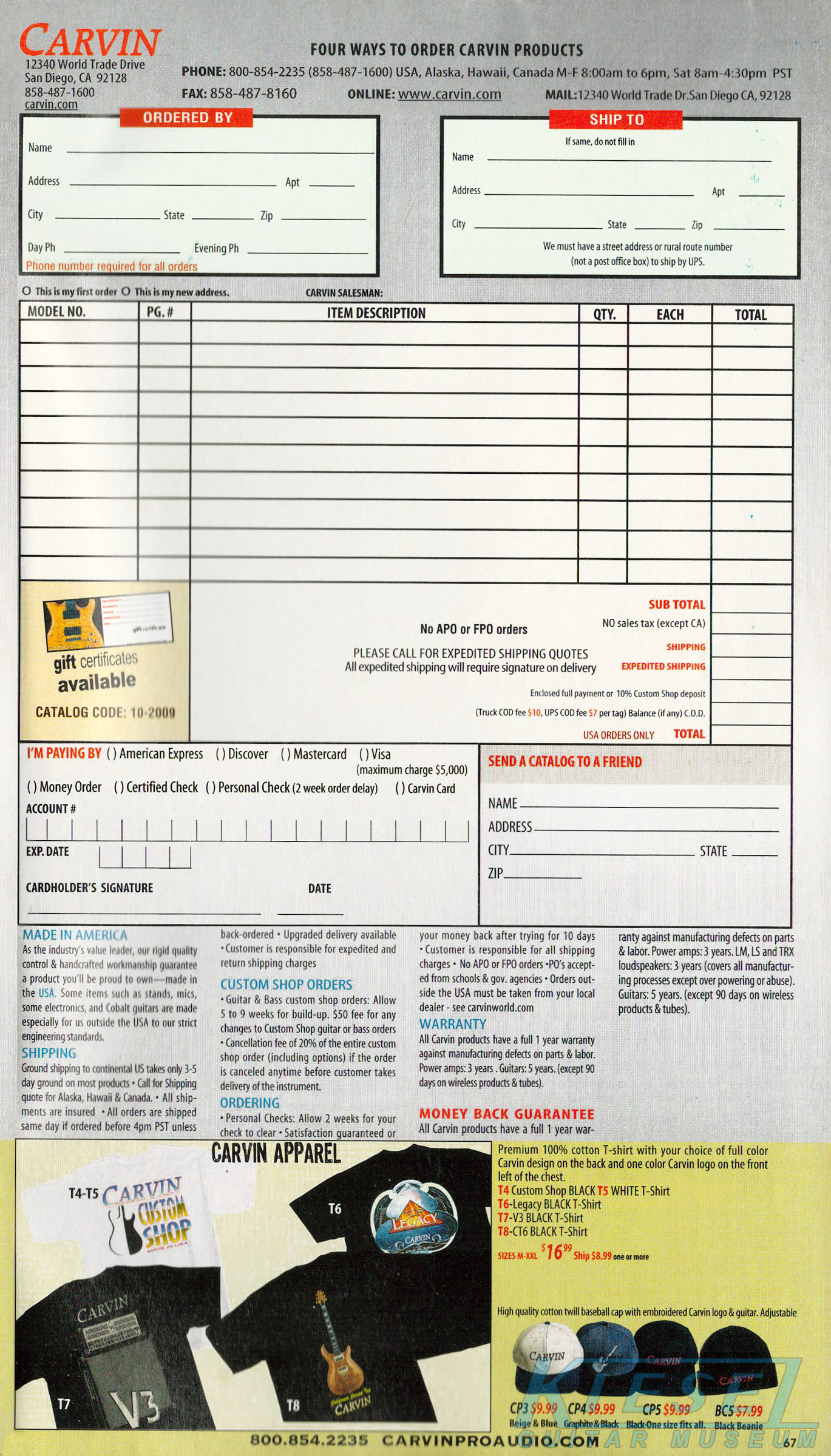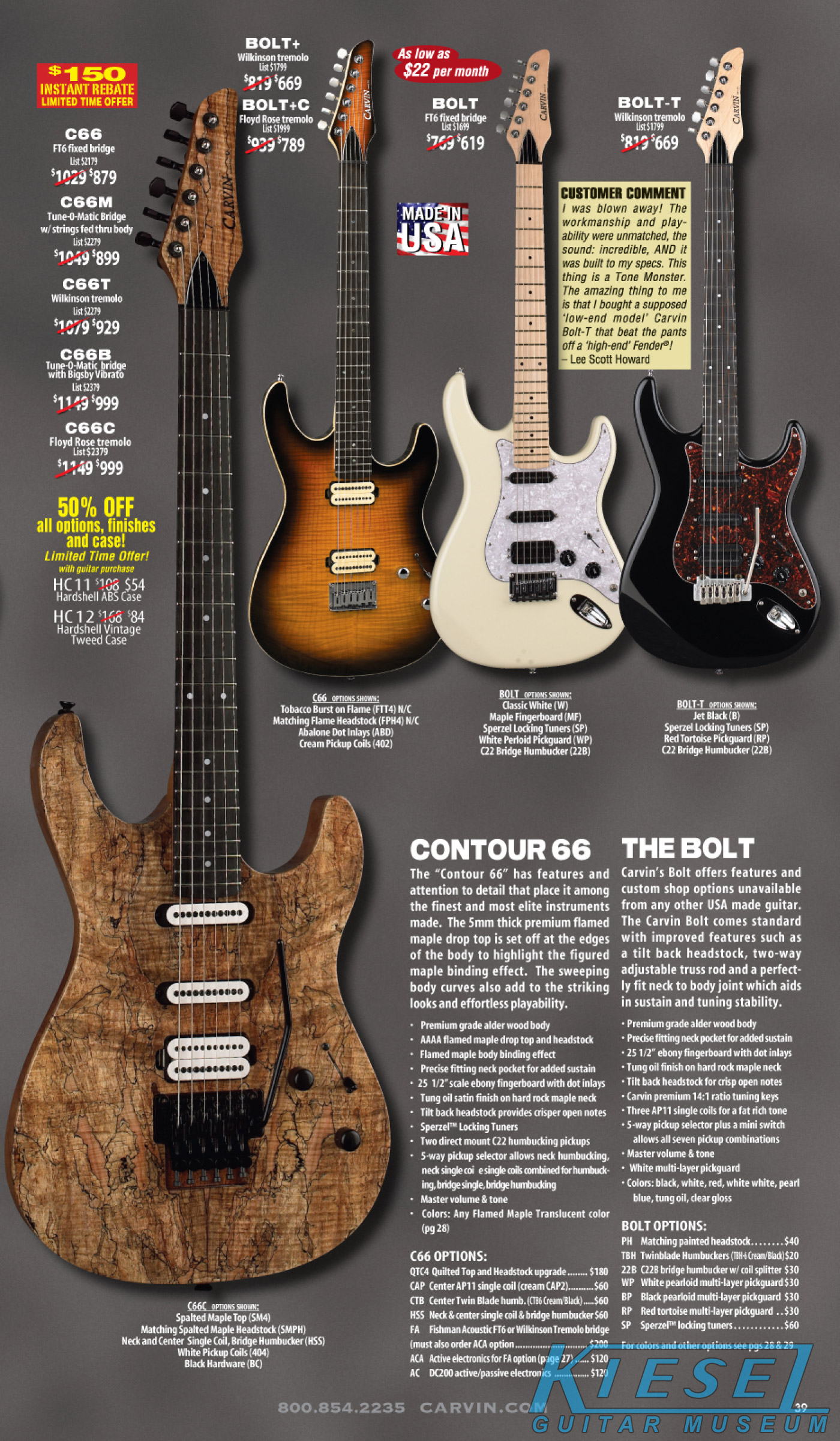 Like 2008, Carvin's bolt-on neck guitars, the Bolt, BoltPlus and C66 were unchanged from the previous year, and like 2008, due to space limitations in the catalog, the BoltPlus was not shown in any of the 2009 catalogs. This would be the case for most catalog years for the BoltPlus.