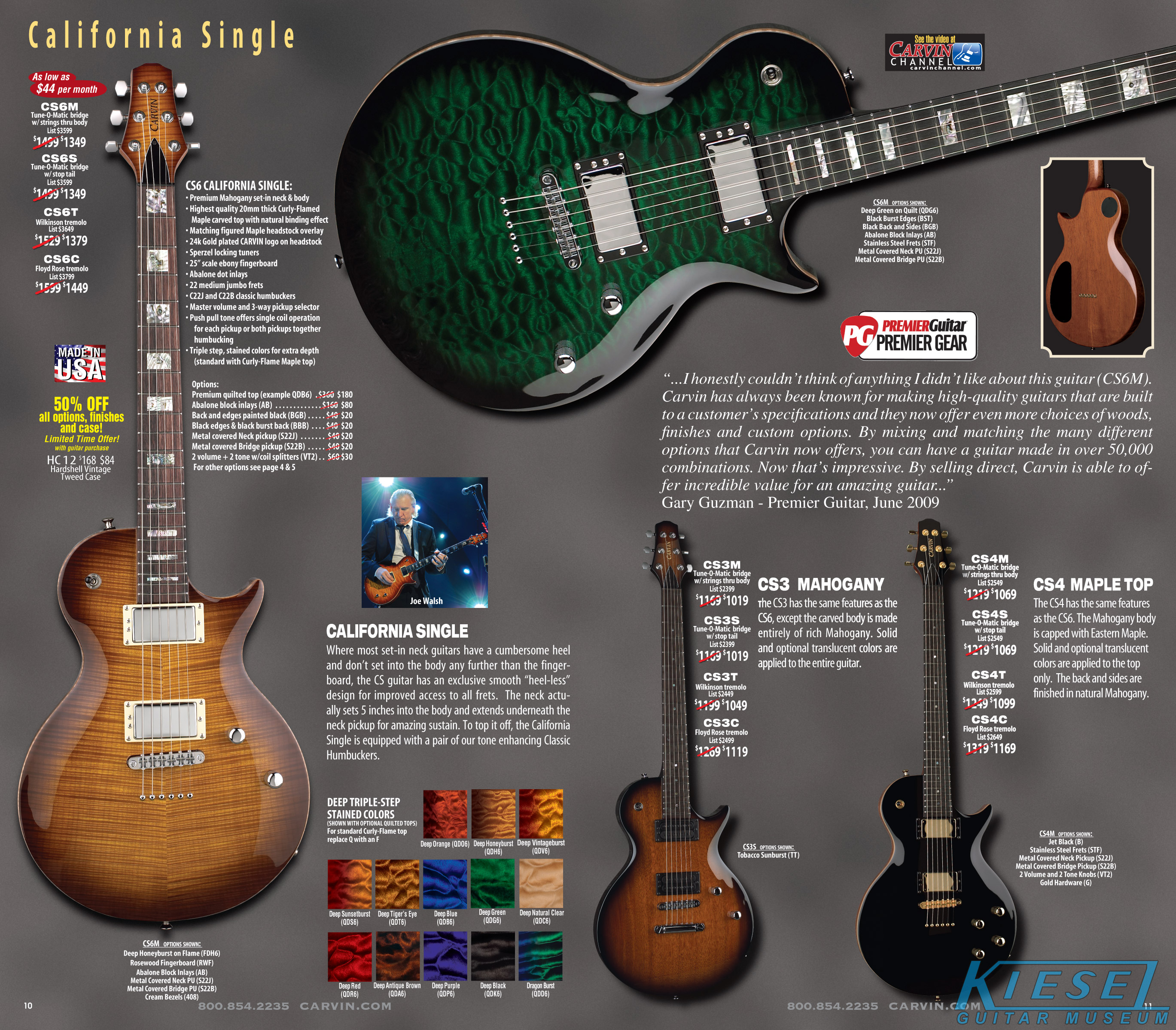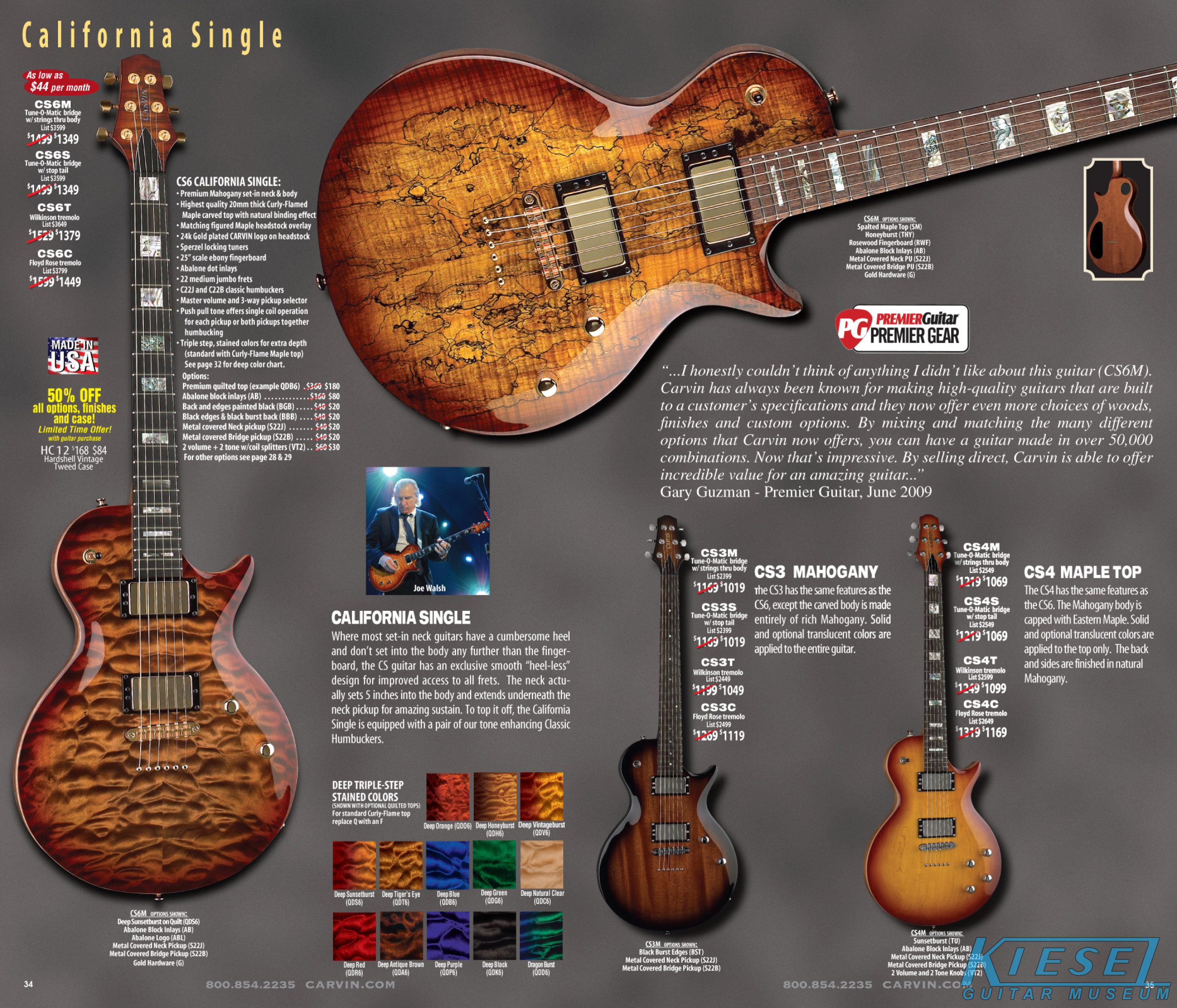 The California Carved Top guitars, including the CT and CS variants, were unchanged for 2009. This would soon change, though, as 24-fret models and double-cutaway models would be intruduced in 2010.