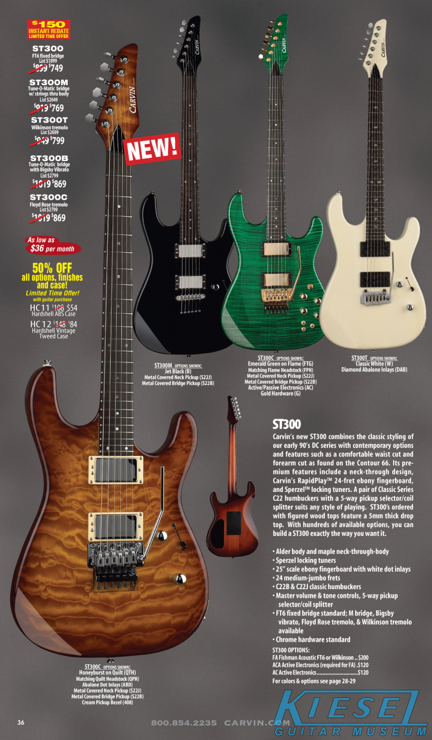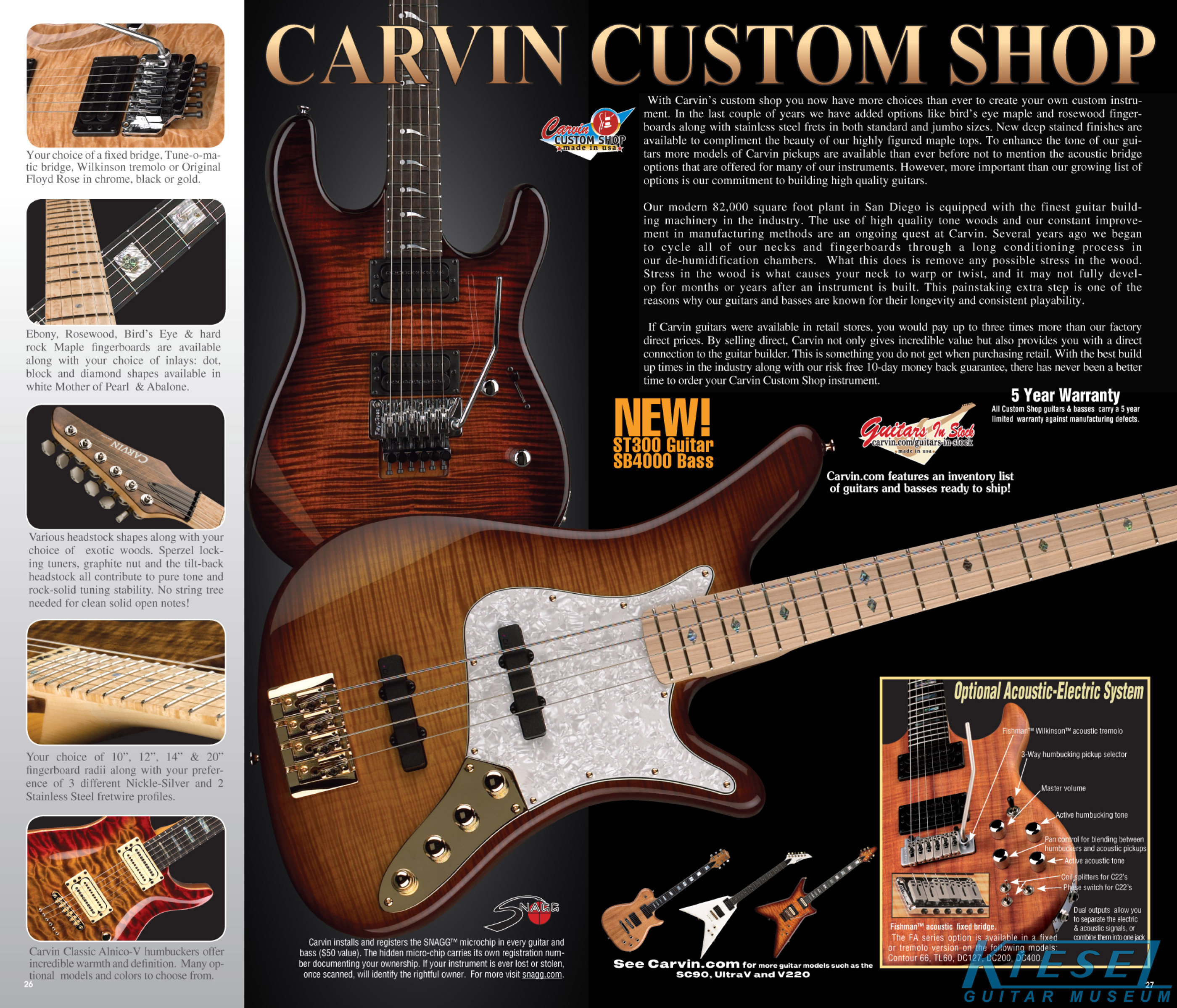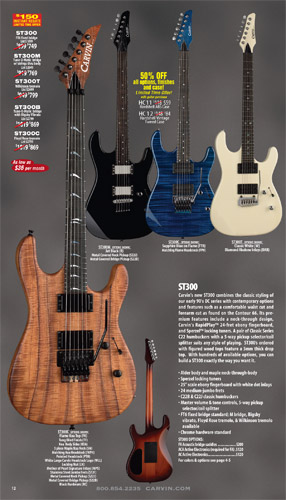 New for 2009 was the ST300 (below). This guitar was offered in response to Carvin fans requesting the return of the "ST" body style, which was used on the DC145 model in 1989,