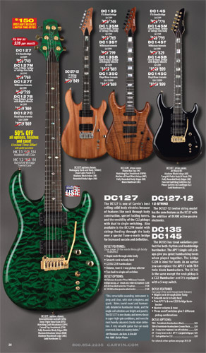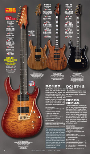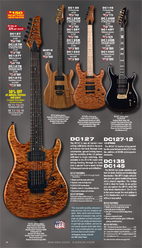 Like the DC Series, Carvin's 7-string DC models, the 2009 model DC727 and 3-pickup DC747 were unchanged from 2008. These models shared space with the Holdsworth models in tha catalog, and there was no longer any mention of Tony Macalpine's TMAC VI and TMAC VII versions, although they were still unofficially available.