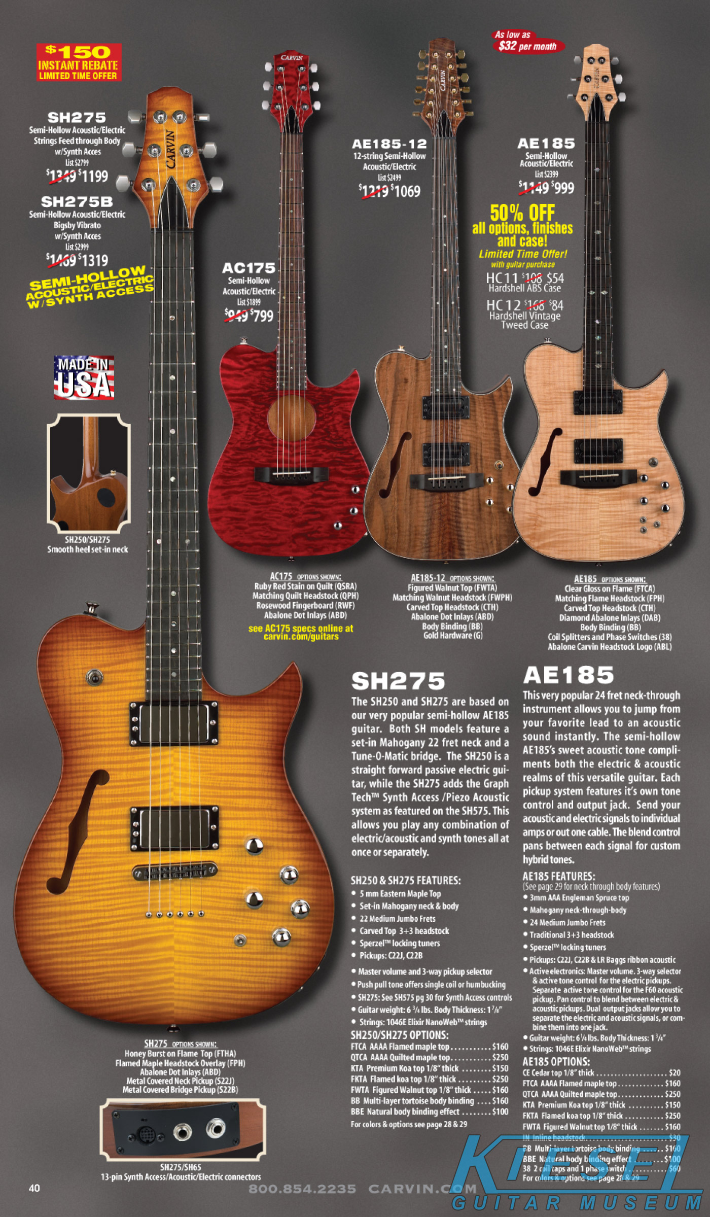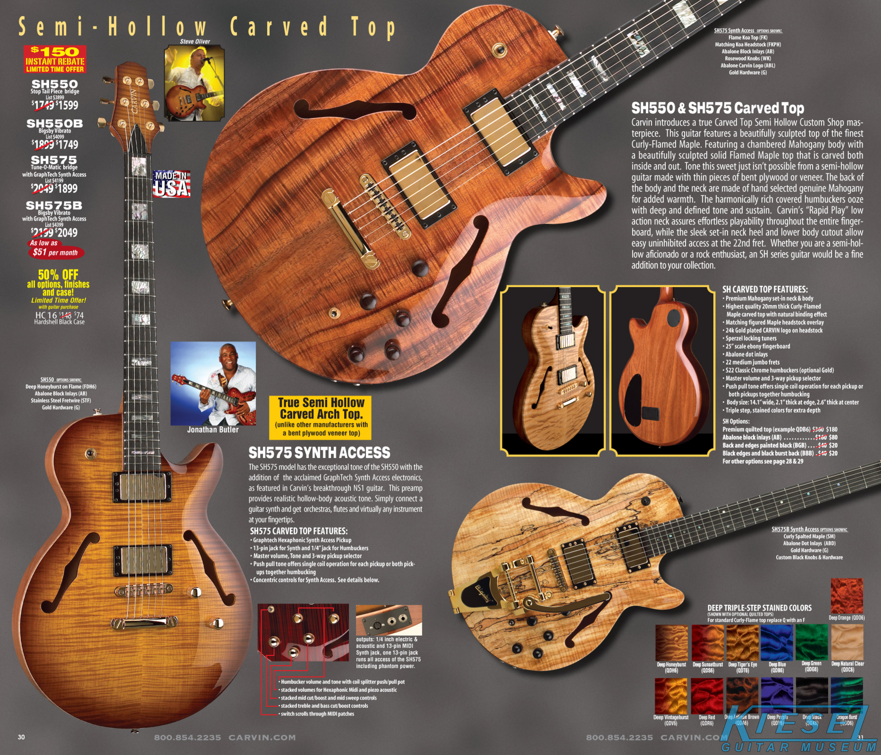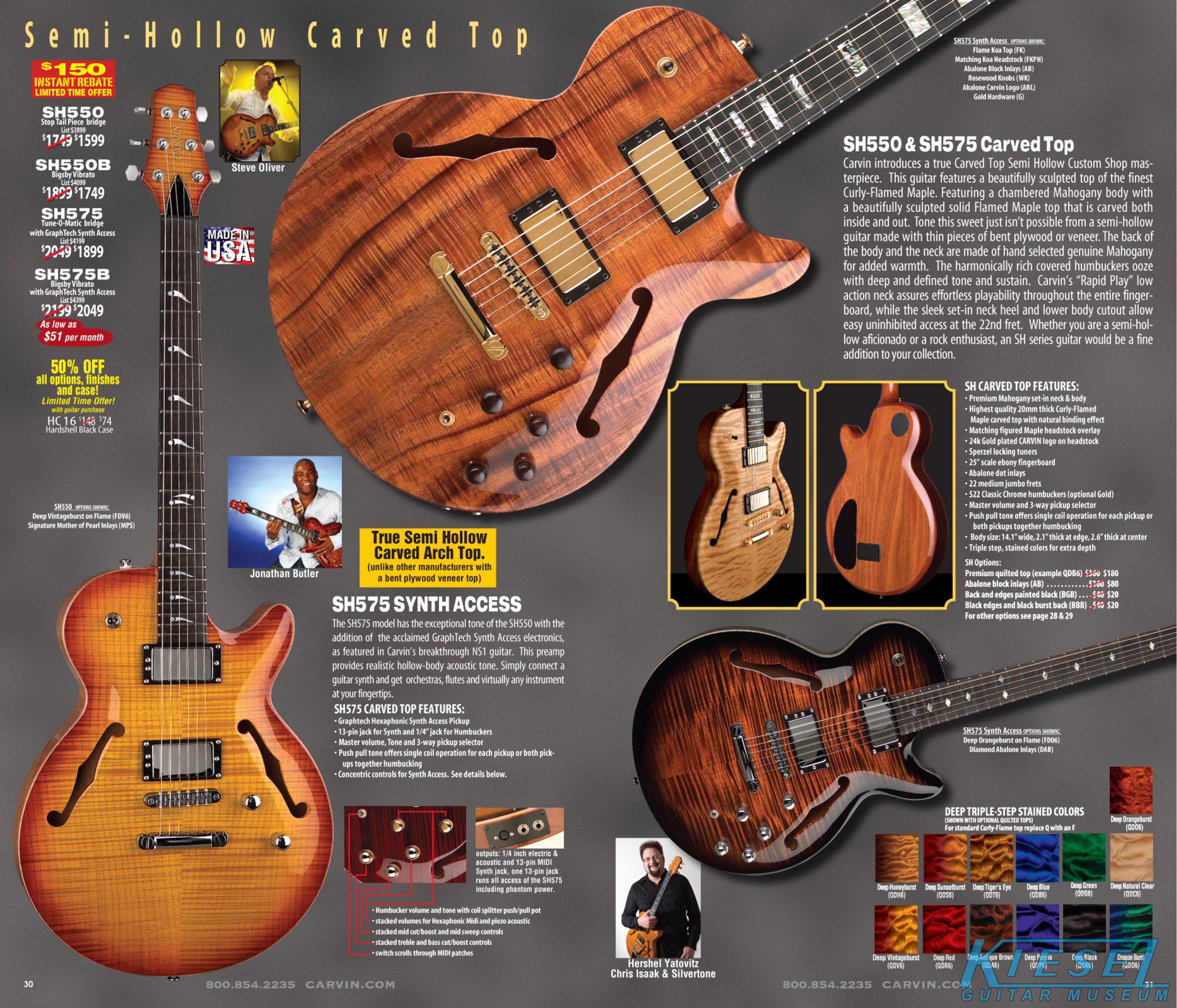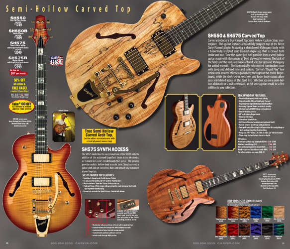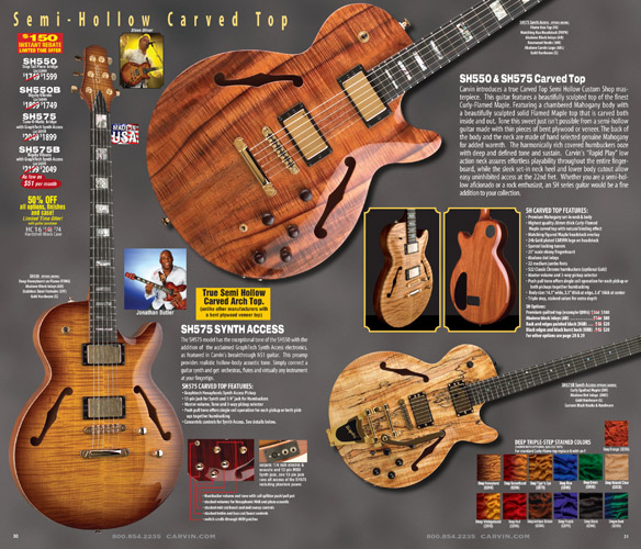 The SH550 carved top semi-hollow guitar and SH575 carved top semi-hollow MIDI Synth guitar were in their sophomore year of production, and were huge hits, especially the SH550. These models had no changes for 2009, and apart from a few variants over the years (plain top versions, cedar top versions), would have basically no changes through their entire run, which as of 2022, continues.