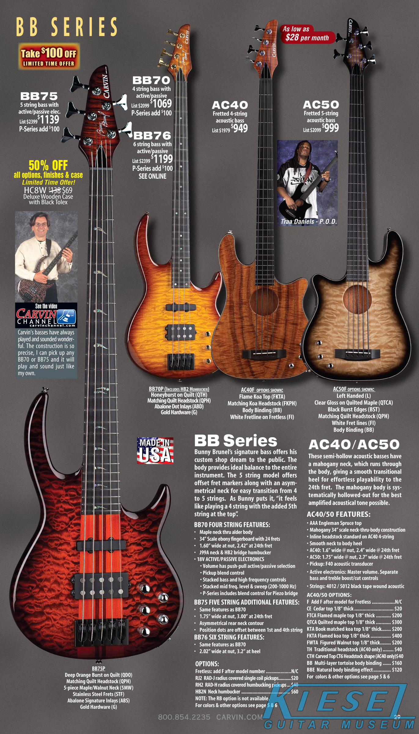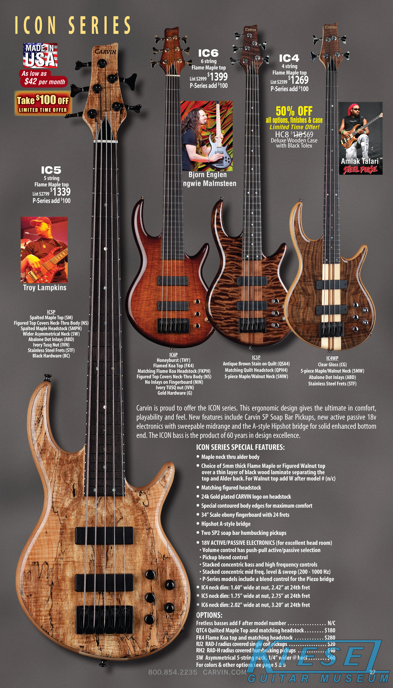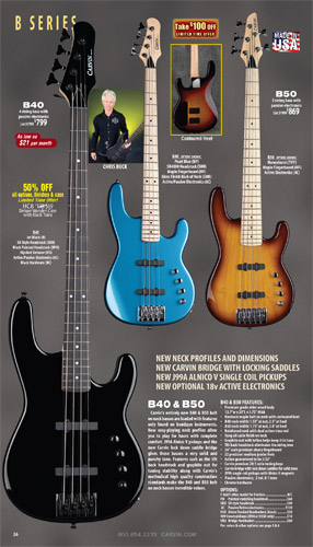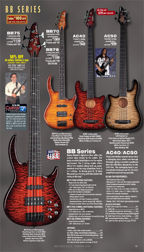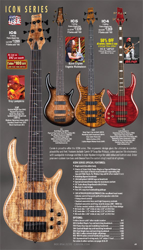 All other bass models - the Brian Bromberg B24 and B25; the bolt-neck B40 and B50; Icon IC4, IC5 and IC6; LB Series LB70, LB75 and LB76 (plus the A and W models and XB extended-scale models); and the Bunny Brunel BB70, BB75, and BB76 - were unchanged from 2010. Additionally, the acoustic-electric AC40 and AC50 remained the same.