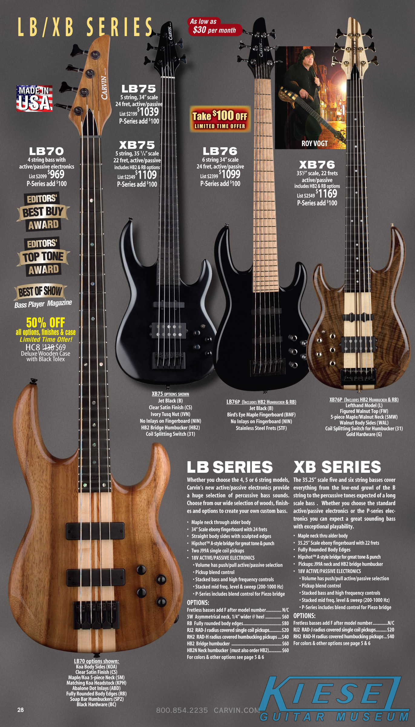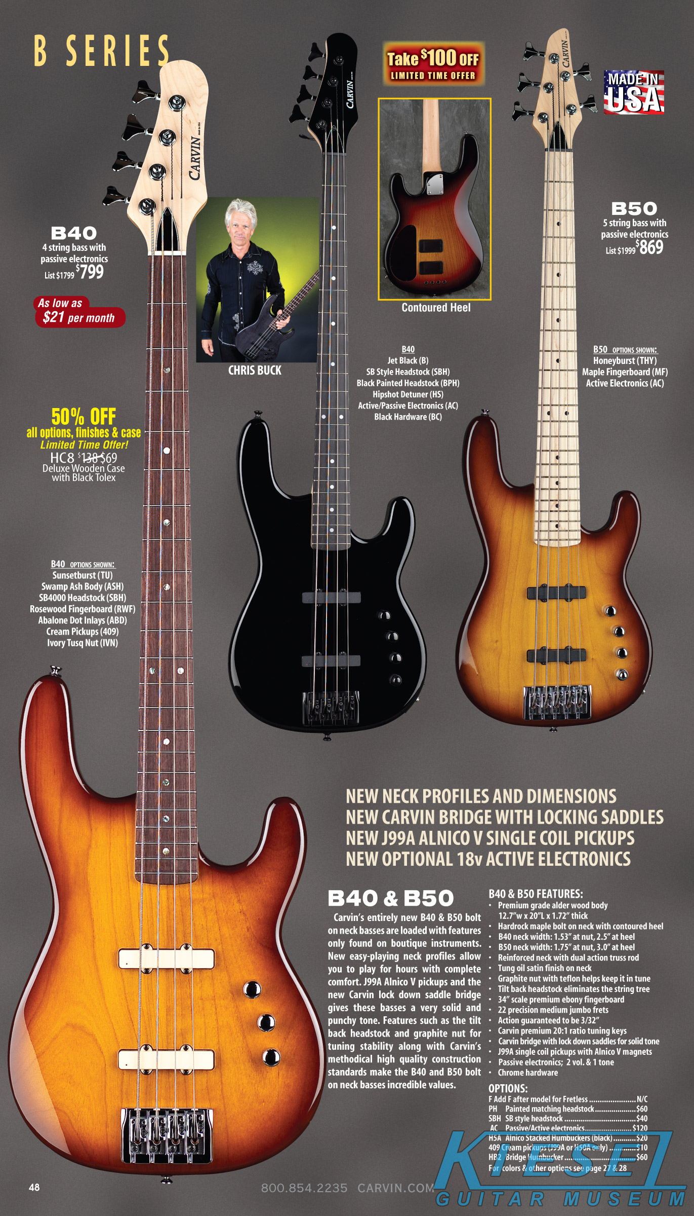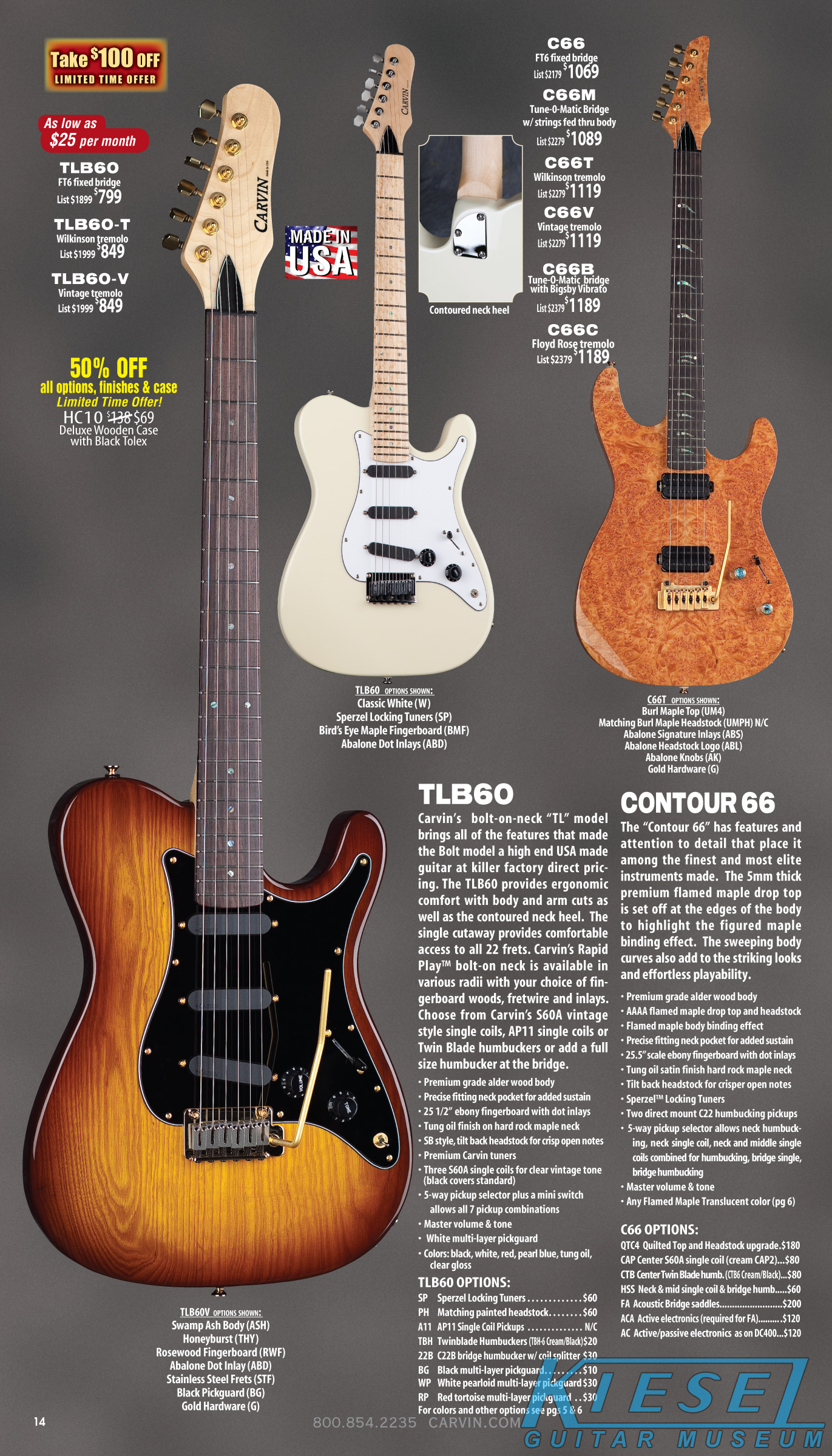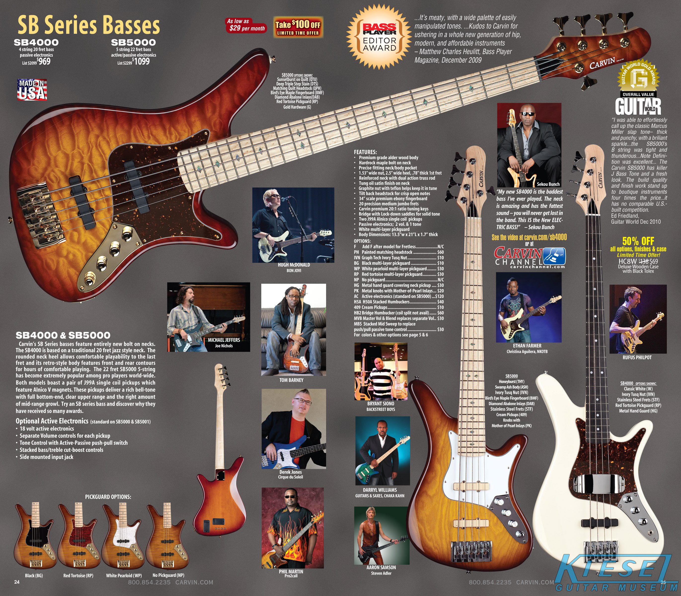 The Bolt enjoyed a resurgence, thanks to the new sculpted neck heel that was introduced in 2010, and the addition of the Floyd Rose tremolo in 2011. Other than new finishes that were introduced, there were no changes to this model. Carvin's other bolt-neck models, the Contour C66, TLB60 and BoltPlus were also unchanged, and the BoltPlus was not shown in any of the catalogs.