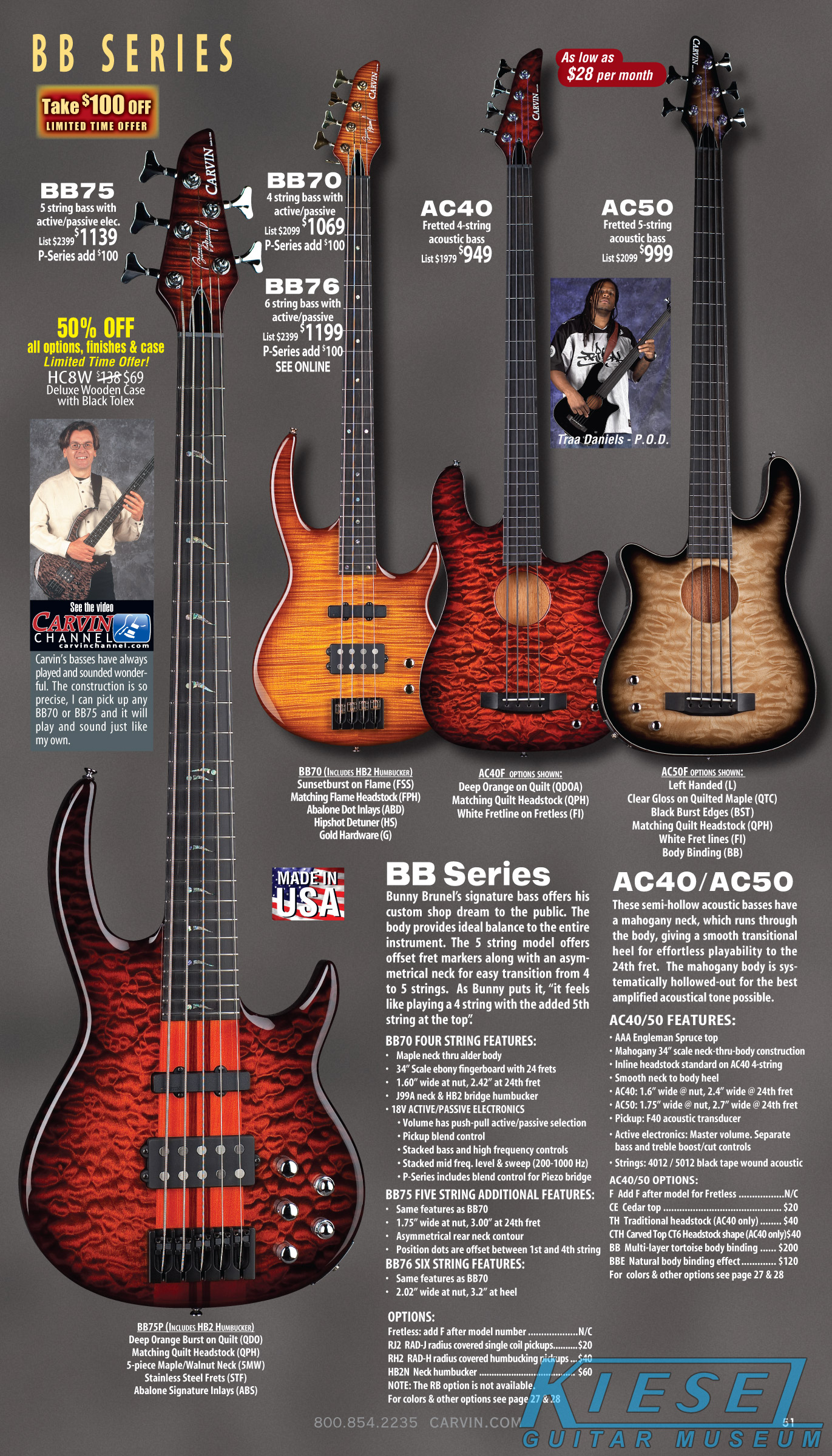The SB Series were updated with the addition of the SB4001 and SB5001, which had a standard flamed maple top and chambered body.