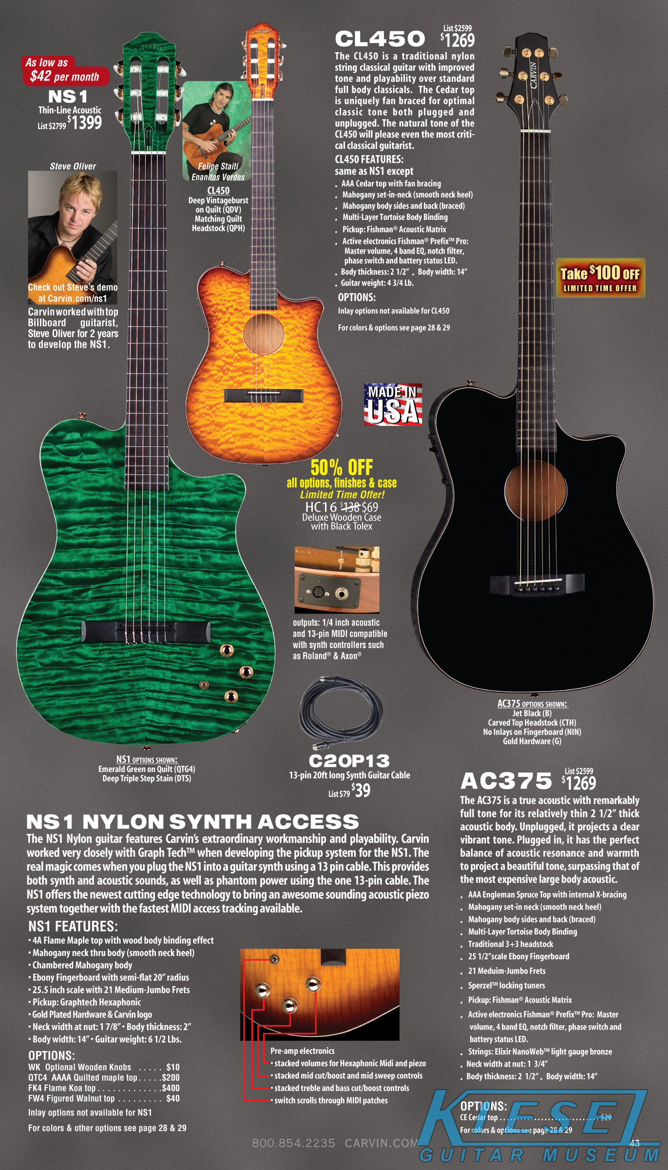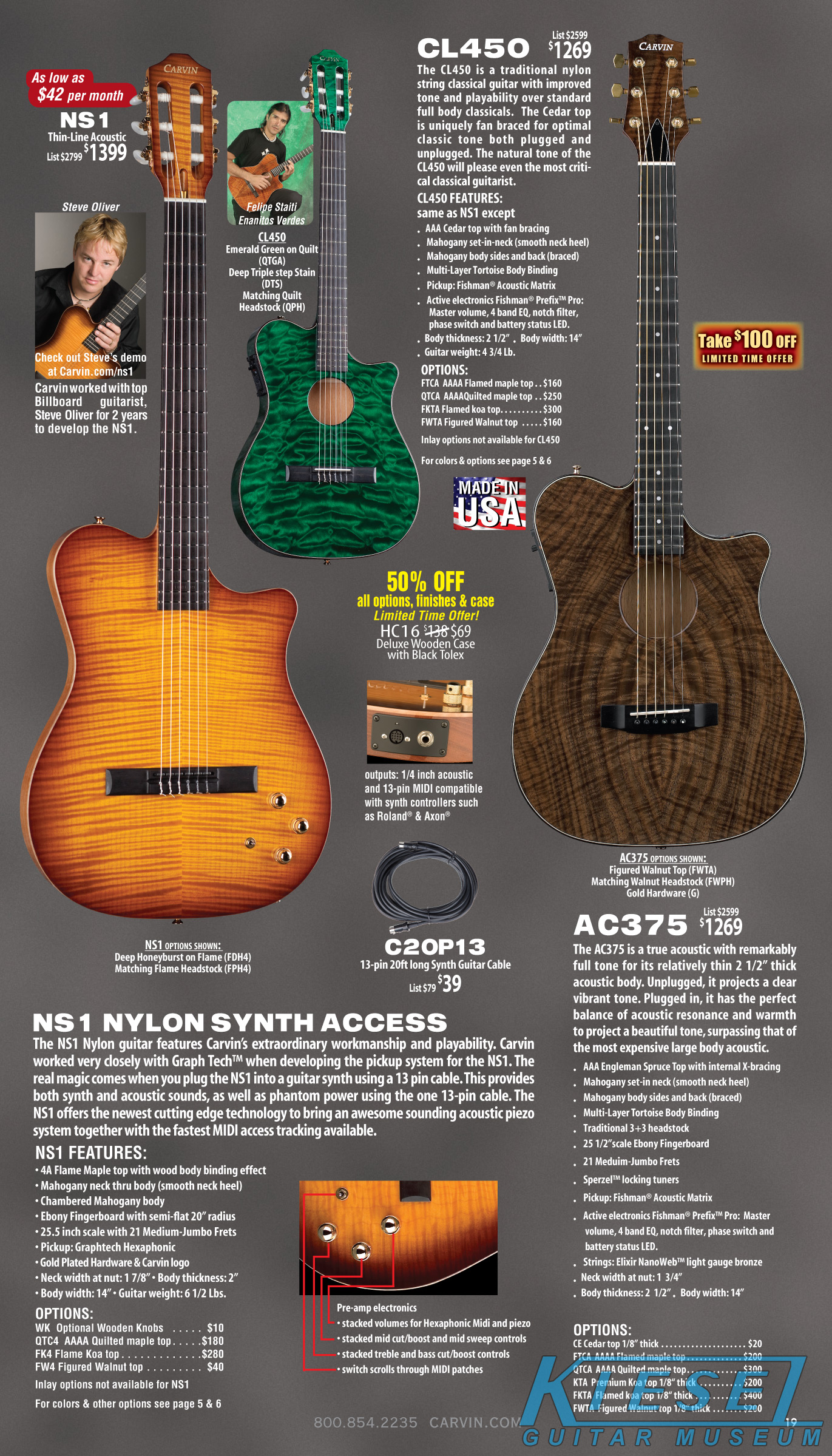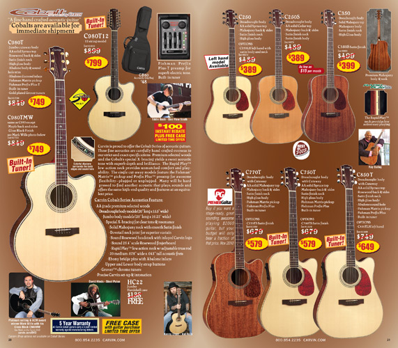 Like 2011, there were no significant changes with Carvin's acoustic-electric guitars in 2012. The NS1, CL450, SH60,