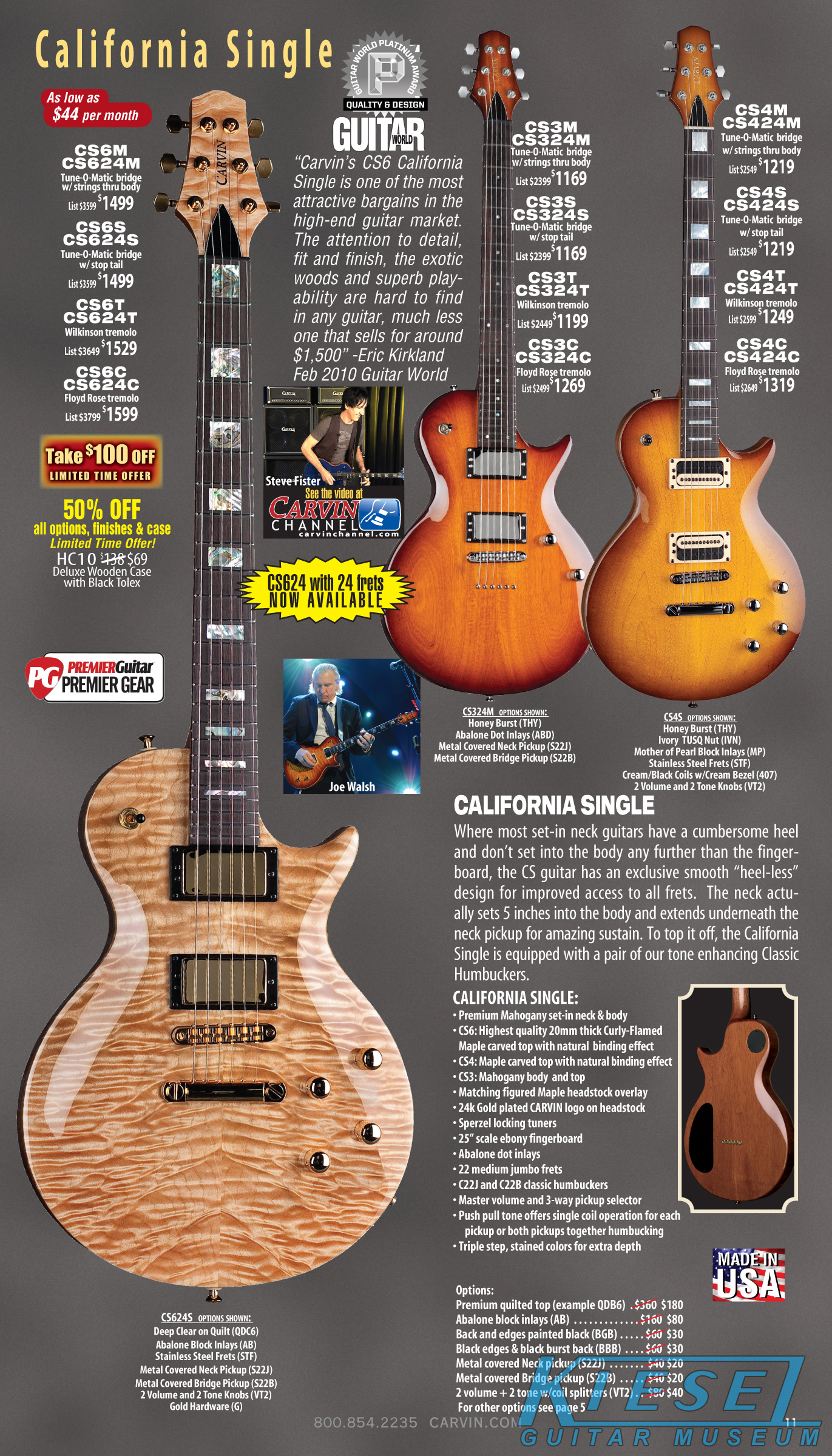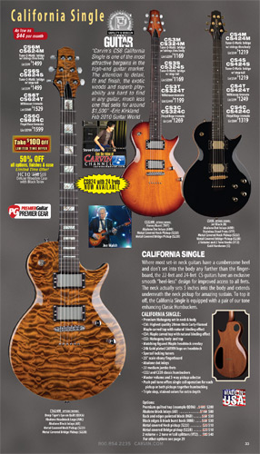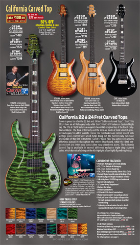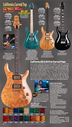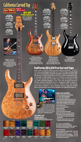 The California Carved Top CT Series guitars were unchanged in 2012. However, the California Single CS Series models - the CS6, CS4 and CS3 - were updated with new 24 fret models, just like the CT guitars had been in 2011. The new CS624, CS424 and CS324 had the same features, options and specs as their 22-fret counterparts, but in a 24-fret configuration.
