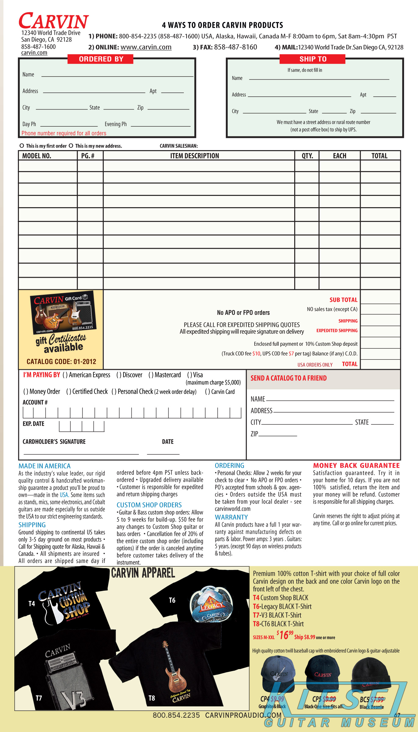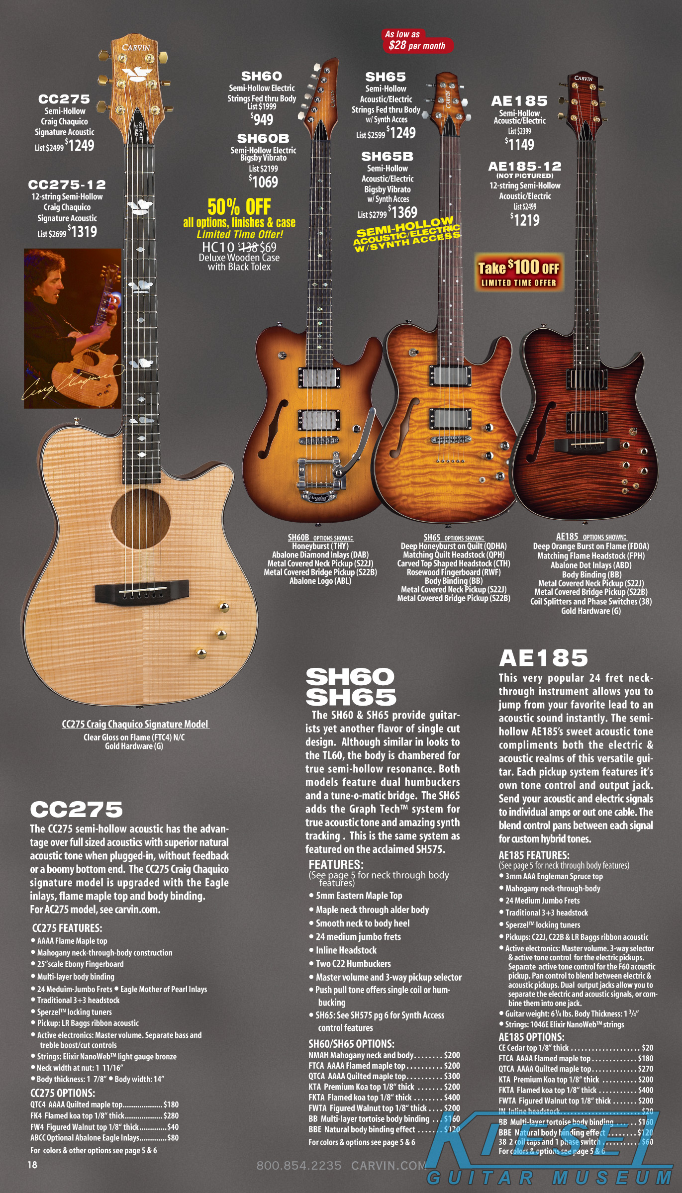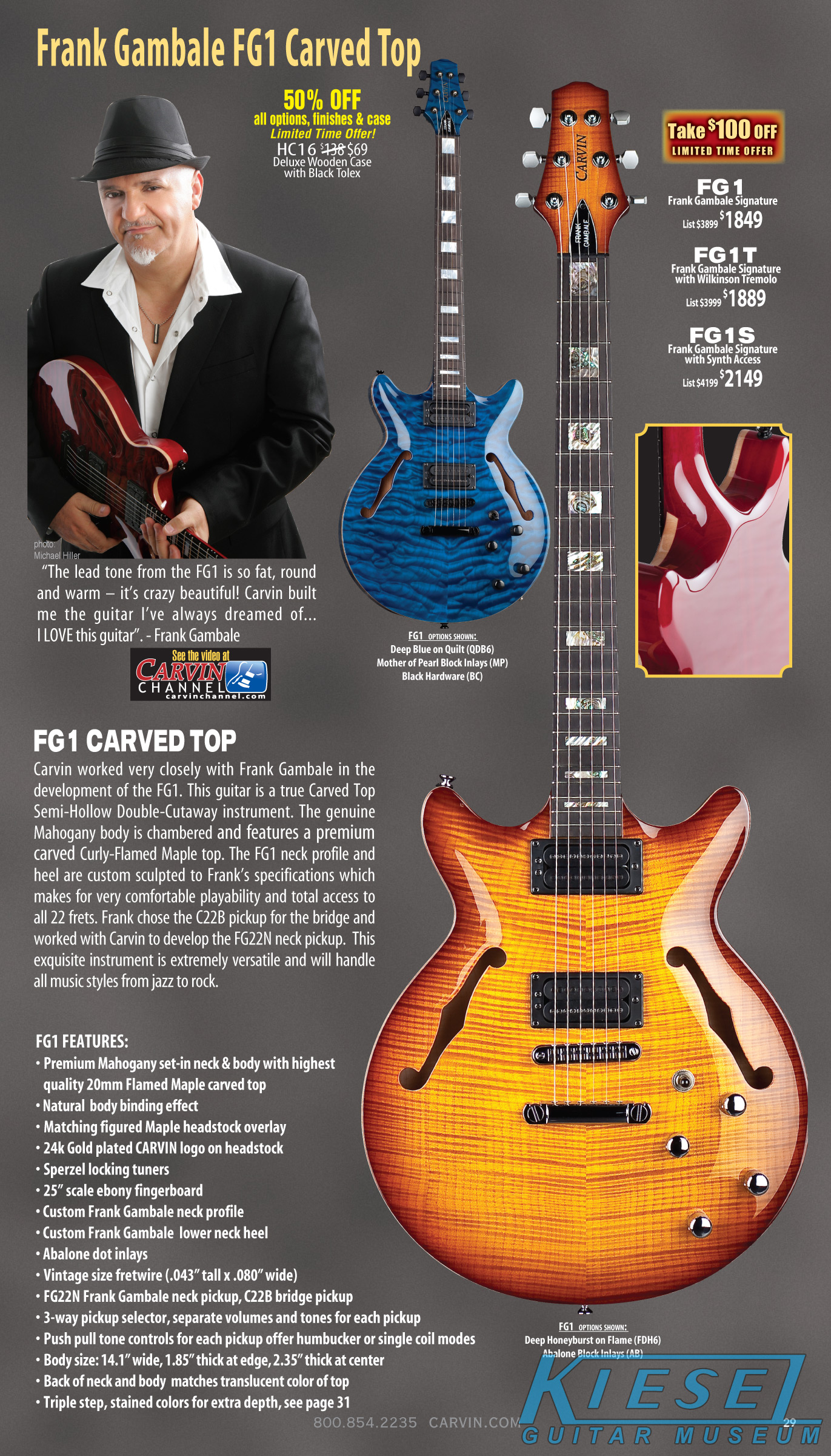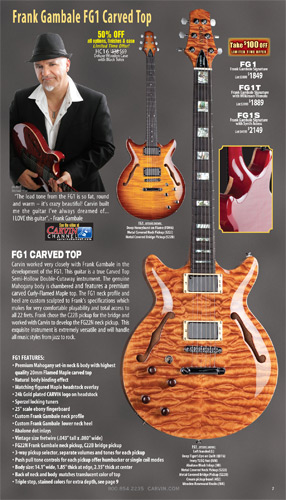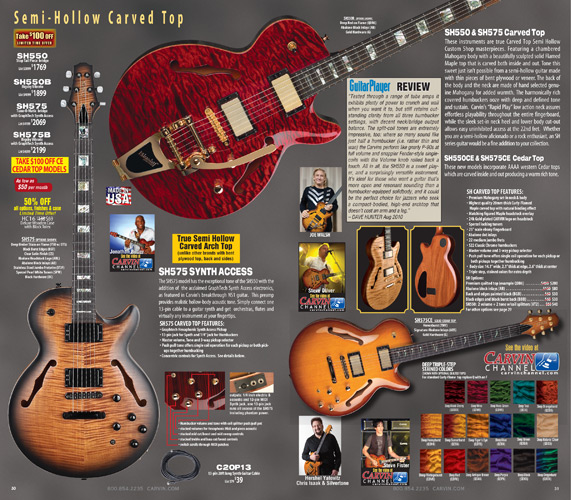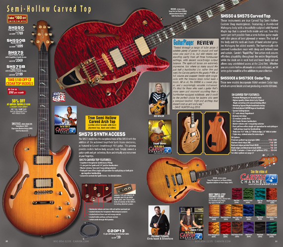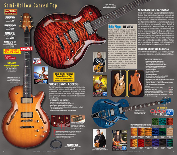 Carvin's semi-hollow carved top models, the SH550, SH575 and the Frank Gambale Signature FG1, were unchanged for 2012. The SH645, SH675, SH445 and SH475 were unchanged, but were not shown in the catalog due to space limitations.