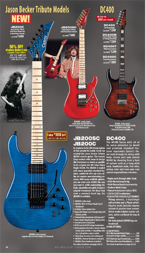 for Carvin's solid finishes and translucent stains. The JB200C would herald several other Jason Becker models in the coming years,