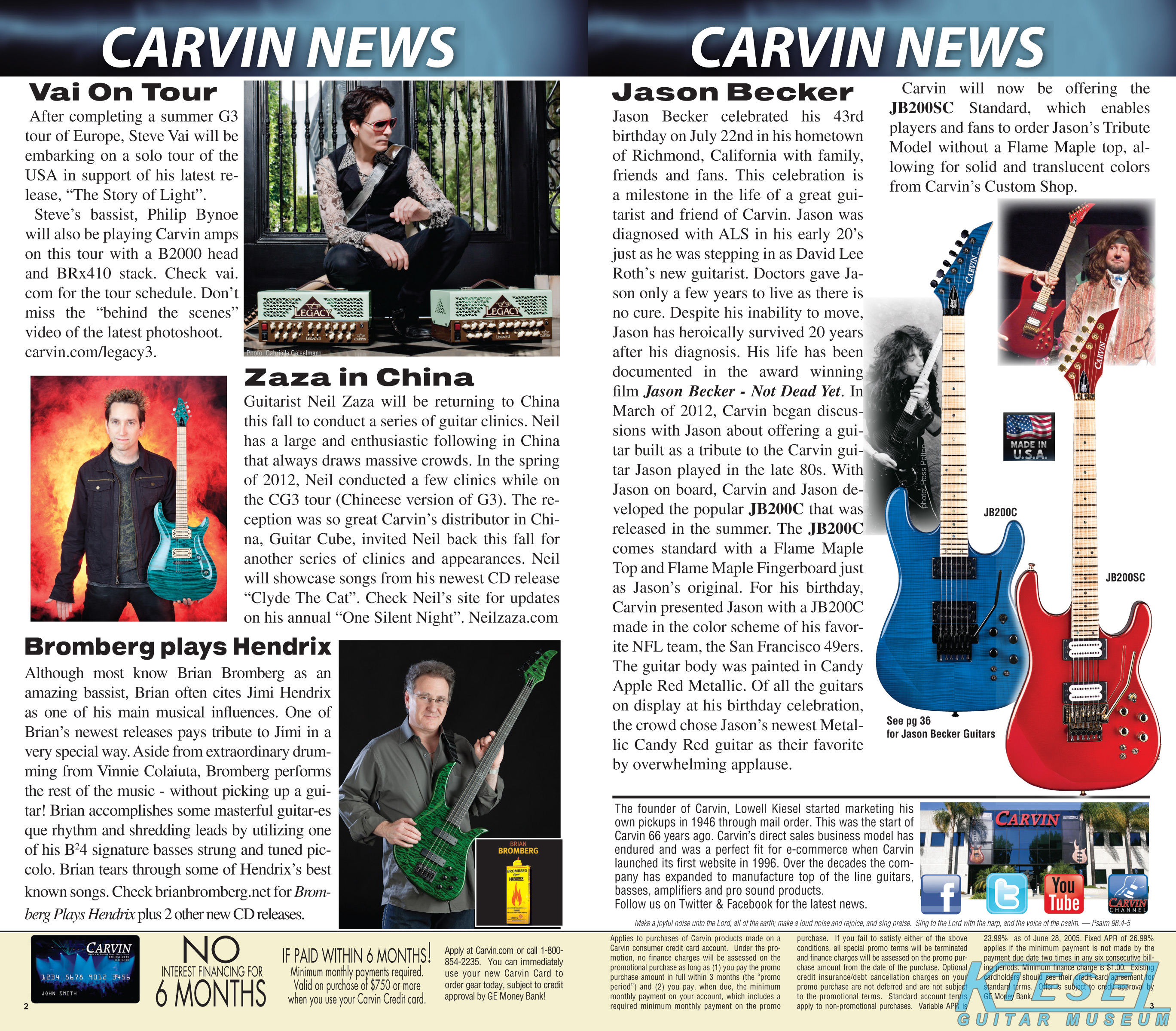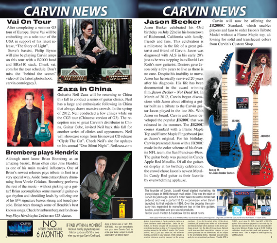 Also new for 2012, and equally important in Carvin's history, was the Jason Becker JB200C Tribute guitar. This guitar was